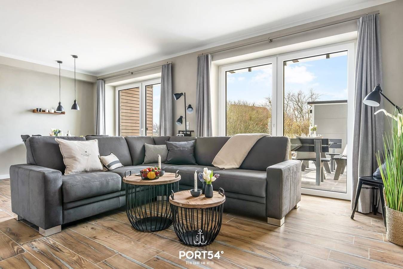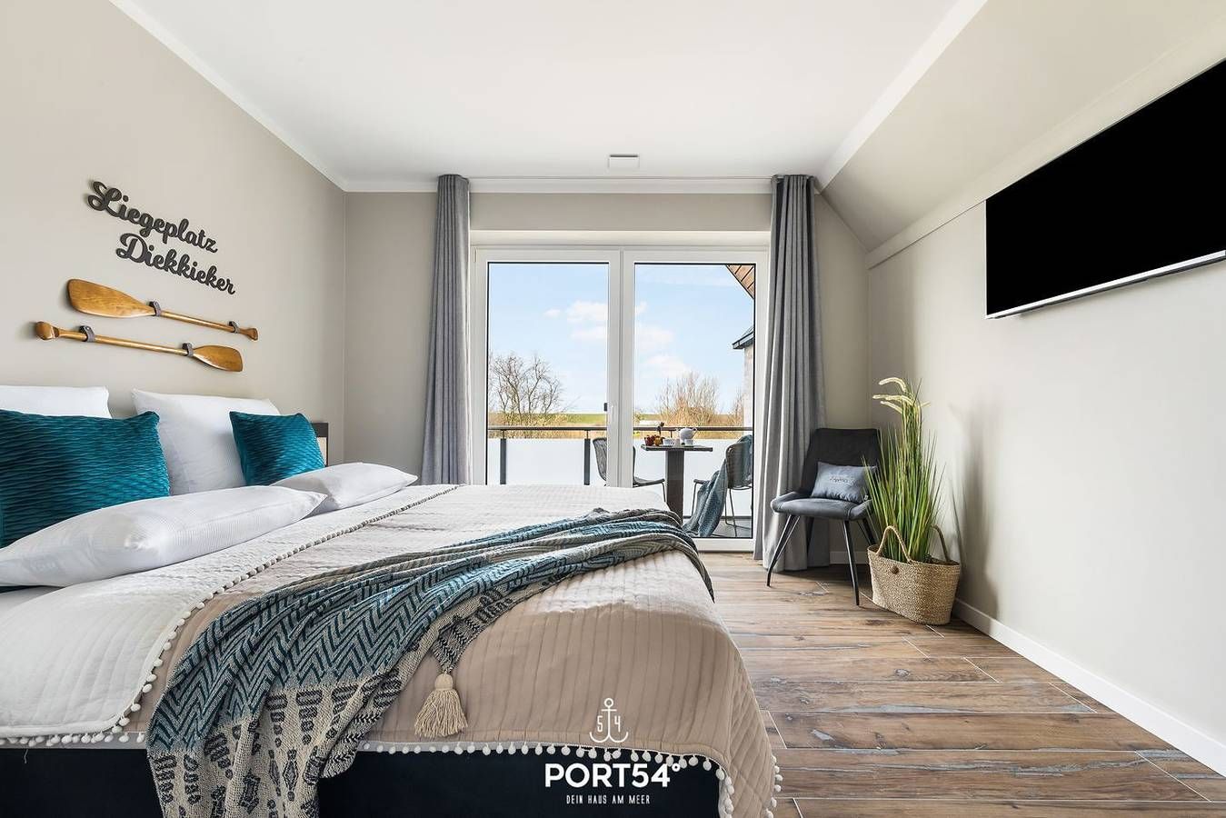 Im "Diekkieker" finden bis zu 5 Personen entspannt Platz, um einen Nordseeurlaub der Extraklasse zu verbringen. Über zwei Etagen bietet das Reihenendhaus auf etwa 120m² neben drei Schlafzimmern auch zwei Badezimmer, einen großen, lichtdurchfluteten Wohn- und Essbereich mit offener Küche, eine Terrasse und eine Loggia im Obergeschoss. Das im Erdgeschoss gelegene Schlafzimmer verfügt über ein Einzelbett, welches sich in der Höhe verstellen lässt, sowie einen Flachbild-TV. Die im Obergeschoss gelegenen Schlafzimmer bieten zwei große Doppelbetten (je 180x200cm), eines davon verfügt ebenfalls über einen Flachbild-TV. Alle drei Schlafzimmer sind mit Verdunklungsvorhängen ausgestattet, sodass der Nachtruhe nichts im Wege steht. In den Schlafzimmern im Erdgeschoss und Obergeschoss, im Wohnzimmer sowie im Badezimmer im Obergeschoss sind Mückengitter vorhanden – so bleiben unerwünschte Gäste draußen und Sie können ungestört entspannen. Das Duschbad im Obergeschoss überzeugt durch eine finnische Sauna, eine Badewanne sowie eine große Dusche und ein separates WC. In der finnischen Sauna können Sie sich nach langen Strandspaziergängen herrlich entspannen und dem Alltagsstress entfliehen. Im Badezimmer im Erdgeschoss bietet eine zweite Dusche eine durchdachte räumliche Trennung zum unteren Schlafzimmer. Im OG befindet sich ein Treppenschutzgitter. Die in Süd-West-Ausrichtung ausgelegte vollmöblierte Terrasse, sowie die mit zwei Stühlen und einem Tisch ausgestattete Loggia im ersten Obergeschoss bieten zu fast jeder Tageszeit den perfekten Ort für entspannte Sonnenstunden. Für angenehmen Schatten an heißen Tagen sorgt dabei eine elektrische Markise. In der Abendsonne lassen sich perfekte Grillabende am Elektrogrill verbringen. Ihren Vierbeiner dürfen Sie auch gerne mitbringen. Vor dem Haus steht ein kostenfreier, eigener Parkplatz zur Verfügung. Weitere PKW können an der Straße in Parkbuchten abgestellt werden. Mitgebrachte Fahrräder können im abschließbaren Schuppen untergestellt werden.