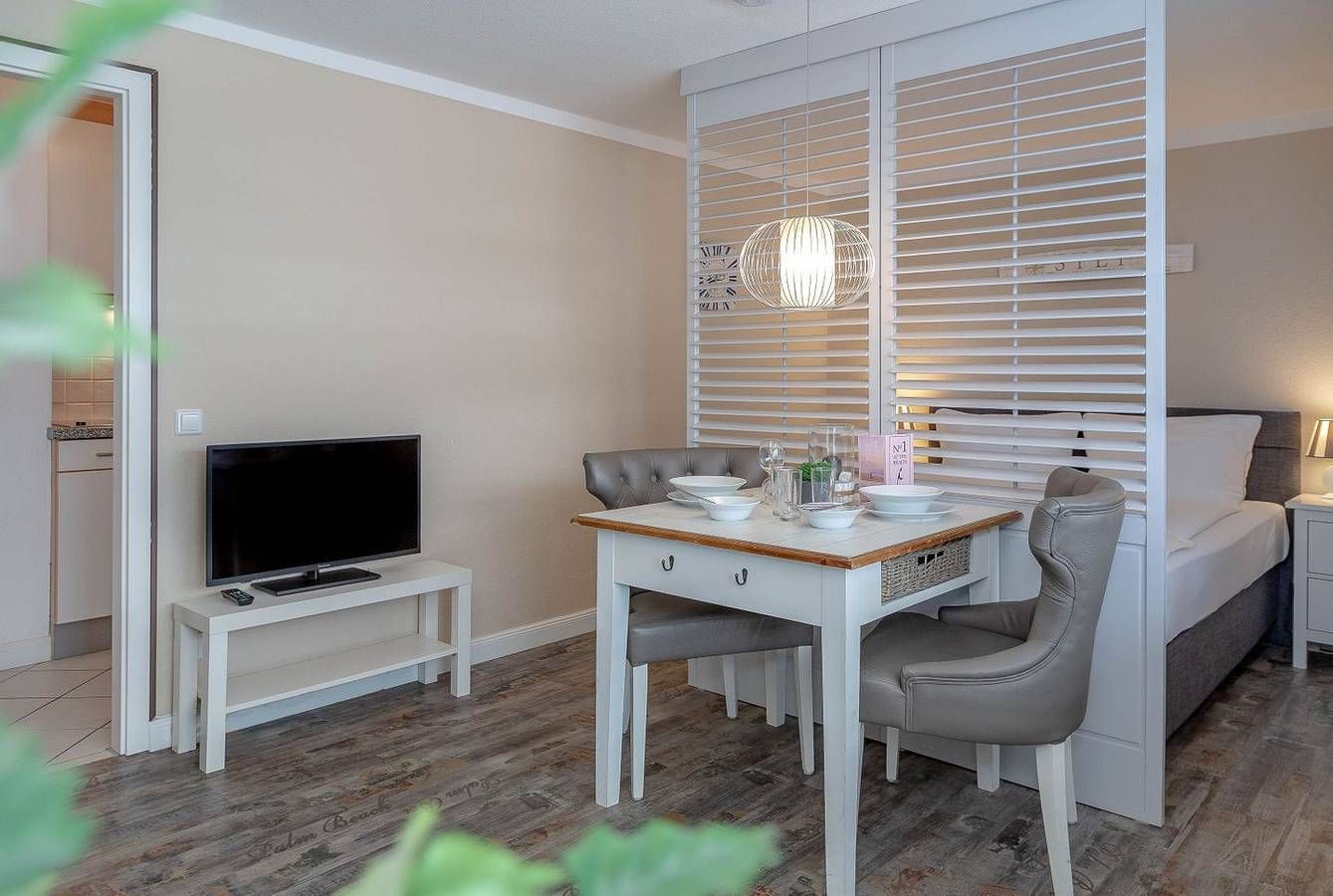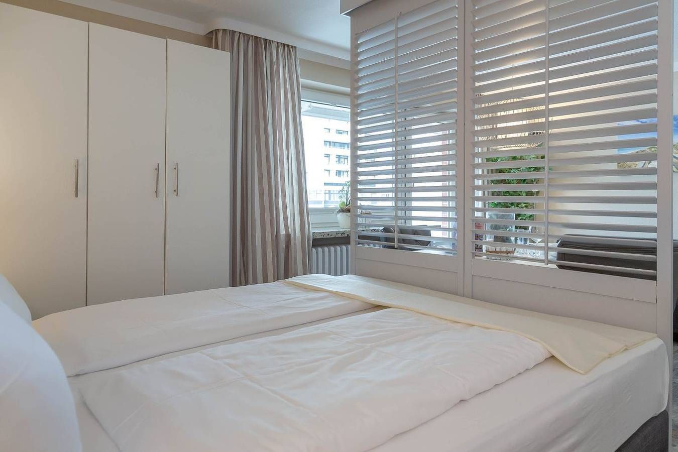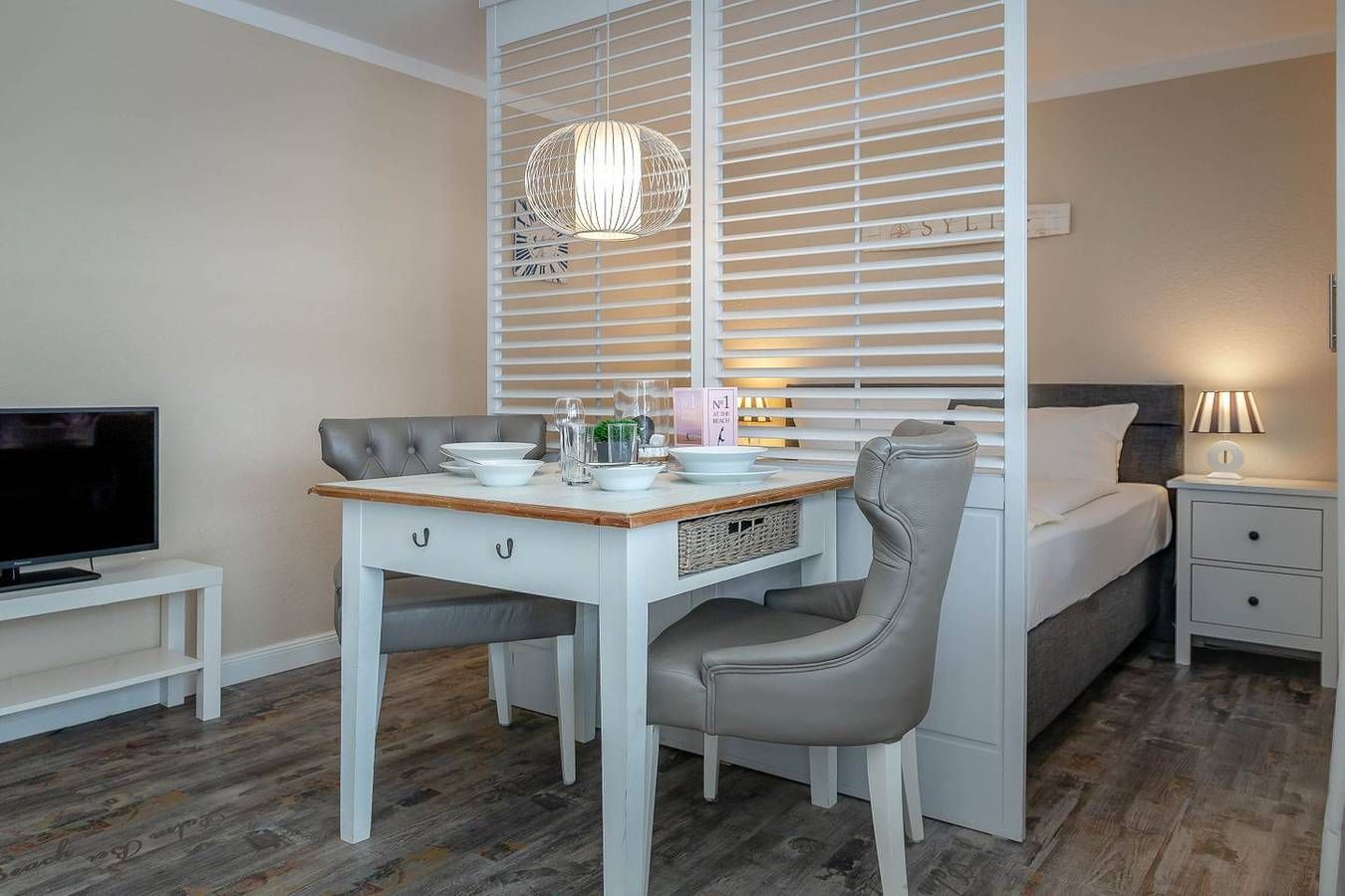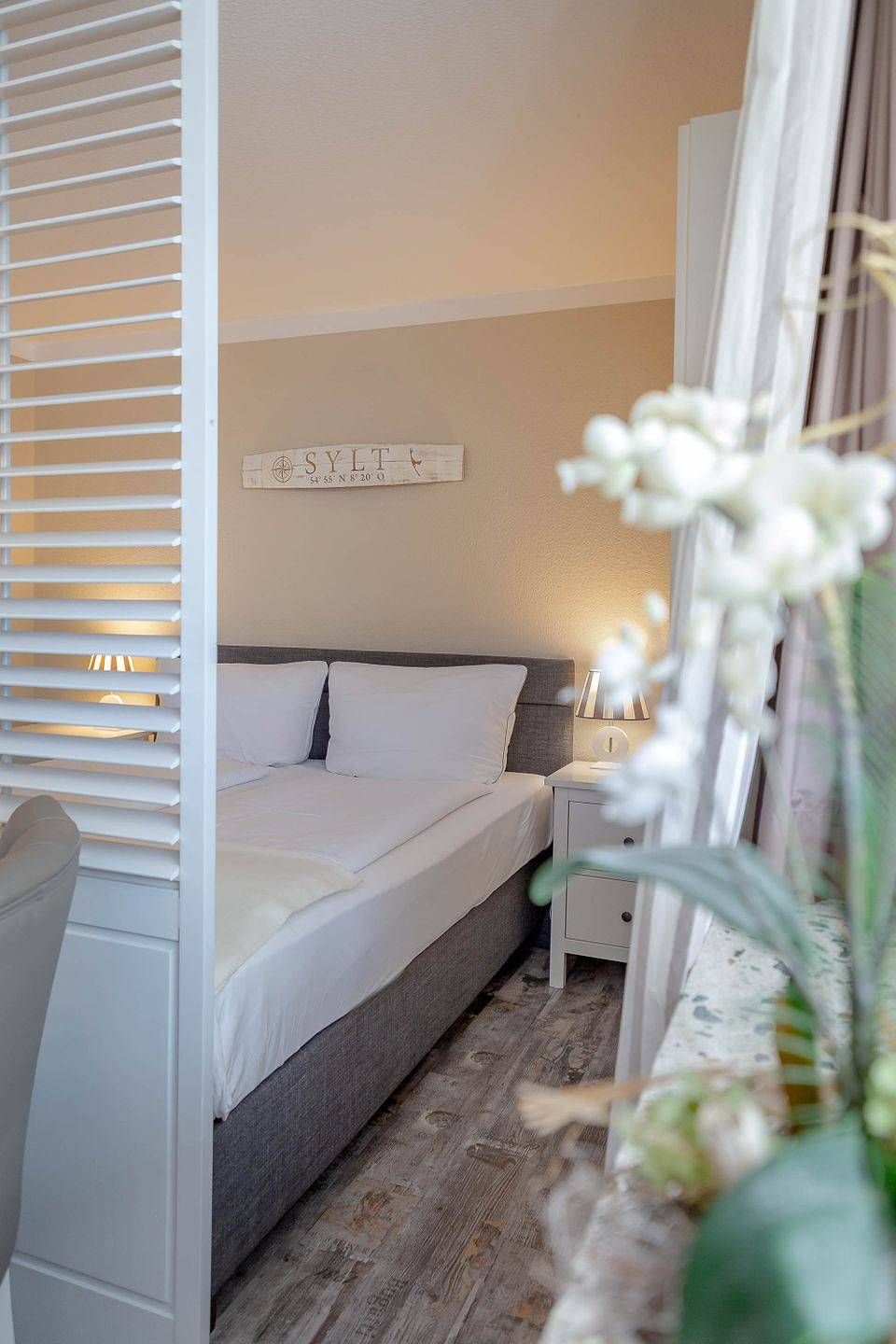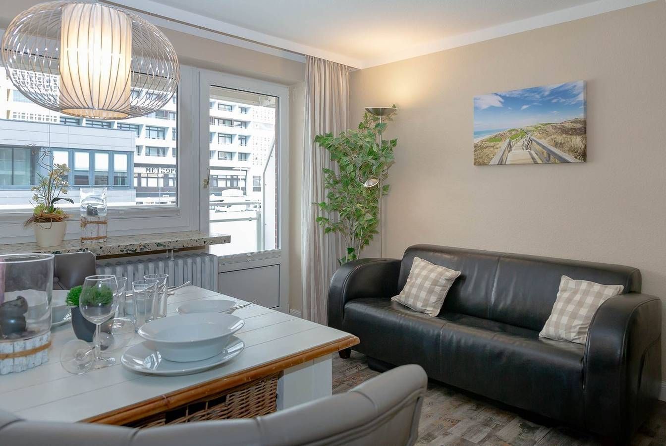 Strandnah. Modern. Top-ausgestattet! Diese wunderschöne und moderne Ferienwohnung für 2 Personen (Nichtraucherwohnung) liegt zentral in der Innenstadt Westerlands. Näher am Strand und zugleich an der Fußgängerzone mit ihren Boutiquen, Cafés, Restaurants, Galerien und Bars kann man fast nicht wohnen! Ca. 40 Meter bis zur Friedrichstraße und nur etwa 100 Meter zum Strandübergang und zur Strandpromenade. Auch das Freizeitbad Sylter Welle und das Syltness Center, in dem Sie vielfältige Gesundheits- und Wellnessanwendungen buchen können, liegt schnell erreichbar auf der gegenüberliegenden Straßenseite. Die Wohnung selbst ist geschmackvoll und zugleich mit allen praktischen Vorzügen ausgestattet. Durch die Eingangstür kommt man direkt in das kombinierte Wohn- und Schlafzimmer und die halboffene Küche. Von dieser aus gelangt man weiter zum Badezimmer. Die Küche ist bestens ausgestattet: Nebenihrem 2-flammigen Herd, einer Geschirrspülmaschine, der Mikrowelle mit Grillfunktion, dem Toaster, einer Filterkaffeemaschine, der Philipps Senseo Maschine und einem Wasserkocher bietet sie noch weiteren Komfort. Der Wohn- und Schlafraum besteht aus einem Wohnzimmer mit Sofa, Esstisch mit 2 gemütlichen Stühlen, einem großen Kühlschrank. Daneben gibt es einen Flachbildfernseher, ein Radio mit CD-Player, einer iPhone- und iPod-Schnittstelle und einen kostenlosen WLAN-Hotspot. Der abgeteilte Schlafbereich mit einem modernen Boxspringbett (180x200 cm), 2 Nachttischen mit Beleuchtung und einem großzügigen Kleiderschrank mit kleiner Garderobe bietet sich zum Entspannen und erholsamen Schlafen an. Vom Wohnzimmer aus gelangt man auf den Balkon nach Westen. Dieser lädt mit seinem Tisch und 2 Stühlen und dem Strandkorb zum Verweilen ein. Ein leckeres Frühstück mit duftendem Kaffee und frischen Brötchen…, ein kleiner Snack zwischendurch mit einem köstlichen Stück Kuchen oder vielleicht herzhaft mit einem der legendären Sylter Fischbrötchen…, ein entspanntes Abendessen zu zweit… Hier sind der Phantasie keine Grenzen gesetzt! Von der Küche aus gelangt man in das Badezimmer. Hier gibt es eine Badewanne, die zu einem entspannten Vollbad einlädt, mit integrierter Dusche. Ein WC, einen Handtuchwärmer und einen Föhn. Im Keller des Hauses, den man leicht mit dem Fahrstuhl erreichen kann, befinden sich eine Waschmaschine und ein Trockner. Diese können gegen Gebühr genutzt werden. PKW-Abstellmöglichkeiten befinden sich kostenpflichtig direkt vor dem Haus. Einen Abstellbereich für Ihre Räder finden Sie im Hinterhof des Hauses.