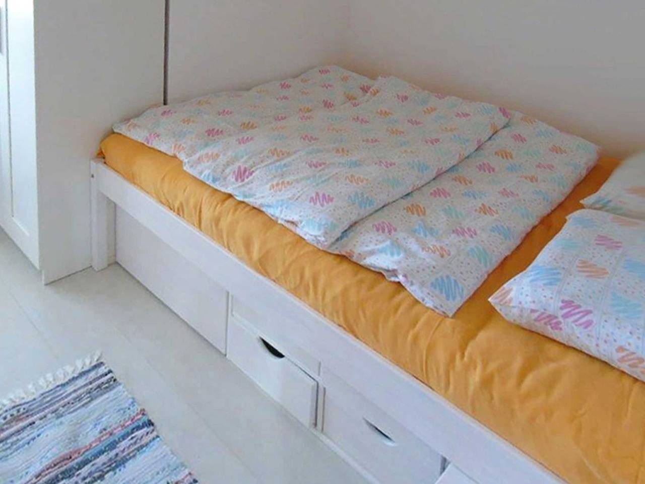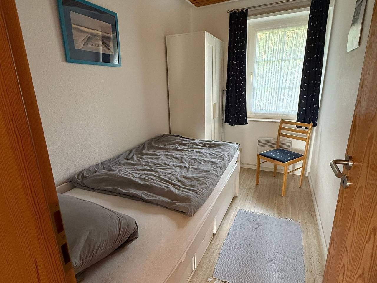 Ein Schlafzimmer mit Doppelbett (französisches Kojenbett) und ein Schlafzimmer mit Einzelbett, Dusche/WC. Wohnraum mit offener Küche (mit Geschirrspülmaschine). Waschmaschine und Trockner (gegen Gebühr) im Haushaltsraum. Der Parkplatz liegt direkt vor dem Haus.