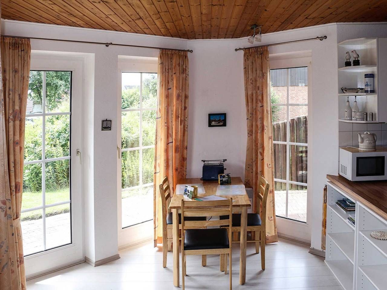 Herzlich Willkommen in der Ferienwohnung Domizil Seehund! Moderne, 2014 sanierte, 2020 zuletzt renovierte 50 m² Terrassenwohnung in einem Haus mit nur 4 Wohnungen. Ebenerdig und seniorengerecht. Nichtraucherwohnung. Ruhige Lage, sonnige Terrasse mit angrenzendem Garten. Kombi. Wohn-/Esszimmer mit Küchenzeile und Terrasse.