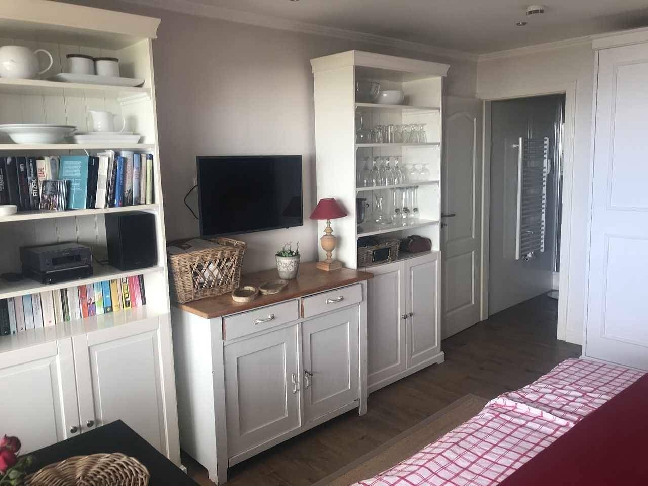 Im Urlaub direkt am Strand wohnen, mit einem herrlichen Blick auf die Nordsee! Von dem großen, überdachten Westbalkon sehen Sie die Nordsee mit ihrem unglaublichen Farbenspiel - die fantastischen Sonnenuntergänge versprechen eine atemberaubende Stimmung. Hell und freundlich eingerichtetes 1-Zimmer-Appartement für 2 Personen, mit herrlichem Blick auf die Nordsee. Mit viel Liebe zum Detail ausgestatteter Wohn-Schlafraum (ca. 35 qm) mit großem vorgelagertem, überdachten Westbalkon, auf dem sich bequeme Rattanmöbel befinden (Holzfußboden). Smart - TV ( 50 Zoll ), WLAN : sYltweNNingstedt!2025 Im Wohnzimmer gibt es ein komfortables Schlafsofa mit hochwertigem Lattenrost und einen ausziehbaren Esstisch mit 2 Stühlen, direkt am Fenster mit Meerblick. Helle Holzverkleidungen geben dem Appartement eine besondere Note. In der Küche befindet sich ein hochmoderner Geschirrspüler, eine Waschmaschine, eine Mikrowellen-Backofen-Kombination, sowie ein Touchtronic-Cerankochfeld. Diverse Küchengeräte (u.a. von Kitchen Aid) sind vorhanden (Kaffeemaschine, Toaster, Wasserkocher, usw.), Das moderne Badezimmer verfügt über eine Halbrunddusche, einen beheizbaren Handtuchhalter, einen Design-Badezimmerschrank, sowie ein "Tivoli-Radio". Duschen mit Blick auf die Nordsee. Zur technischen Ausstattung gehört ein Samsung-Flatscreen-TV und eine HiFi-Anlage. Kostenloses W-LAN und 1 Kfz-Aussenstellplatz Nr 60 ( besonders wichtig im Sommer) runden das Angebot ab. Es handelt sich um eine Nichtraucherwohnung, Haustiere sind leider nicht erlaubt. Fahrstuhl vorhanden. Wäschetrockner zur Mitbenutzung im Keller. Eigener Pkw-Außenstellplatz ist vorhanden. Parkplatz rechts unten , Nr. 60 . Nur ca. Bitte beachten Sie, dass eine eventuell anfallende Kurabgabe nicht im Gesamtpreis enthalten ist. Diese ist vor Ort zu leisten.
