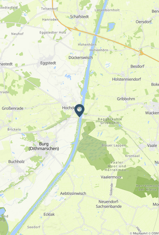 Die über dem Kanal die vorgeschriebene lichte Höhe von 42 Metern sowie die Länge der Brücke (2.218 Meter) haben das Landschaftsbild grundlegend verändert. Die gewaltigen Erdmassen für den hohen Damm wurden größtenteils aus dem angeschnittenen Geestrücken entnommen.