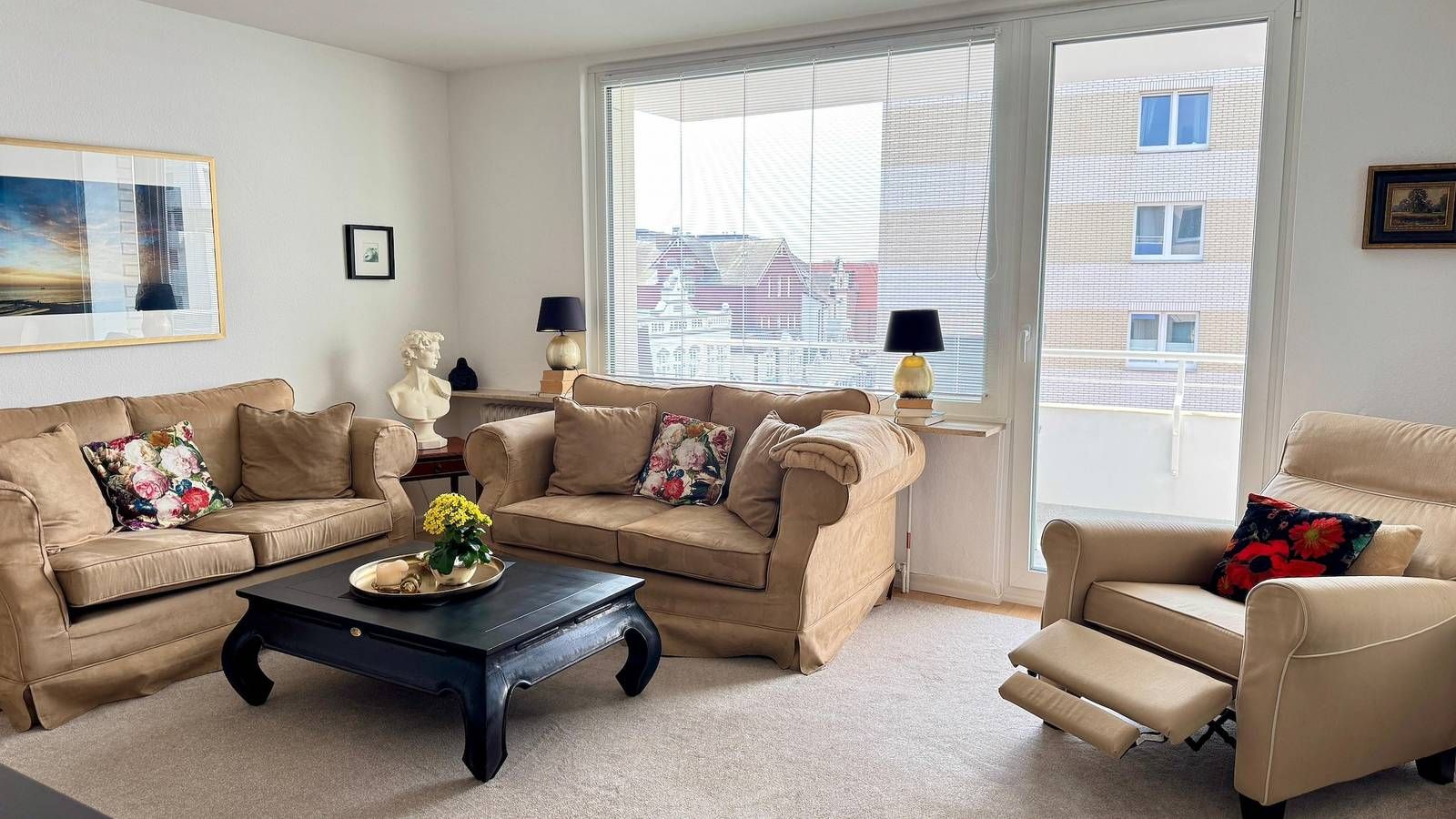 Diese gemütliche und komfortable 3-Zimmer-Wohnung befindet sich im 3. OG im Haus Atlantik gegenüber dem Freizeitbad "Sylter Welle" in der Dr. Nicolasstr. 2 in Westerland und ist barrierefrei mit dem Fahrstuhl zu erreichen. Die gesamte Wohnung ist hell und freundlich eingerichtet und mit allem ausgestattet, was 3 Personen für ihren Urlaub brauchen. Das lichtdurchflutete Wohnzimmer verfügt über eine große Sitzecke, Flachbild-TV und ein Elektokamin für kuschelige Abende runden das Bild ab. Ein Internetanschluß via WLAN (ohne Gewähr) ist im Appartement ebenso vorhanden. Ein nach Süden ausgerichteter Balkon mit Blick in die Strand- und Elisabethstraße lädt zum Verweilen ein. Das erste Schlafzimmer verfügt über ein Doppelbett, Kleiderschrank und Flachbild-TV und das zweite Zimmer ist mit einem gemütlichem Alkovenbett und angeschlossenen Essbereich ausgestattet. Ein Vinyl-Boden ist im Wohn- und Schlafbereich neu verlegt worden. Die gut eingerichtete Küche verfügt unter anderem über einen Geschirrspüler und Mikrowelle. Das Wannenbad mit Duschvorrichtung und WC ist hell gefliest. Mietwäsche (obligatorisch): Das Wäschepaket umfasst: 3x Frottee-Handtücher, 1x großes Duschtuch, 1x Duschvorlage, 2x Geschirrspültücher, 1x Bettlaken, 1x Bettwäsche-Set Verbrauchsmaterial, wie Mülleimerbeutel, Toilettenpapier, Spülmittel, Geschirrspültabs sind als Erstausstattung im Appartement vorhanden. Es sind keine Tiere erlaubt. - Vinyl-Boden