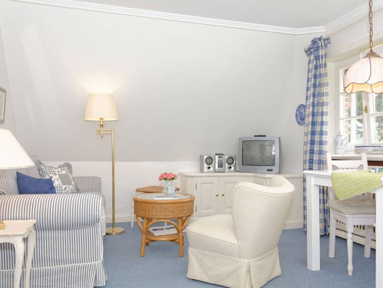 Unweit der Dünen, im ersten Stock eines klassischen Reetdachhauses, bietet dieses Appartement Strand- und Wattläufern ein passendes Refugium. Der Farbakzent der zweckmäßig-gemütlichen Ausstattung im Wohnbereich ist Friesischblau. Die kleine offene Küche im rustikalen Landhausstil verfügt über zwei Herdplatten und eine Geschirrspülmaschine. Das Duschbad in Marmoroptik erlaubt einen schönen Gartenblick. Das Schlafzimmer ist mit einem Doppelbett und einem kleinen Schreibtisch ausgestattet. Geräumige Schränke bieten die Tischlereinbauten im Flur. Das I-Tüpfelchen ist die eigene Gartenecke mit Strandkorb. Die kleine Gemeinde Kampen auf der nordfriesischen Insel Sylt gilt als das bekannteste und schönste Dorf in Deutschland. Ein besonderer Anziehungspunkt sind die zahlreichen Gaststätten, Bistros und Restaurants, in denen die Sylter Spezialitäten vom einfachen Gericht bis zur Haute Cuisine angeboten werden. Für das Nachtleben ist ebenfalls gesorgt. In den Bars tobt nachts das Leben und macht einen Sylturlaub zu einem Erlebnis. Viele Geschäfte laden zu ausgedehnten Einkaufsbummeln ein, für den notwendigen Luxus sorgen Juweliere und Boutiquen. Auch der Sport kommt nicht zu kurz. Für Golfer steht ein großer Golfplatz bereit. Nordic Walking, Jogging und Reiten am Strand oder Surfen im Meer sind bei Touristen besonders beliebt. Und nicht zu vergessen Natur und Meer so oft und viel Sie mögen.' Alle Verbrauchskosten sind bereits inklusive. Eine Kaution wird nicht erhoben.