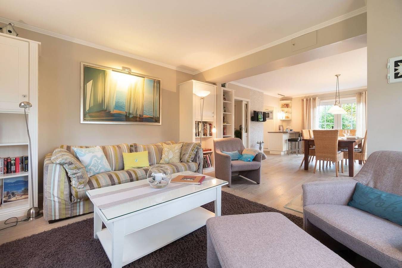 Nicht zuhaus und doch daheim Das Lilienhaus ist mehrfach mit 5 von 5 Sternen des Deutschen Tourismusverbandes ausgezeichnet worden. Es verfügt über 3 Schlafzimmer und 3 Bäder und bietet somit komfortabel Platz für bis zu 6 Personen zuzüglich allem, was ein Kleinkind zum Schlafen braucht. Auch ein Hund ist herzlich willkommen und ein Hundekörbchen wartet auf die Fellnase. Zu den Highlights der Ferienunterkunft zählen wir u. a. die hauseigene Sauna mit integriertem Sanarium, Sternenhimmel und Relaxsound, den offenen Kamin, den blickgeschützten Garten mit Terrasse sowie den kleinen Kinderspielplatz direkt auf dem Grundstück. Im Erdgeschoss befinden sich der großzügige Wohn- und Essbereich mit offener Küche und ein Duschbad sowie ein separater Garderobenraum. Der Kamin im Wohnbereich spendet wohlige Wärme an kühlen Abenden. Über den Essbereich gelangen Sie auf die Terrasse und in den eigenen, 800 m² großen Garten. Im Obergeschoss sind die drei Schlafzimmer - jeweils mit 1 Doppelbett ausgestattet -, das zweite Duschbad und ein Wannenbad gelegen. Eines der Schlafzimmer verfügt über einen Schreibtisch. Im Souterrain befindet sich die hauseigene Sauna samt Ruheraum. Für eine einzigartige Atmosphäre sorgen der "Sternenhimmel" mit integriertem Relaxsound in der Sauna, sowie separater Musikanlage für die entspannten Momente im Ruheraum. Im Hauswirtschaftsraum stehen Ihnen eine Waschmaschine und ein Wäschetrockner der Marke Miele kostenlos zur Verfügung. Das Lilienhaus verfügt über einen großen, blickgeschützten Garten mit Terrasse und Strandkorb. Ein Highlight stellt sicherlich der kleine Spielplatz dar: An Rutsche, Schaukel und Klettergerüst können sich Ihre Kinder austoben. Ein eigener PKW-Stellplatz rundet das Angebot ab. Das Lilienhaus ist ruhig gelegen im schönen Kapitänsdorf Nieblum. Von hier aus laufen Sie zu Fuß 15 Minuten zum Sandstrand von Nieblum (mit dem Fahrrad - es gibt einen großen Fahrradparkplatz am Strand - sind es nur fünf Minuten). Das Haus liegt nah am eigentlichen Zentrum. Hier befinden sich zahlreiche Cafés und diverse Restaurants. Auch einen kleinen Einkaufsladen, einen Bäcker, einen über die Dorfgrenzen hinaus bekannten Schlachter und einen Fischladen (in der Saison) finden Sie im Dorf. Einige Freizeitangebote wie der sehr schön angelegte Minigolfplatz mit "Kerzenscheune" und Café befinden sich in unmittelbarer Umgebung des Objektes. Die Freizeitangebote befinden sich alle in unmittelbarer Umgebung des Objektes. Ein äußerst angenehmer Aufenthalt für unsere Gäste und somit die sorgfältige Reinigung der uns anvertrauten Ferienunterkünfte ist unser höchstes Gebot. Damit wir diesem gerecht werden, weist jede unserer Ferienimmobilien in den Monaten Mai bis einschließlich Oktober einen festgelegten An- und Abreisetag auf. Weitere Infos finden Sie auf unserer Homepage! Mind. 7 Übernachtungstage: April - Oktober, Weihnachten und Jahreswechsel Mind. 2 Übernachtungstage: November - März