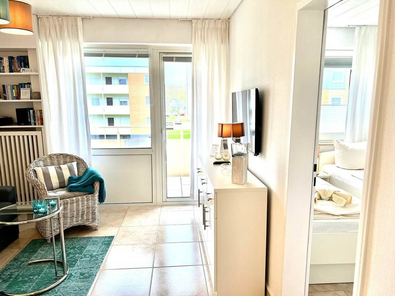Moin, moin und herzlich willkommen im "Glück". So heißt diese 2-Zimmer-Ferienwohnung im Süden der Inselhauptstadt Westerland, und das macht doch schon beim Buchen wunderbare Urlaubsstimmung, oder?! Bis zu drei Personen, wovon zwei in Einzelbetten im Schlafzimmer und eine/r auf der Schlafcouch nächtigt, können hier Ferien machen. Die Wohnung im ersten Obergeschoss eines überschaubaren Appartementhauses mit Fahrstuhl ist hell und freundlich eingerichtet und hat alle kleinen Extras, die man so braucht und schätzt, von der Mikrowelle über die Kaffeemaschine bis zum Föhn. Die Innenstadt mit ihren Fußgängerzonen und Einkaufsmöglichkeiten ist zu Fuß entspannt zu erreichen. Ein Westbalkon und ein Parkplatz sowie die strandnahe Lage in der Nähe des idyllischen kleinen Südwäldchens machen dieses sympathische "glückliche" Angebot komplett.