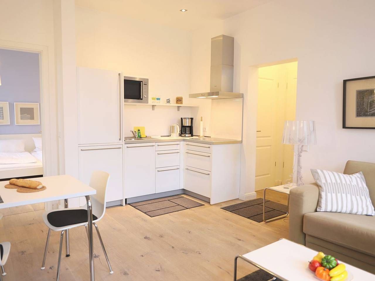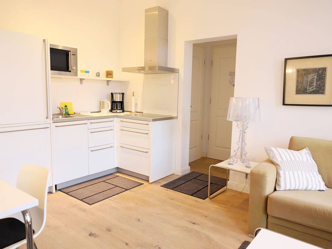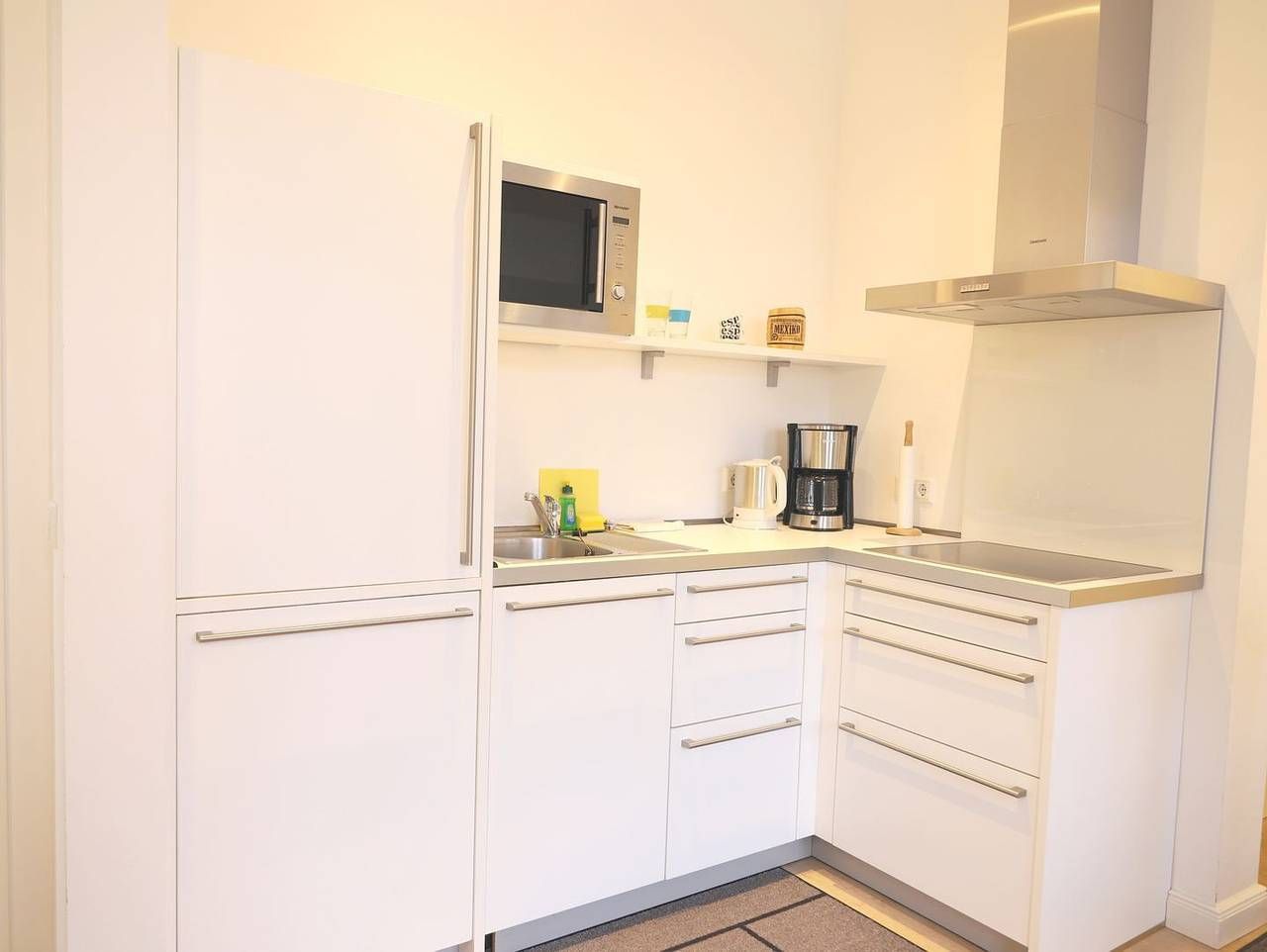 Im Herzen von Westerland, in einer ruhigen Seitenstraße, befindet sich diese exklusive 2-Zimmer-Ferienwohnung im Bäderstil. Die ca. 40 m² große Wohnung ist lichtdurchflutet und modern eingerichtet. Sie umfasst ein gemütliches Wohnzimmer mit einer bequemen Couch, einem Essplatz mit drei Stühlen und einem Flat-TV. Das Schlafzimmer ist mit einem französischen Doppelbett (180 x 200 cm) ausgestattet und verfügt ebenfalls über einen Flat-TV. Die offene Küche ist mit einer Spülmaschine, einem Backofen und einem Cerankochfeld ausgestattet. Das Badezimmer bietet eine Dusche und ein WC. Vom kleinen Ost-Balkon genießen Sie den Blick auf die Umgebung. Ein kostenfreier Stellplatz ist ebenfalls vorhanden. Für Entspannung sorgt der Wellnessbereich im angrenzenden Gebäude, der einen Pool, eine Sauna und eine Dampfsauna umfasst. Kinder, Kleinkinder und Haustiere sind in dieser Nichtraucherwohnung nicht gestattet. Die zentrale Lage ermöglicht es Ihnen, alle Annehmlichkeiten von Westerland bequem zu Fuß zu erreichen, einschließlich des Strandes und zahlreicher Geschäfte.