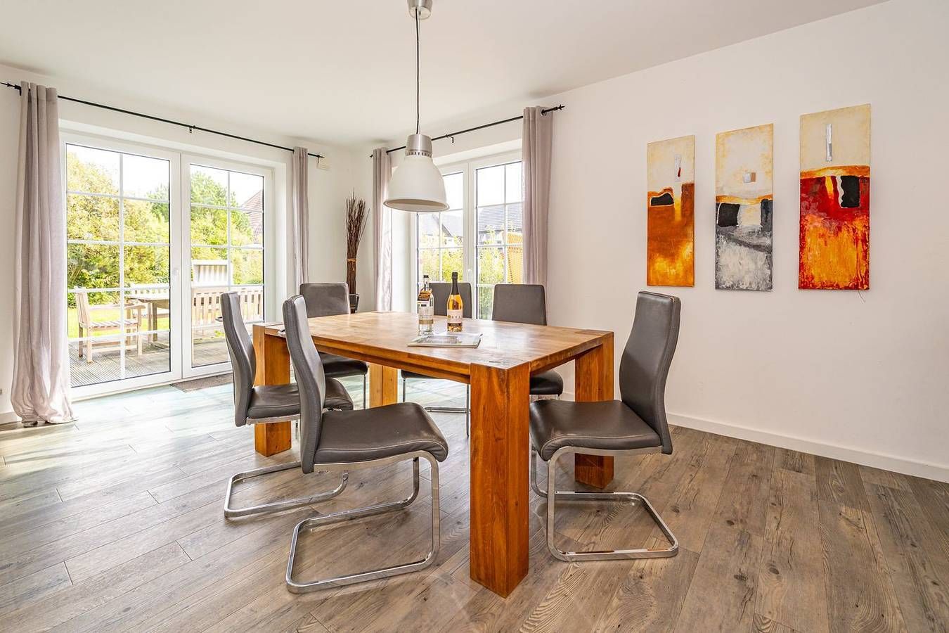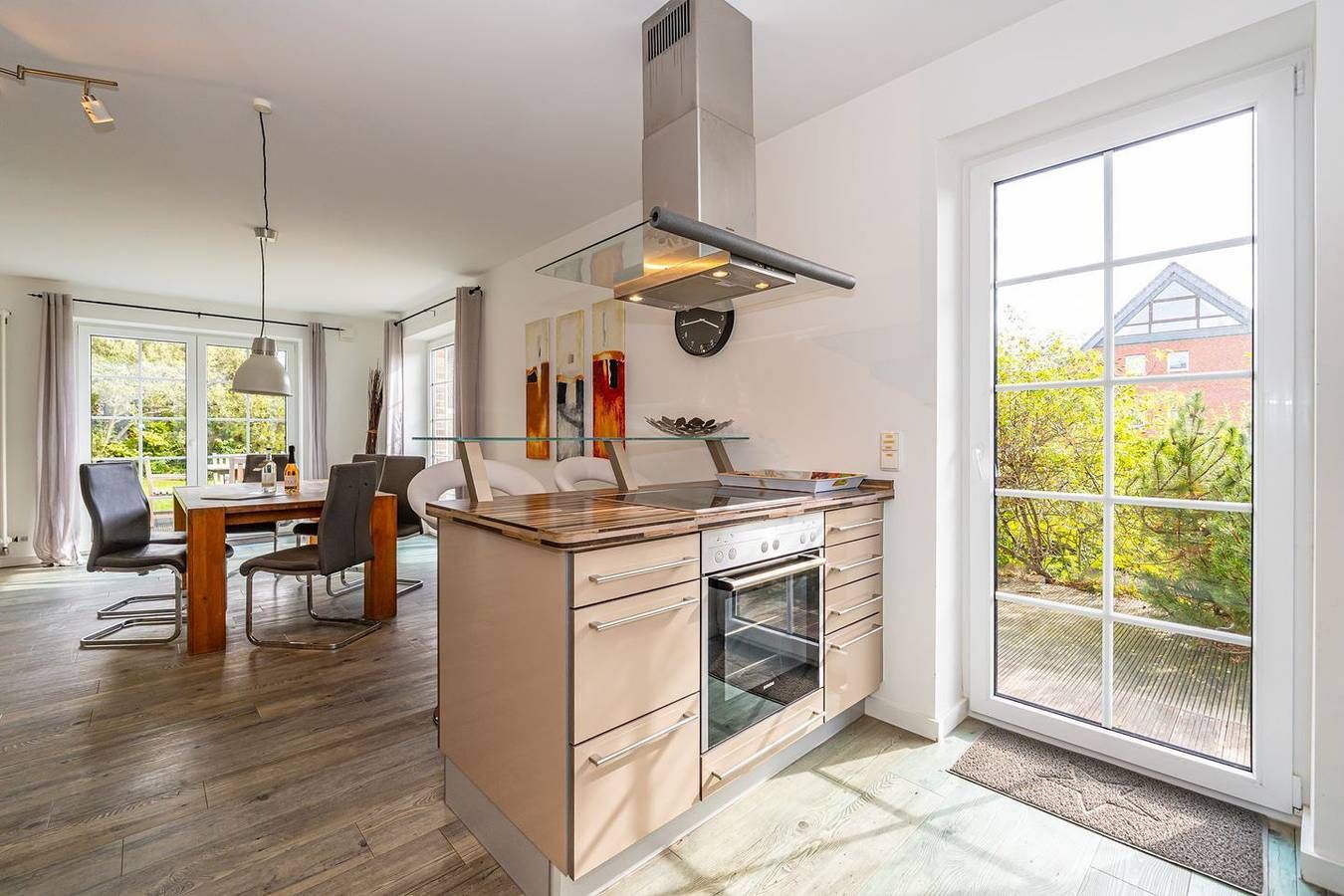 Die Villa Luna bietet auf großzügigen 200 Quadratmetern Raum für erholsame Urlaubstage in bester Lage von Wenningstedt-Braderup auf der Insel Sylt. Die charmante Villa liegt in unmittelbarer Nähe zum Sandstrand, der lediglich 600 Meter entfernt ist, sodass Sie das Meer und das besondere Küstenflair jederzeit genießen können. Von der Unterkunft aus erreichen Sie sowohl das Meer als auch verschiedene Einkaufsmöglichkeiten, Restaurants sowie das Stadtzentrum bequem zu Fuß – sämtliche Ziele befinden sich nur wenige Gehminuten entfernt. Die Villa verfügt über insgesamt fünf Zimmer, darunter vier Schlafzimmer, die bis zu acht Personen komfortabel Platz bieten. Somit eignet sich das Objekt besonders für Familien, Freundesgruppen oder auch kleine Teams. Die Inneneinrichtung der Villa Luna ist modern und zugleich behaglich gestaltet. Der lichtdurchflutete Wohnbereich ist mit einer Sofaecke sowie einem Kamin ausgestattet, der auch an kühleren Abenden eine angenehme Atmosphäre schafft. Die komplett ausgestattete Küche bietet neben einem Esstisch sämtliche Annehmlichkeiten, um gemeinsam zu kochen und Mahlzeiten zu genießen. Zur hochwertigen Ausstattung zählen unter anderem eine Waschmaschine, ein Trockner sowie zahlreiche Ablagemöglichkeiten. Die Villa umfasst zwei moderne Badezimmer, eines davon mit Badewanne, sowie eine Dusche. Darüber hinaus ist ein separates Gäste-WC vorhanden. Im Außenbereich erwartet Sie eine Terrasse mit Gartenblick, die zu entspannten Stunden im Freien einlädt. Kinder sind in der Villa Luna herzlich willkommen. Für Gäste, die mit dem eigenen PKW anreisen, steht ein Privatparkplatz direkt am Haus zur Verfügung. Haustiere sind ausdrücklich erlaubt, sodass auch Ihr vierbeiniger Begleiter den Urlaub an der Nordsee miterleben kann.
