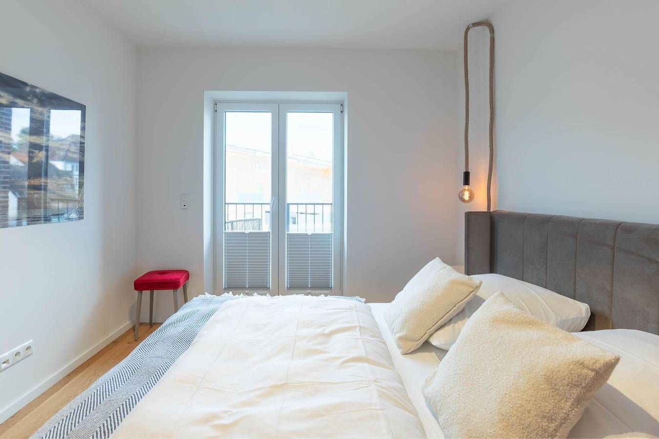 Fußläufig zum idyllischen Tönninger Hafen: familienfreundliches, exklusives Ferienhaus mit vier Schlafzimmern. Genießen Sie Ihren Urlaub direkt am Meer. Lage Unser neues Ferienhaus (Baujahr 2023) liegt in der Altstadt in Tönning, ca. 200 m vom Hafen und ca. 10 km von der Nordsee entfernt. Das Meerwasserschwimmbad und der (grüne) Badestrand sind nur ca. 1500 m entfernt. St.-Peter-Ording mit seinen schönen Sandstränden können Sie in ca. 20 Autominuten (22 km) erreichen. Einkaufsmöglichkeiten und tolle Restaurants finden Sie in der näheren Umgebung. Ausstattung Das ca. 130 qm große Ferienhaus begeistert durch seinen hellen und modernen Charme. Die offene, sehr gut ausgestattete Küche bietet Ihnen einen Induktionsherd mit Dunstabzugshaube, eine Geschirrspülmaschine, eine Mikrowelle, einen großen Kühlschrank mit Gefrierfach, einen Backofen, eine Nespresso-Kapselmaschine, Wasserkocher und ein Toaster. Der helle Essbereich lädt zu schönen Stunden in geselliger Runde mit Blick auf den schön angelegten, eingezäunten Garten ein. Das Gäste-WC und der Hauswirtschaftsraum mit Waschmaschine und Trockner runden das Bild ab. Über eine geschlossene Holztreppe erreichen Sie das 1. Obergeschoss mit drei Schlafzimmern: Das Elternschlafzimmer ist mit einem Doppelbett (180 x 200) ausgestattet, ein kleineres Schlafzimmer mit einem Bett (140 x 200) und das Kinderzimmer mit einem Hochbett. Alle Fenster in den Schlafräumen lassen sich mit Plissees abdunkeln. Ein Highlight ist das großzügige Badezimmer mit ebenerdiger Dusche, Badewanne, WC und großer Sauna. Über eine weitere Treppe erreichen Sie den großzügigen, hellen Wohnbereich mit TV, einer gemütlichen Sofaecke und einem Balkon. Das Masterschlafzimmer verfügt über ein weiteres Doppelbett (180 x 200), einen Balkon und ein Duschbad. Auf der geschützten Terrasse stehen Ihnen Gartenmöbel zur Verfügung. Der eingezäunte Garten lädt zum Verweilen und Grillen ein. Die Besonderheiten Die Fußbodenerwärmung im gesamten Haus gibt Ihnen ein wohliges Raumgefühl. Ihre Vierbeiner sind in diesem Haus herzlich willkommen. Gerne stellen wir Ihnen WLAN zur Verfügung. Je nach Tageszeit können Sie neben der Terrasse drei Balkone mit Bestuhlung nutzen und genießen. Ihr Auto (mit ausreichend Bodenfreiheit) und Ihre Fahrräder können in der Garage sicher untergestellt werden. Alternativ können Sie Ihr Auto mit einem Anwohnerparkausweis in der Nebenstraße (ca. 50 Meter Fußweg) abstellen. Eine Erstausstattung an Bettwäsche und Handtüchern wird bei dieser Unterkunft obligatorisch hinzugebucht und ist bereits im Endpreis enthalten. Zusätzliche Wäschepakete können in den optionalen Leistungen hinzugebucht werden.