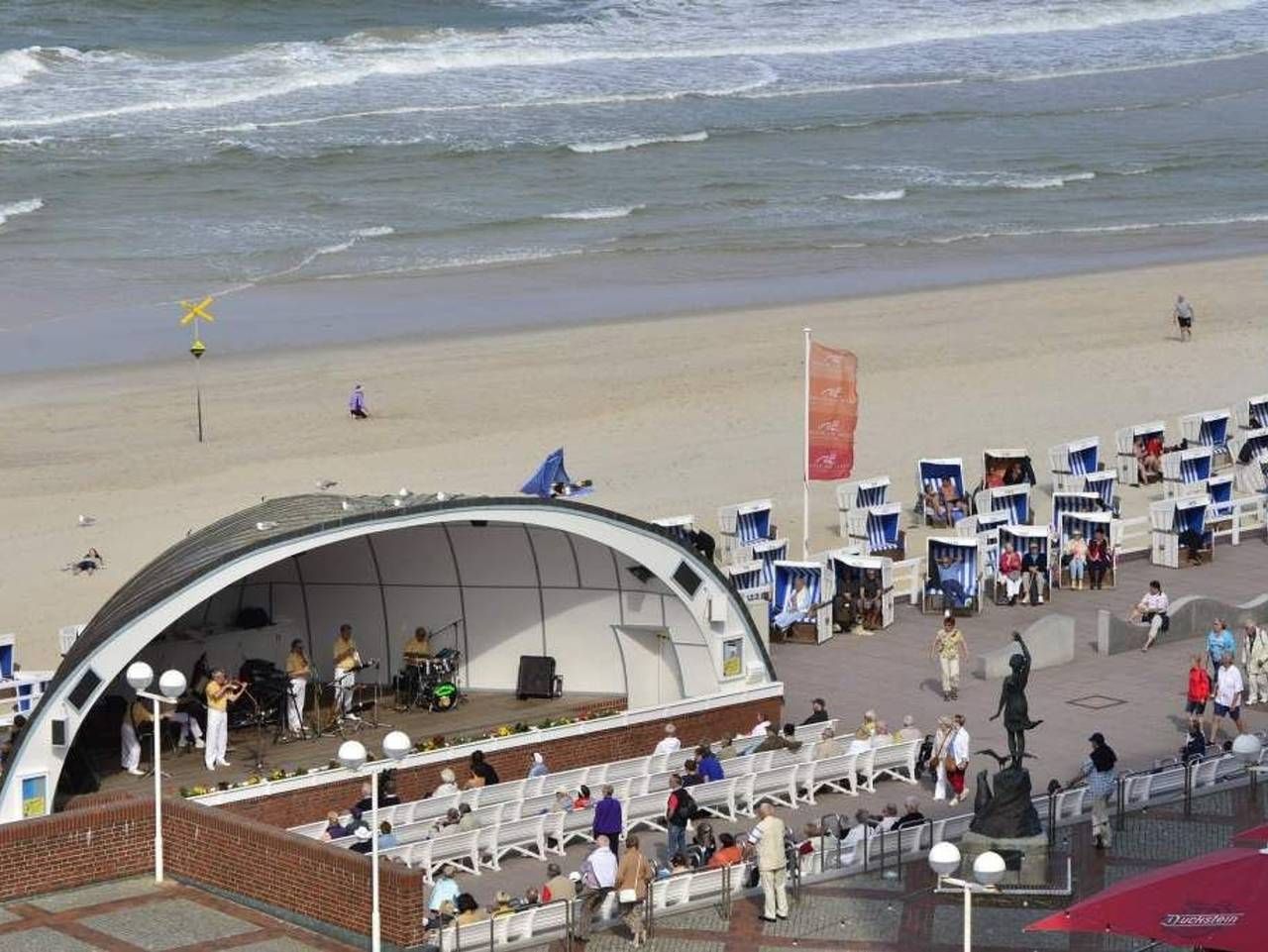 Moderne, großzügige City-Ferienwohnung! Hell und modern präsentiert sich die großzügige 1-Zimmer-Ferienwohnung mit ca. 43 m² im Hochparterre zur Seeseite mit Westloggia (Nachmittagssonne, mit Balkonmöbeln und Auflagen) für max. 2 Personen. Vom großzügigen Vorflur mit Garderobe und viel Schrankraum gelangt man in das kombinierte Wohn-/Schlafzimmer (mit Austritt zur Loggia) mit offener Küche und in das helle Duschbad/WC. Der Wohn-/Schlafraum besteht aus einer gemütlichen Sitzgarnitur (2-Sitzer-Couch und zwei Sessel), einem Essplatz, gutem Doppel-Schrankbett, einem Sat-Flachbildfernseher, Radio/CD und Telefon. Die zum Wohnraum geöffnete Küche hat einen 4-Plattenherd mit Backofen. Kaffeemaschine, Wasserkocher und Toaster gehören zur Grundausstattung. Im Bad befinden sich eine Dusche, ein WC und ein Waschtisch. Zusätzlich steht im Haus eine Waschküche mit Münz-Waschmaschine und -Trockner zur gemeinschaftlichen Nutzung zur Verfügung. Stellplatz zu buchbar Ein PKW-Stellplatz in der Tiefgarage oder ein Außenstellplatz kann optional für 14,00?€/Tag hinzugebucht werden (begrenztes Kontingent). Haustiere sind willkommen! Bei Mitbringen eines Haustieres erhöht sich der Tagespreis um 5,00 € pro Haustier zzgl. einer einmaligen Endreinigungspauschale von 10,00 € pro Haustier auf die übliche Endreinigung.