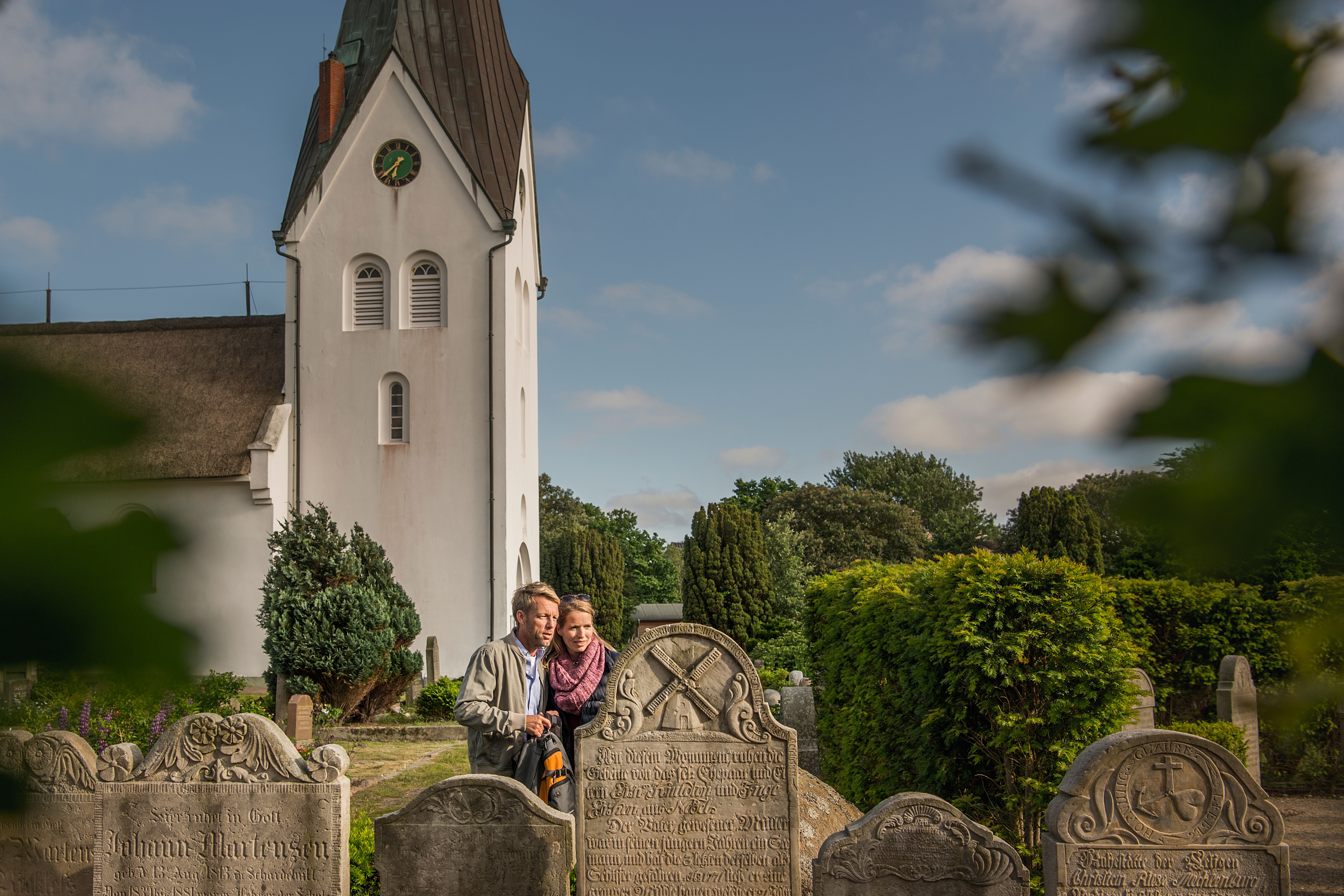 Attraktionen auf dieser Rundtour: Seezeichenhafen, Nebel: St. Clemens Kirche, "sprechende Grabsteine", Öömramg Hüs, Norddorf, Vogelkoje Meeram, Kniepsand am Nebler Badestrand, Leuchtturm