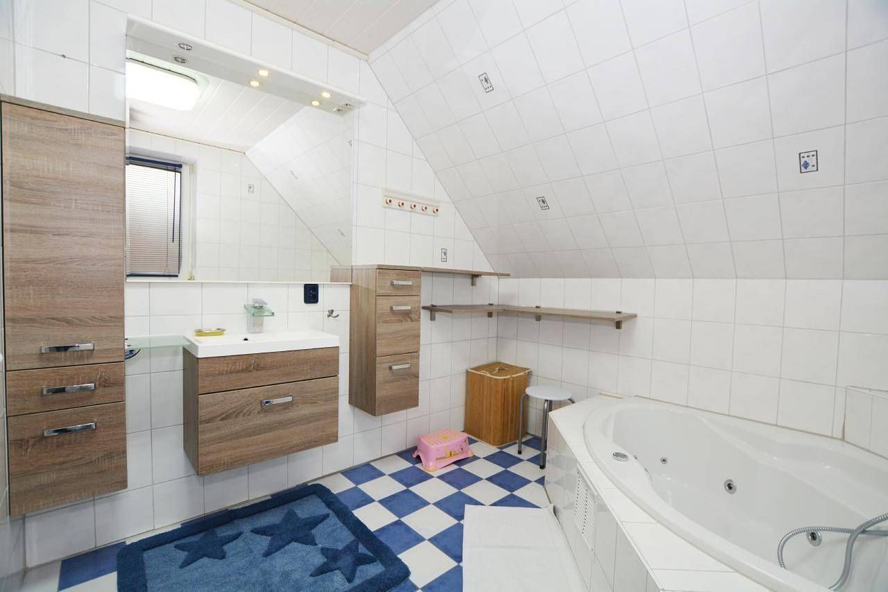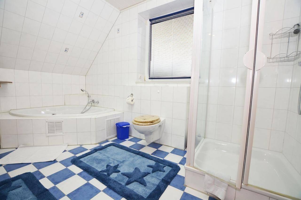 Das Haus Lütt Holland liegt in einer ruhigen Wohngegend .Die Doppelhaushälfte ist 101qm groß und überstreckt sich über 2 Etagen. Das Wohzimmer hat Südlage mit Ausgang zur überdachten Terrasse, die mit Gartenmöbeln ausgestattet ist. Das Haus hat 3 Schlafzimmer, mit je einem Doppelbett wo in einem ein 2. Fernseher steht. In der Küche ist ein Herd mit Ceranfeld und Backofen, Mikrowelle, Wasserkocher, Toaster, Kühlschrank mit Gefrierfach und ein Geschirrspüler. Neben der Küche ist ein Hauswirtschaftraum, wo eine Waschmaschine, ein Bügeleisen und ein Bügelbett und Wäscheständer stehen. Das Bad im Erdgeschoss hat einen Waschplatz, WC und Dusche. Das Bad im Obergeschoß hat einen Waschplatz, WC, Dusche und einen Whirlpool. Neben der Terrasse ist eine Gartenlaube mit Bollerwagen, wo auch Fahrräder untergestellt werden können. Ein Kinderbett und ein Hochstuhl sind vorhanden. Zur Familienlagune sind es ca. 700m, zum Bäckerwagen ca 400 m. WLAN ist kostenfrei. Kurzbeschreibung Sonstiges : Nichtraucherhaus Kurzbeschreibung 1 Anzahl Küchen : 1 Sonstige Räume : Hauswirtschaftsraum Badezimmer 1 Sonstige Badezimmereinrichtung : Whirpool Umgebung Sportmöglichkeiten in der Umgebung : Golfplatz, Radtouren, Surfen, Tennis Garten und Aussenanlagen Freizeiteinrichtungen am Objekt : Whirlpool Gartenausstattung : Gartenhaus, Gartenmöbel vorhanden, Grill Serviceleistungen 1 Sonstiges : Bettwäsche und Handtücher können auch bei uns gemietet werden Allgemein: Badezimmer: 2; Renovierungsjahr: 2017; Schlafzimmer: 3 Schlafmöglichkeiten: Anzahl Doppelbetten (1,80m Breite): 3 Wohnen: Radio; Satelliten-TV; TV Bad/WC: Dusche; Dusche; Föhn; Föhn; Toilette; Toilette; Toilette; Waschbecken; Waschbecken Kochen: Backofen; Elektroherd; Gefrierfach; Herd; Kaffeemaschine; Kühlschrank; Mikrowelle; Spülmaschine; Toaster; Wasserkocher Sonstiges: Bodenheizung; Heizung; Kinder-/ Babybett; Nichtraucherobjekt; Staubsauger; Waschmaschine; W-Lan Nebenkosten: Bett-/Toilettenwäsche: 10,00 EUR pro Person pro Woche (optional, müssen vor Ort bezahlt werden) Endreinigung: inklusive Energiekosten: inklusive Internet: inklusive Kurtaxe: 4,00 EUR pro Person pro Tag (verpflichtend, müssen vor Ort bezahlt werden) Parkmöglichkeit: inklusive