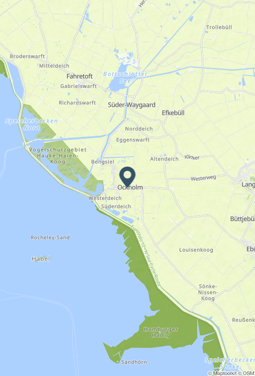 Dieses großzügige Ferienhaus liegt in Ockholm in unmittelbarer Nordseenähe. Nur 1.500 m vom Deich entfernt können Sie sich hier die frische Nordseeluft um die Nase wehen lassen. Fühlen Sie sich wie zuhause in einem der drei Schlafzimmer oder dem großen Ess- Wohnraum. Zwei Fernseher und ein kostenloser Wlan-Zugang sind vorhanden. Das Haus bietet genügend Platz für einen Nordseeurlaub mit bis zu 6 Personen. Im Außenbereich sind genügend Parkflächen für die Gäste vorhanden. Die vielen Deiche rund herum bieten ein perfektes Revier für Radler - einen Fahrradverleih finden Sie praktischerweise direkt im nahen Dagebüll. Im Ortszentrum von Dagebüll, finden Sie außerdem kleine Läden, Restaurants und einen Kaufmann. Hier legen auch die Fähren auf die Nordseeinseln Amrum und Föhr ab - perfekt für einen Tagesausflug! Vom nahen Hafen in Schlüttsiel aus erreicht man auch die kleinen Halligen Hooge und Langeneß schnell und entspannt per Schiff. Auch für eine Tagestour nach Sylt liegt Ockholm ideal, denn vom benachbarten Niebüll aus können Sie in nur einer halben Stunde ganz bequem mit der Bahn direkt bis Westerland durchfahren. Die Stadt Niebüll bietet außerdem ein tolles Kultur- und Freizeitangebot für Jung und Alt mit diversen Museen, einem Hallenbad im Ganzjahresbetrieb sowie einer schönen Naturbadestelle. Auch Sport- und Einkaufsmöglichkeiten sind hier vorhanden.