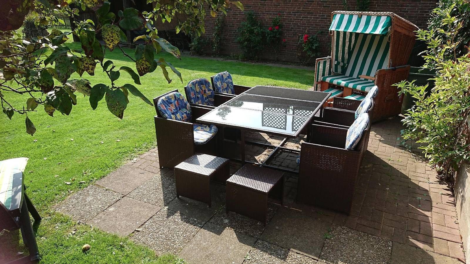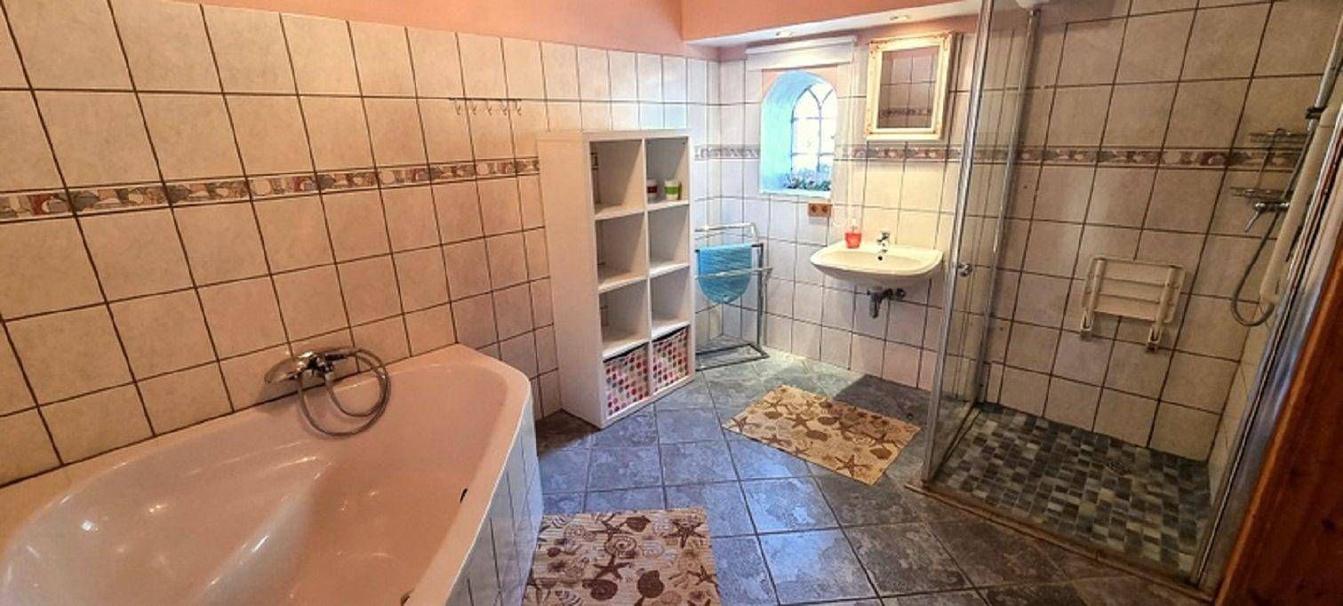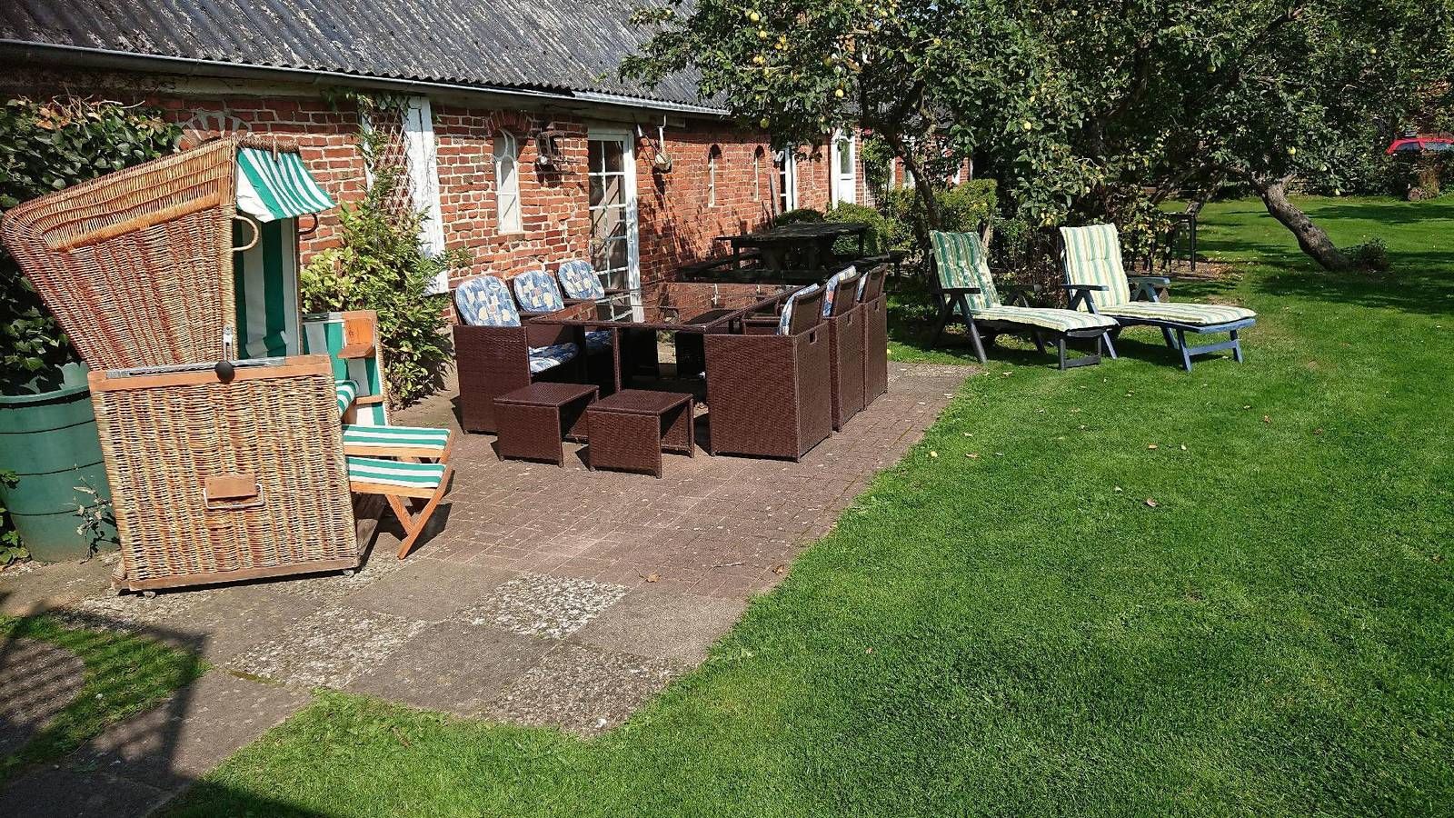Nordseenähe - 12 km zur Nordsee/Husum Ferienhaus mit großem Garten, welcher komplett eingezäunt ist. Unser Landhaus, bietet die Möglichkeit 14 Gäste zu beherbergen. Im Eingangsbereich befindet sich ein Kaminofen mit Sichtfenster, er zaubert wohlige Wärme in den kalten Wintermonaten. Ein geräumiges Wohnzimmer mit gemütlichen Sitzmöbeln, ist ausgestattet mit SAT/TV, DVD-Player. Zentral im Haus befindet sich eine große Küche mit angrenzendem Esszimmer und Zugang zum Garten. - Gepflegter 1000 qm Garten, komplett eingezäunt - Außengrill - Lagerfeuerstelle Auf dem Anwesen der Vermieter in 200m Entfernung leben 6 Hühner. Auf Wunsch kann unsere geräumige Sauna mit 3 Liegen, genutzt werden. Alle Badezimmer befinden sich im Erdgeschoß. Bohmstedt ist ein kleiner beschaulicher Ort mit ca. 800 Einwohnern. In 30 m Entfernung ist ein Restaurant und 6 Tage in der Woche gibt es frische Brötchen in 300 m Entfernung. Im Ort befindet sich ein großer neu gestalteter Spielplatz, sowie ein Fußballplatz. Weitere Einkaufmöglichkeiten bieten sich in Husum 13 km oder in Bredstedt 7 km. Ins benachbarte Dänemark ist es eine gute 1/2 Stunde mit dem Wagen zu fahren Zur Ostsee 3/4 Stunde Fahrzeit Auf ausgeschilderten Wanderwegen zwischen Marsch, Geest und Wald, werden Hund und Herrchen viele schöne Stunden verbringen können. Allgemein: Badezimmer: 3; Baujahr: 1865; Freistehendes Gebäude; Gesamtanzahl d. Stockwerke im Gebäude: 2; Grundstücksfläche: 1000 qm; Renovierungsjahr: 2011; Schlafzimmer: 5 Schlafmöglichkeiten: Anzahl Doppelbetten (1,80m Breite): 3; Anzahl Einzelbetten: 6; Anzahl Doppelbett (von 1,51 m bis 1,79 m Breite): 1 Wohnen: CD-Player; DVD-Player; Kamin; Musikanlage; Radio; Satelliten-TV; TV Bad/WC: Badewanne; Dusche; Dusche; Dusche; Toilette; Toilette; Toilette; Waschbecken; Waschbecken; Waschbecken Kochen: Backofen; Gefrierfach; Herd; Kaffeemaschine; Kühlschrank; Mikrowelle; Spülmaschine; Toaster; Wasserkocher Sonstiges: Haustier erlaubt: max. 4; Heizung; Kinderstuhl; Nichtraucherobjekt; Spiele für Erwachsene; Spiele für Kinder; Staubsauger; Waschmaschine; W-Lan Nebenkosten: Babybett: 20,00 EUR pro Stück (optional, müssen vor Ort bezahlt werden, müssen vorher bestellt werden) Bettwäsche: (mitzubringen) Basispreis für Endreinigung:200,00 EUR (verpflichtend; kann in Abhängigkeit von der Personenanzahl variieren) Energiekosten: 0,40 EUR pro Kilowattstunde nach Verbrauch (verpflichtend, müssen vor Ort bezahlt werden) Handtücher: (mitzubringen) Haustier: 40,00 EUR (verpflichtend bei Anreise mit Haustier, müssen vor Ort bezahlt werden) Heizung: 0,87 EUR pro Kubikmeter nach Verbrauch (verpflichtend, müssen vor Ort bezahlt werden) Kaution: 200,00 EUR (verpflichtend, müssen vor Ort bezahlt werden) Wasser: 4,00 EUR pro Kubikmeter nach Verbrauch (verpflichtend, müssen vor Ort bezahlt werden)