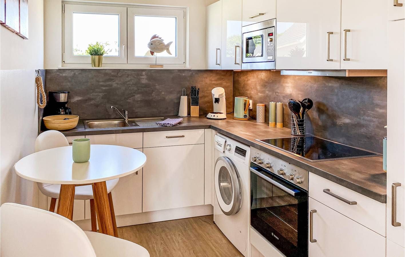 Willkommen zu einem erholsamen Urlaub an der Nordsee. Sie betreten Ihr 2021 gebautes Haus über das Eingangsportal und treten in den kleinen Flur, vom dem Sie in das Duschbad mit Sauna, in die Küche sowie in den modern und gemütlich eingerichteten Wohnraum mit Essbereich gelangen. Außerdem geht es von dort über die Treppe in den 1. Stock mit zwei Schlafzimmern und einem Wannenbad. Das ganze Haus ist modern und freundlich eingerichtet, so dass Sie sich hier gleich wohlfühlen werden. Vom Wohnbereich treten Sie auf eine großzügige Terrasse mit hochwertigen Gartenmöbeln, Grill und nutzbarer Grünfläche. Die hauseigene Sauna und der Kamin sorgen für zusätzliche Wohlfühlmomente, auch im Winter. Zur Ausstattung des Hauses gehören zudem zwei Fernseher und kostenfreies Wlan. Sonnenschirm, Sonnenliege, Sandkasten & Wassermuschel für Kinder, Federball, Boccia. Das NordseeResort Büsum liegt nur wenige Rad- und Gehminuten vom Nordseedeich entfernt, an dem sich Strandkörbe und die Badelagune Perlebucht mit Sandstrand zur Nordsee befinden. Die Lagune ist innenliegend mit ihren geschützten Meerwasser-Badeseen mit feinsandigem Strand. Außerdem bietet Büsum das Erlebnismuseum Blanker Hans, Sie können bei rauem Wetter das Wellenbad Piratenmeer oder die Wellness Oase besuchen. Ebenso können Sie die befahrbaren Sandstrände von St. Peter Ording besuchen sowie das Eidersperrwerk. Vom Büsumer Hafen aus gelangen Sie mit dem Schiff nach Helgoland oder in den Nationalpark Wattenmeer, ebenso mit Kleinflugzeugen vom Büsumer Flugplatz. Im nahen Friedrichskoog ist die Seehundstation, in Tönning das Multimar Wattforum. Nur für Ferienaufenthalte