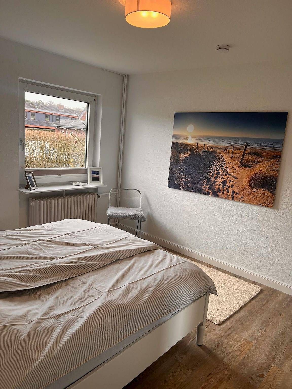Ferienhaus Astrid. Urlaub auf der Insel Sylt direkt an der Nordsee. Familienurlaub auf 110qm - für bis zu 6 Personen. Entspannen Sie beim Rauschen der Brandung oder lassen Sie sich die salzige Luft direkt um die Nase wehen in nur 7 Minuten zu Fuß. Das großzügige Haus mit einem großem, eigenen und zugewachsenem Garten liegt unweit der Nordsee in einem Wohngebiet im Norden Westerlands. Ende der 60er Jahre erbaut, wurde das Haus im Jahr 2020 modernisiert, renoviert und nordisch eingerichtet. 2 Etagen, 4 Zimmer, 2 Bäder, Terrasse, Garten, gr. Carport, zentrale Lage im Norden vom Westerland Das Haus hat einen großen Wohn- und Essbereich mit offener Küche, in dem die ganze Familie Platz findet. Es gibt drei Schlafzimmer mit Doppelbetten (160x200cm) und zwei Duschbädern. Modern eingerichtetes Wohn- und Esszimmer mit gemütlichen Sitzmöbeln, zum Chillen vor dem Fernseher mit Blick in den grünen Garten. Großer Esstisch für bis zu sechs Personen. Die Küche ist voll ausgestattet mit Cerankochfeld, Backofen, Spülmaschine, Mikrowelle, Kühl-Gefrierkombination, Kaffee und Nespresso Maschine sowie einem umfangreichen Angebot an Koch- und Backutensilien. Weitere Ausstattung: Freies W-LAN (50Mbit/Sek) Smart TV inkl. Telekom Magenta Bluetooth Lautsprecher Harman/Kardon Gesellschaftsspiele Hochstuhl auf Anfrage Heimtrainer Yoga Matte Der Garten ist auch vom Wohnzimmer aus über die Holzterrasse begehbar. Das rund 700qm große Grundstück ist von einer 2 Meter hohen Hecke eingewachsen, lädt ein zum Spielen auf dem Rasen und bietet zu jeder Tageszeit sonnige Plätze zum Entspannen. Bitte beachten Sie, dass eine eventuell anfallende Kurabgabe nicht im Gesamtpreis enthalten ist. Diese ist vor Ort zu leisten.