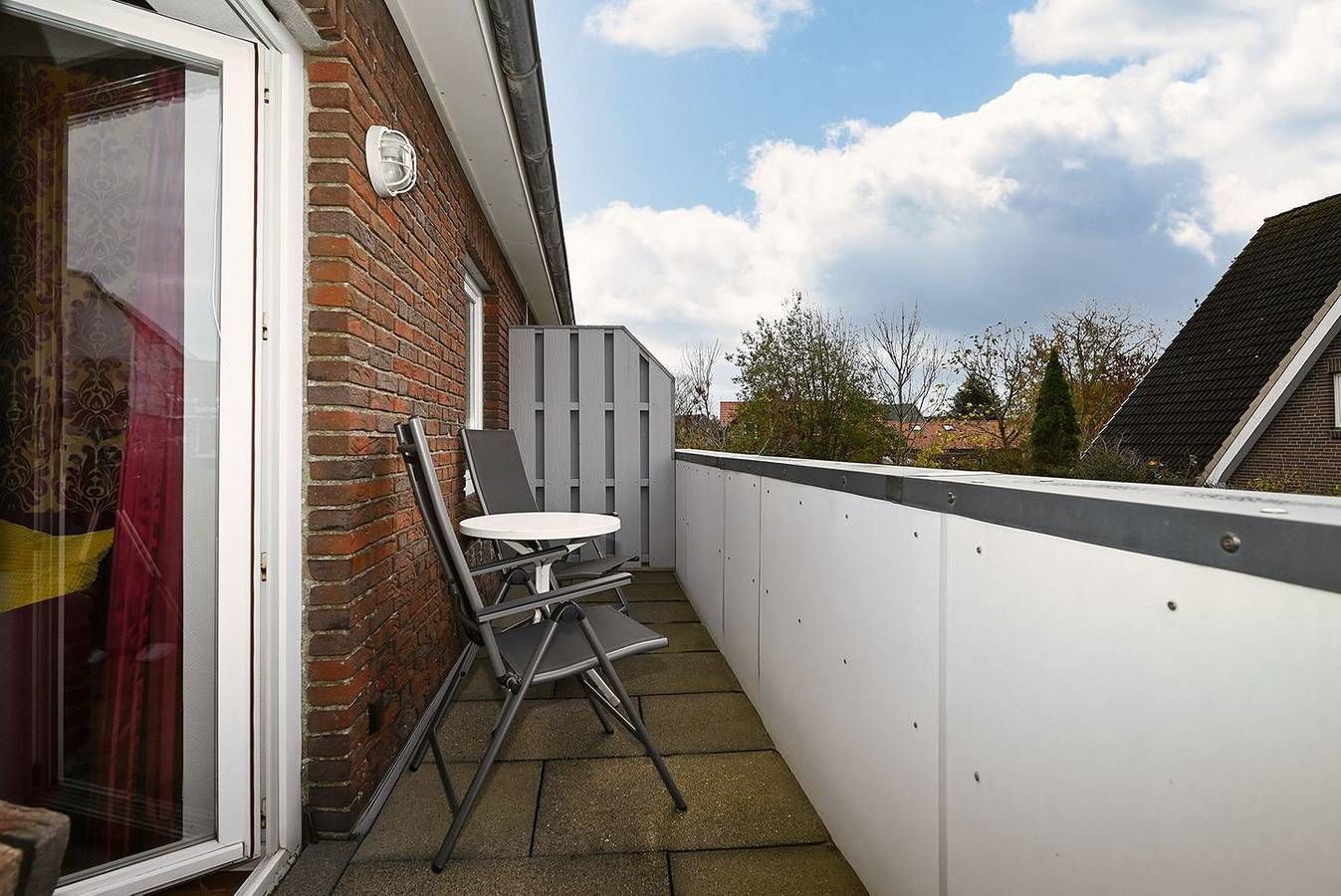 Herzlich Willkommen in der Ferienwohnung Cumulus – Wohnung 1! Die liebevoll eingerichtete 2-Raum-Ferienwohnung im Ferienhaus Cumulus befindet sich im ersten Obergeschoss und bietet den idealen Rückzugsort für zwei Personen sowie ein Baby oder Kleinkind. Hier erwartet Sie eine freundliche, helle Atmosphäre, die von Anfang an Urlaubsstimmung aufkommen lässt. Das separate Schlafzimmer ist mit einem komfortablen Doppelbett in der Größe 1,80 x 2,00 Meter ausgestattet. Für die kleinen Gäste steht ein festes Kinderbettchen bereit, sodass sich auch Familien mit Baby oder Kleinkind rundum wohlfühlen können. Der offene Wohn-, Ess- und Kochbereich lädt zum Entspannen und Verweilen ein. Die moderne Küche verfügt über einen Backofen, ein Ceran-Kochfeld, einen Kühlschrank mit Gefrierfach sowie alle wichtigen Küchenutensilien, um im Urlaub gemeinsam zu kochen und zu genießen. Das Badezimmer ist hell und modern gestaltet. Es bietet eine Dusche mit leichtem Einstieg, der kaum eine Stufe hat, sowie eine angenehme Handtuchheizung, die für wohlige Wärme und Komfort sorgt – besonders an kühleren Tagen. Vom Balkon aus blicken Sie in die ruhige Umgebung und können dort wunderbar die Sonne genießen oder den Tag gemütlich ausklingen lassen. Zur Wohnung gehört ein eigener Parkplatz direkt auf dem Grundstück. Fahrräder können sicher untergestellt werden, ein Stromanschluss steht jedoch nicht zur Verfügung. Im Garten befindet sich zudem ein gemeinschaftlich genutzter Sitz- und Grillbereich, der zu geselligen Abenden einlädt. Hier gilt das Motto: „Wer zuerst kommt, malt zuerst“ – oder man kommt einfach in netter Runde mit den anderen Gästen des Hauses zusammen. Ob entspannte Stunden am Strand, Spaziergänge über den Deich oder gemütliche Abende auf dem Balkon – in der Ferienwohnung Cumulus – Wohnung 1 finden Sie die perfekte Kombination aus Komfort, Ruhe und maritimem Flair für einen erholsamen Urlaub an der Küste.