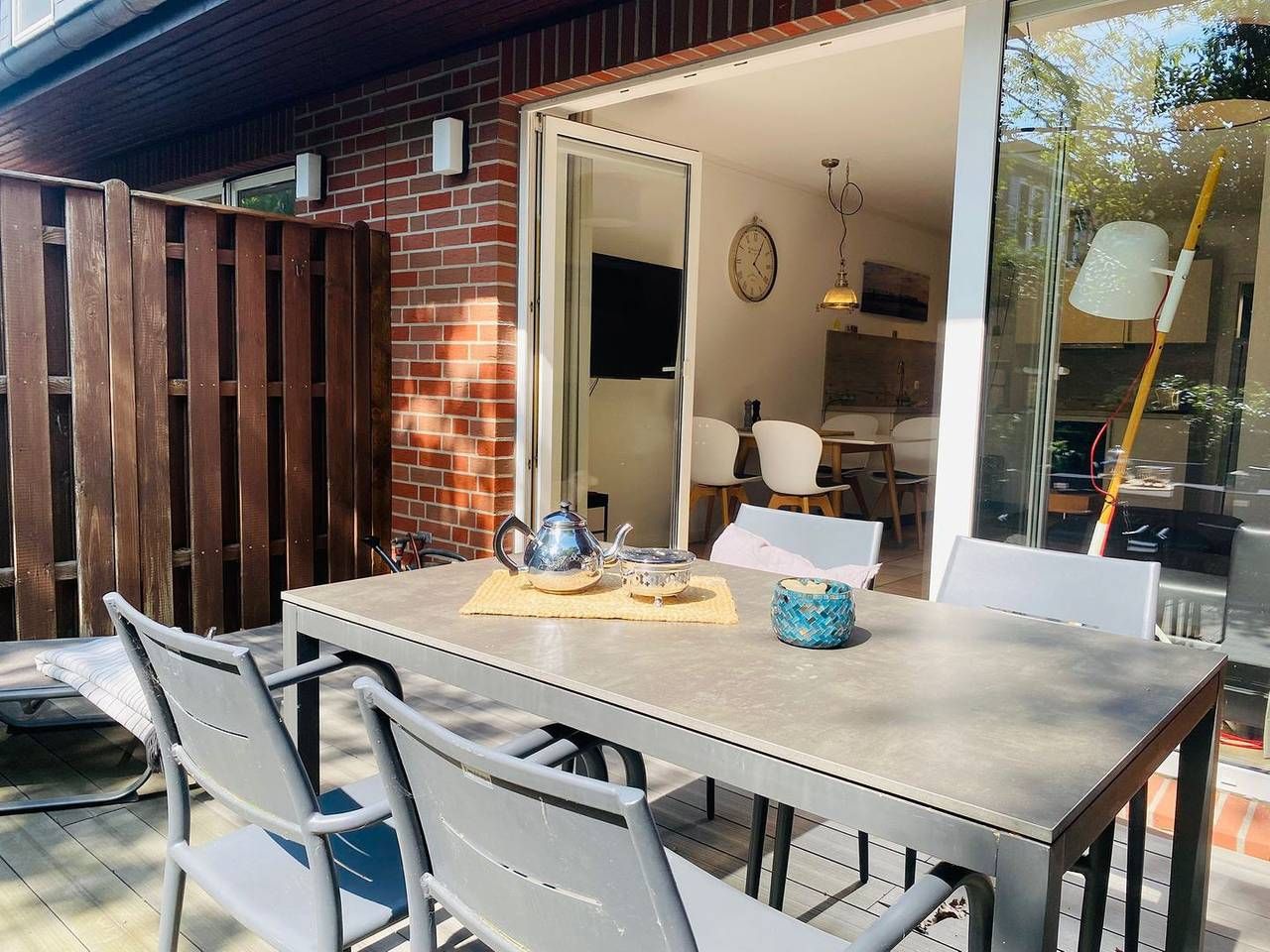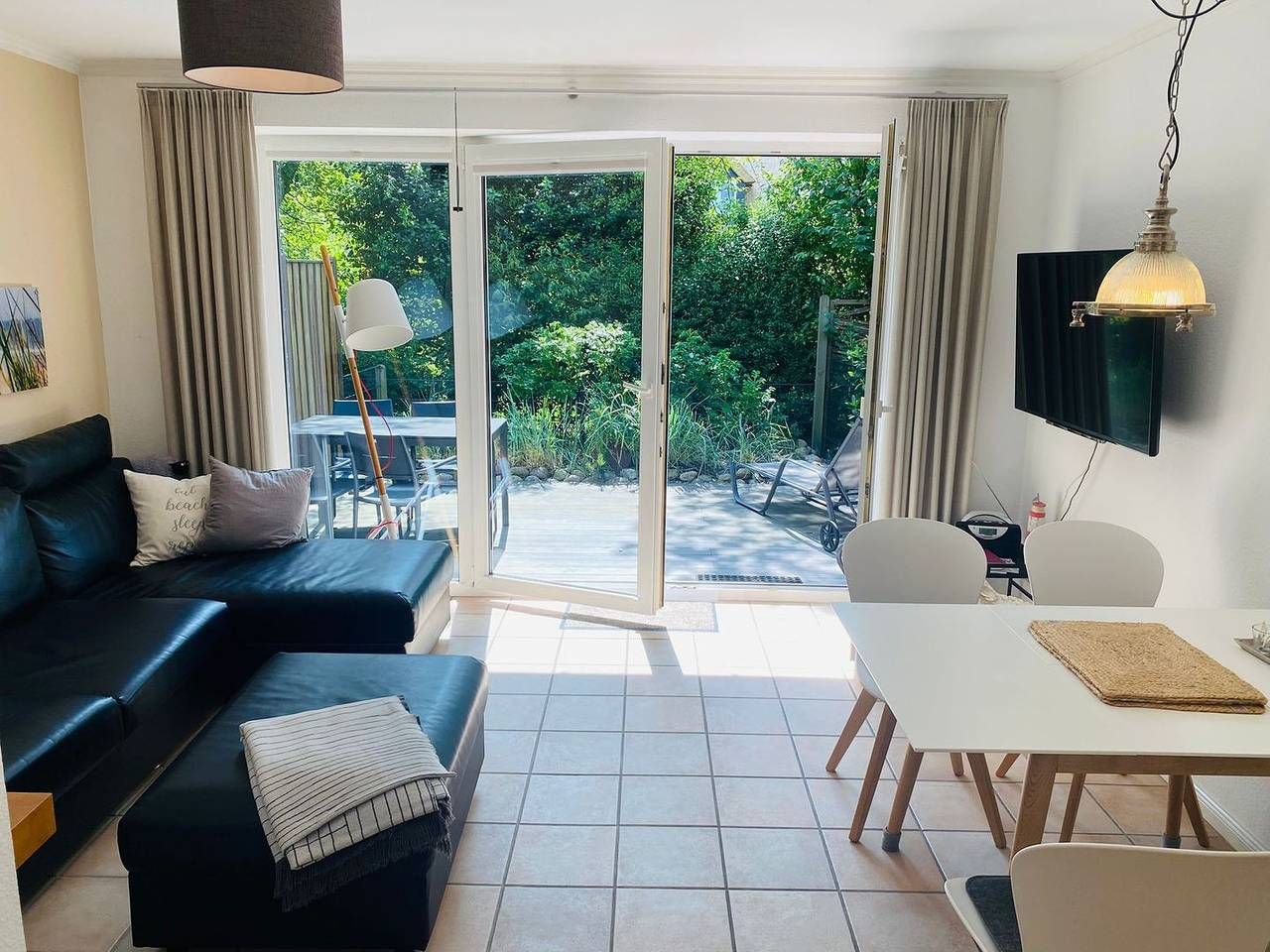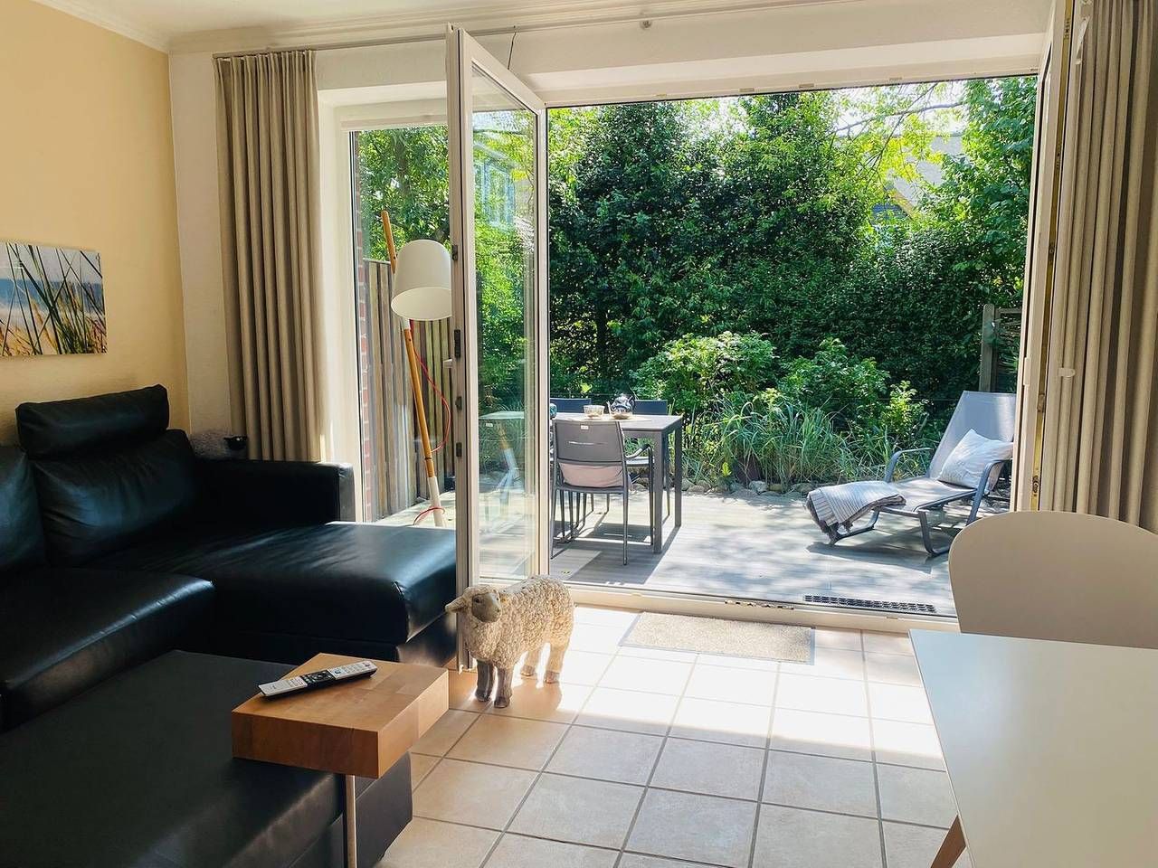 Willkommen im "Bunten Schaf" – einem frisch renovierten Reihenmittelhaus, Teil von vier Reihenhäusern in ruhiger Lage, direkt hinter den Dünen. Nur etwa drei Gehminuten trennen Sie vom Dorfzentrum, und in etwa acht Minuten erreichen Sie den Seedeich mit Strandübergang. Das Haus erstreckt sich über ca. 60 qm auf zwei Etagen und wurde modern eingerichtet. Der Wohnbereich bietet einen Smart TV mit Mediathek, und die Essecke lädt zu geselligen Momenten mit Freunden und Familie ein. In der offenen Küche finden Sie unter anderem einen Geschirrspüler und einen Backofen. Im Obergeschoss befinden sich zwei Schlafzimmer, beide mit TV ausgestattet, für erholsame Nächte. Ein Duschbad sowie eine Waschmaschine stehen zur Verfügung. Auf Wunsch kann eine E-Ladestation gegen eine Gebühr genutzt werden. Genießen Sie bei schönem Wetter das Frühstück auf der Terrasse mit Gartenmöbeln, um gut gestärkt in den Tag zu starten. Beachten Sie bitte, dass es sich um ein Nichtraucherobjekt handelt . Hier im "Bunten Schaf" erwartet Sie ein erholsamer Nordseeurlaub. Haustiere sind auf Anfrage gestattet.