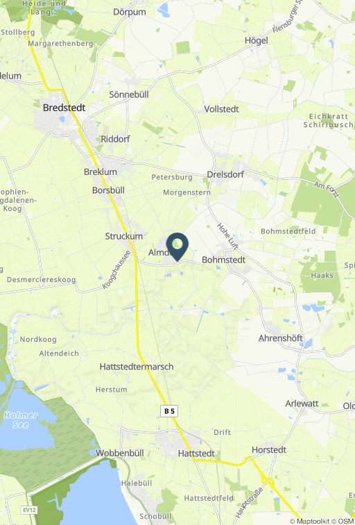 Beschreibung der Wohnung Nordseeurlaub pur: wenn Sie Ruhe und Entspannung suchen, sind Sie in unserem Ferienhaus "Friesenkrabbe" in Almdorf genau richtig. Die Lage Unser Ferienhaus "Friesenkrabbe" - das gelbe Haus befindet sich in einem typisch nordfriesischen Ort Almdorf, unweit des Beltringharder Koogs und Lüttmoorsiel mit seinem grünen Badestrand. Der nächste Bäcker befindet sich in Struckum. In der Kleinstadt Bredstedt (5 km) gibt es alle Einkaufsmöglichkeiten z. B.: Netto, Aldi, Markant, Lidl, Sky, Rossmann, Vivo Naturkost um nur einige zu nennen. Auch Husum mit seinem idyllischen Hafen und den vielen Einkaufsmöglichkeiten, Restaurants und Museen ist nur 10 km entfernt. Die Ausstattung Unser Ferienhaus bietet auf 50 qm Platz für bis zu vier Personen. Es ist mit einem gemütlichen Wohnbereich großem SAT-TV, mit einer offenen Küche und Essplatz und einem Duschbad eingerichtet. Es verfügt über zwei Schlafzimmer: ein Boxspringbett und einem Etagenbett . Auf der Terrasse mit den Gartenmöbeln können Sie den Tag gemütlich ausklingen lassen. In dem Anbau können Sie Ihre mitgebrachten Fahrräder abstellen. Für den Spielspaß unserer kleinen Gäste steht auf dem Grundstück ein Spielturm zur Verfügung. Die Besonderheiten In unserem Nichtraucher-Haus sind Vierbeiner willkommen. WLAN wird Ihnen kostenfrei zur Verfügung gestellt. Der große Garten bietet für Zwei- und Vierbeiner viel Freiraum zum Toben und Spielen. Ein Teil des Gartens ist eingezäunt. Direkt am Haus stehen Ihnen Parkmöglichkeiten zur Verfügung. Eine Erstausstattung an Bettwäsche und Handtüchern wird bei dieser Unterkunft obligatorisch hinzugebucht und ist bereits im Endpreis enthalten. Zusätzliche Wäschepakete können in den optionalen Leistungen hinzugebucht werden. Anfahrt .