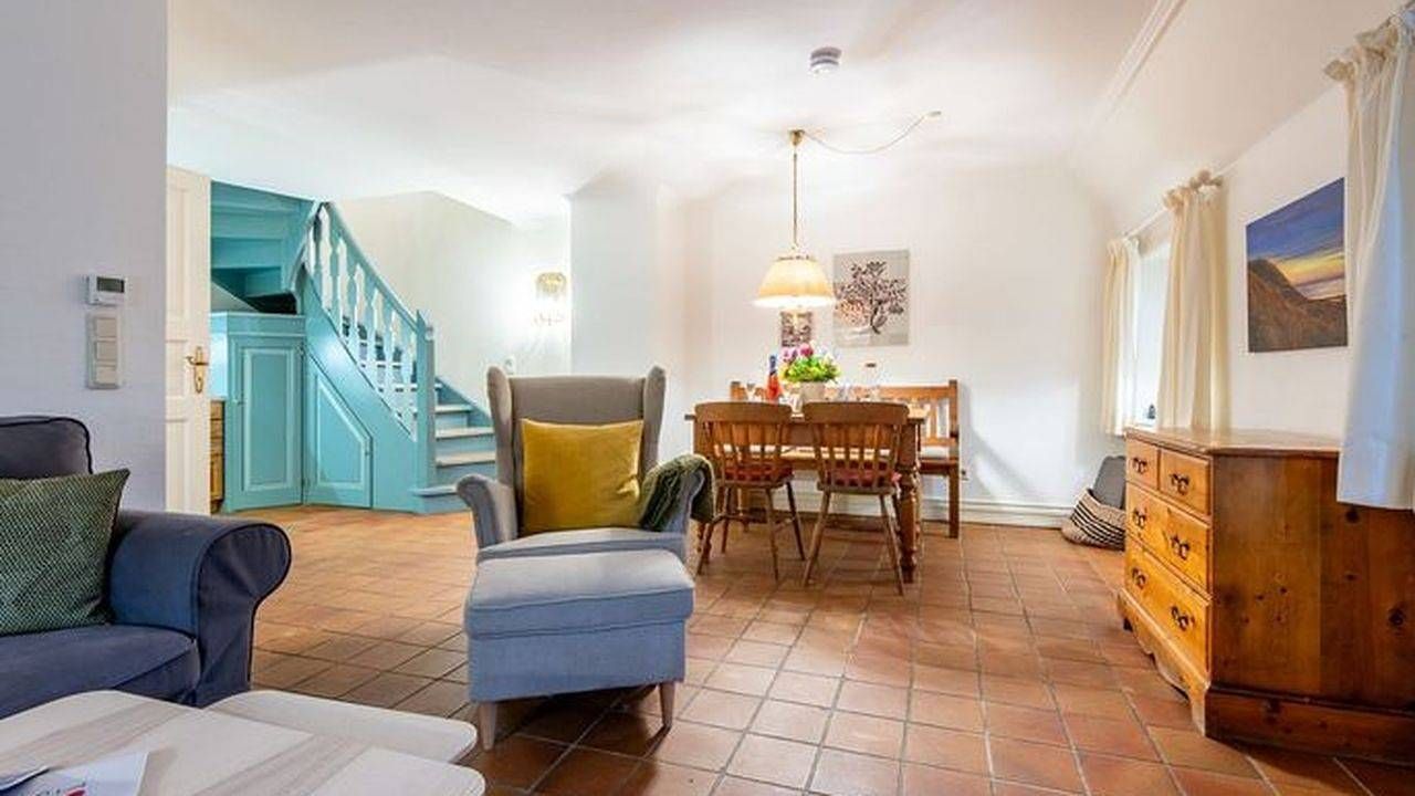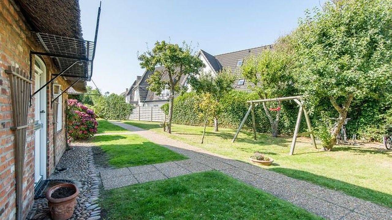 Beschreibung der Wohnung CHARMANTE 3-ZIMMER-FERIENWOHNUNG UNTER REET IM 'FRIESENHAUS KÄPT'N HAHN' Erleben Sie friesische Gemütlichkeit im traditionellen 'Friesenhaus Käpt’n Hahn', das mit ca. 70 m² über zwei Ebenen bis zu 3 Personen einen erholsamen Aufenthalt auf Sylt bietet. Diese stilvolle Ferienwohnung unter Reet liegt in ruhiger Lage in Westerland und ist der ideale Rückzugsort, um entspannt zur Ruhe zu kommen. Mit eigenem eingewachsenen Garten und großzügiger Terrasse genießen Sie hier die Sonne und Ihre Privatsphäre. Hunde sind willkommen. **WOHN- UND AUSSENBEREICH** Der Wohn-Essbereich bietet eine gemütliche Sitzgruppe mit Sofa, Sessel und TV und führt direkt in den schön angelegten Garten mit einer möblierten Terrasse. Der Garten bietet reichlich Platz zum Entspannen, Spielen und Verweilen, und der zur Verfügung stehende Strandkorb (April bis Oktober) sorgt für friesisches Urlaubsflair. **SEPARATE KÜCHE** Die separate, voll ausgestattete Küche bietet alles, was Sie für die Selbstversorgung benötigen: ein modernes Ceranfeld, Filterkaffeemaschine und eine Nespresso-Maschine. Hier lassen sich komfortabel alle Mahlzeiten für einen entspannten Urlaubstag zubereiten. **SCHLAFZIMMER UND BADEZIMMER** Das Hauptschlafzimmer ist mit einem Doppelbett (2x 90x200 cm) und maßgefertigten Tischlereinbauten ausgestattet, die genügend Stauraum bieten. Das zweite Schlafzimmer verfügt über ein Einzelbett (90x190 cm) und ebenfalls über Tischlereinbauten. Das Badezimmer mit Badewanne lädt zu entspannenden Momenten ein. **PRAKTISCHE EXTRAS** Ein Pkw-Stellplatz und eine Fahrradabstellmöglichkeit befinden sich direkt am Haus. Das gesamte Erdgeschoss ist mit einer Fußbodenheizung und Pluviosen ausgestattet, die für ein besonders gemütliches Ambiente sorgen. WLAN (ohne Gewähr) steht Ihnen zur Verfügung. Sonstiges Willkommen im Friesenhaus Käpt'n Hahn – ein gemütliches Domizil im friesischen Stil, das eine warme und einladende Atmosphäre bietet. Dieses charmante Haus beherbergt sechs separate Ferienwohnungen mit einer Größe von 55 m² bis 80 m², die Platz für 2 bis 5 Gäste bieten. Jede Wohnung verfügt über eine eigene Terrasse, ideal für entspannte Stunden im Freien. Für zusätzlichen Komfort steht ein gemeinschaftlicher Waschraum mit Waschmaschine und Trockner zur Verfügung, und Hunde sind hier herzlich willkommen – perfekt für Hundeliebhaber, Paare und Familien. Die zentrale Lage nahe der lebendigen Friedrichstraße ermöglicht es Ihnen, das vielfältige Angebot an Geschäften und Restaurants schnell zu erreichen. Der Strand ist nur etwa 550 Meter entfernt, sodass auch entspannte Strandtage jederzeit möglich sind. Die Nähe zur Promenade erlaubt es Ihnen zudem, an den zahlreichen Veranstaltungen und Events teilzunehmen, die Westerland das ganze Jahr über bietet. Das Friesenhaus Käpt'n Hahn verbindet friesischen Charme mit modernem Komfort und ist der ideale Ausgangspunkt für einen unvergesslichen Aufenthalt auf Sylt.