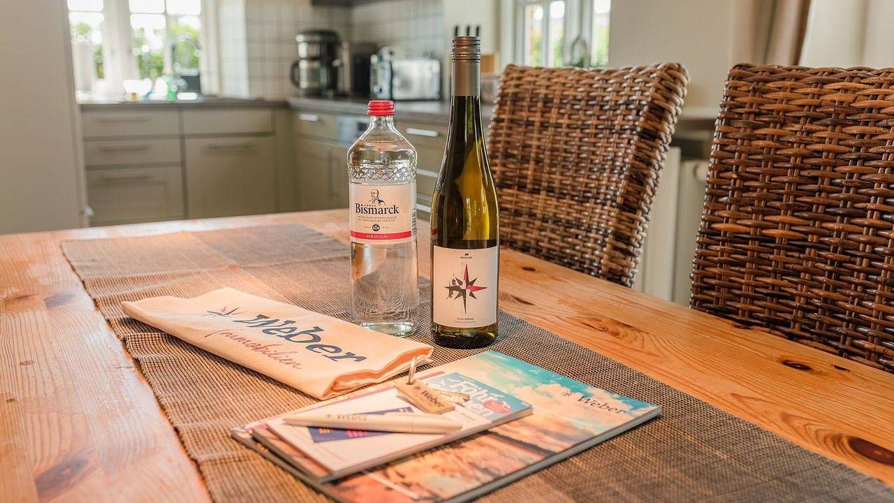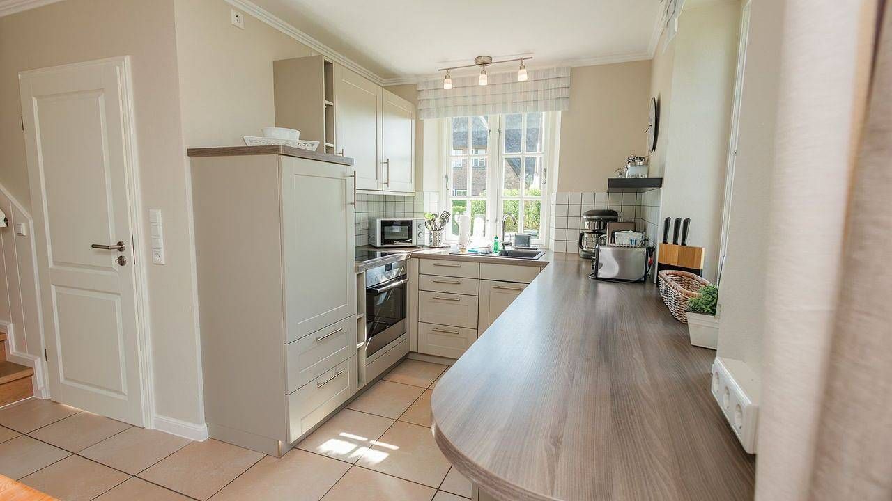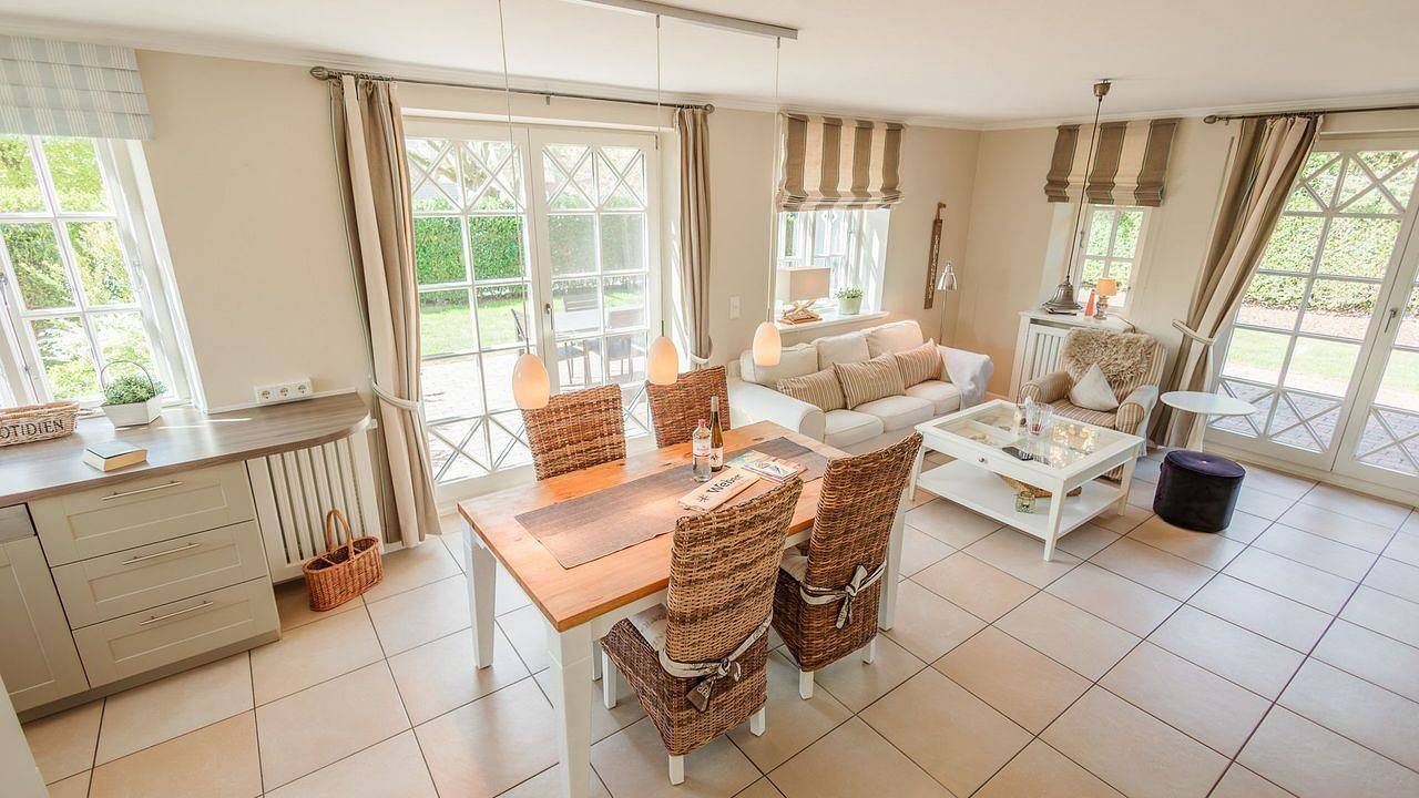 Beschreibung der Wohnung Der reetgedeckte Ferienhausteil Carla Marie verfügt über 2 Schlafzimmer, 1 Bad und 1 Gäste-WC plus Sauna mit Dusch-Option im Dachgeschoss und bietet somit komfortabel Platz für bis zu 4 Personen zuzüglich einer Kleinkinderaufbettung. Die Mitnahme von Hunden ist auf Anfrage gestattet. Zu den Highlights der Ferienunterkunft zählen wir u. a. den im Spitzboden verbauten Saunabereich wie Dusche, den Kaminofen, die beiden eigenen Terrassen und die ruhige, strandnahe Lage. Im Erdgeschoss befinden sich der großzügige Wohn- und Essbereich mit Fußbodenheizung und offener Küche sowie ein Gäste-WC. Über den Wohnbereich gelangen Sie direkt auf die beiden eigenen Terrassen mit Gartentisch/-stühlen und in den Garten. Der Kaminofen im Wohnbereich sorgt auch an kühleren Tagen für eine angenehme, wohnliche Atmosphäre. Im Obergeschoss sind die beiden Schlafzimmer mit jeweils einem Doppelbett ausgestattet - und das Duschbad mit Fußbodenheizung sowie, in einem Separee abgetrennt, Waschmaschine und Trockner gelegen. Die Doppelbettzimmer verfügen über eigenen Smart-TV. Im Januar/Februar 2024 wurden umfangreiche Renovierungsarbeiten in der Unterkunft vorgenommen. Unter anderem wurden in den beiden Schlafzimmern vom Tischler angefertigte Doppelbetten eingebaut. Zu den Highlights zählen wir den im Spitzboden verbauten Saunabereich mit Dusche. Genießen Sie schöne Sonnenstunden auf den Terrassen im eigenen Garten. Ein PKW-Stellplatz direkt am Haus rundet das Angebot ab. Zahlreiche Freizeitangebote befinden sich in unmittelbarer Umgebung des Objektes. Als Beispiele: weitläufiger Natur- und Sandstrand in nur wenigen Gehminuten, Kite-/Surfen, Wattwandern nach Amrum, Reiten, Bootsverleih. Ein äußerst angenehmer Aufenthalt für unsere Gäste und somit die sorgfältige Reinigung der uns anvertrauten Ferienunterkünfte ist unser höchstes Gebot. Damit wir diesem gerecht werden, weist jede unserer Ferienimmobilien in den Monaten Mai bis einschließlich Oktober einen festgelegten An- und Abreisetag auf. Weitere Infos finden Sie auf unserer Homepage! Fester An- und Abreisetag Juli - August: Dienstag Feste An- und Abreisetage Mai - Oktober: Montag - Freitag Mind. 7 Übernachtungstage: April - Oktober, Weihnachten und Jahreswechsel Mind. 2 Übernachtungstage: November - März