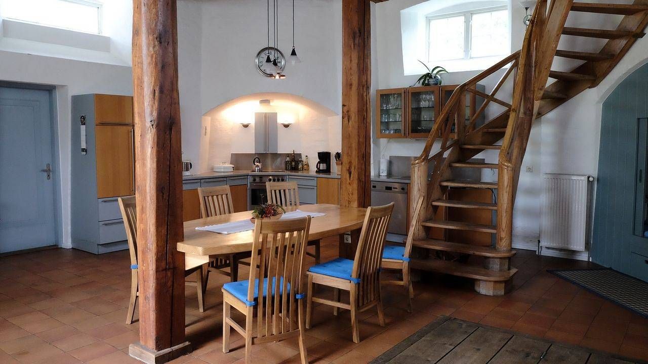 Beschreibung der Unterkunft Verbringen Sie ihren Urlaub in einer echten Windmühle. 3 Schlafzimmer für 6 bis 8 Personen, eine riesige Wohnküche im Erdgeschoss, ein Wohnzimmer mit 360 Grad Rundumblick über die Felder und Wiesen und ein schöner Garten erwarten Sie. Umgeben von Viehweiden mit grasenden Schafen und Kühen liegt diese wunderschöne, historische Windmühle inmitten der schönen Nordseehalbinsel Eiderstedt - nahe St. Peter Ording mit einem der schönsten Sandstrände Schleswig-Holsteins. Es erwartet Sie ein absolutes Traumhaus! Erleben Sie hier den Wohnkomfort der besonderen Art - verteilt auf drei geschmackvoll ausgestatteten Ebenen! Genießen Sie die idyllische und ruhige Lage - abseits von Stress und Hektik. Mit einer Wohnfläche von 190 qm und drei separaten Schlafzimmern sowie einem zusätzlichen Alkoven - Schlafplatz im Wohnbereich - bietet die Mühle Catharina Platz für 6 - 8 Personen. Oberhalb der Wohnküche erwartet Sie ein Wohngenuss der besonderen Art: Mächtige Holzbalken geben dem großen Raum Behaglichkeit und Stuktur. Fenster in allen Himmelsrichtungen lassen ihn zu jeder Tageszeit in einem anderen Licht erscheinen. Finden Sie Ihren persönlichen Lieblingsplatz: am Fenster für ein schönes Buch oder auf einem der Sofas für Gespräche mit Freunden oder zum Fernsehen. Auch wenn es draußen regnet, stürmt oder schneit, hier fühlen Sie sich einfach wohl. Zwei Türen fürhren ins Freie auf die Dachterrassen mit Blick auf grüne Wiesen und in die weite Marschenlandschaft der Nordseehalbinsel Eiderstedt. Die Mühle verfügt über drei Schlafzimmer: Ein Zimmer mit 180cm Doppelbett, das Turmzimmer mit 140cm Doppelbett und ein Kinderzimmer mit zwei 90cm Einzelbetten. Vom Turmzimmer blicken Sie durch eine Glasscheibe in das original erhaltene Räderwerk der Mühle Catharina. Durch Beleuchtung des Räderwerks bei Dunkelheit ensteht ein besonderer Effekt. Sonstiges Endreinigung, Bettwäsche, Handtücher, Strom und Gas sind im Preis inklusive. Kurtaxe fällt nicht an.