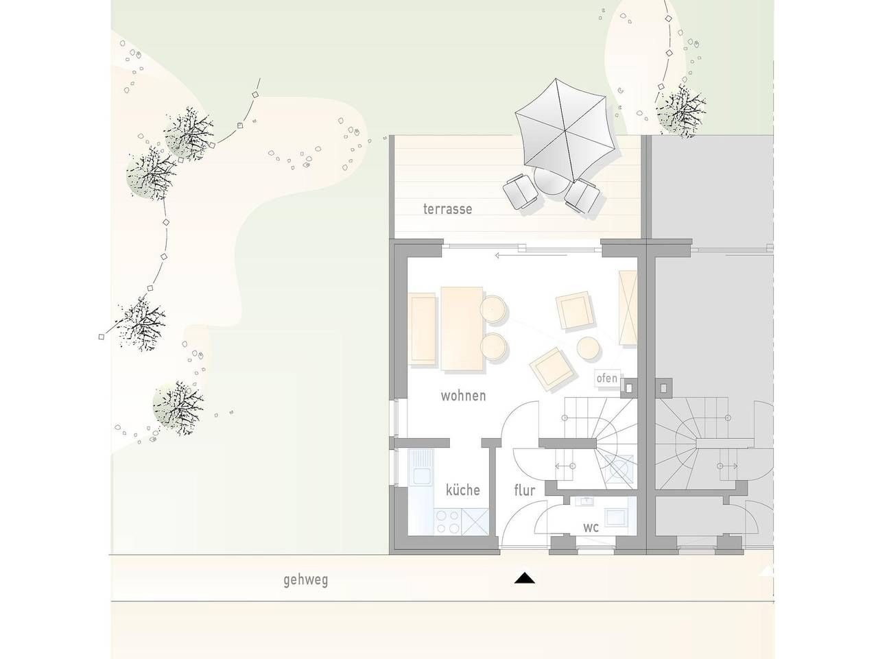 Ferienhaus über zwei Etagen, Sonnenterrasse mit großzügiger Schiebetür. Das Reihenendhaus ist 75qm groß und bietet Platz für 4 Erwachsene. Fußbodenheizung und Kamin sorgen für wohlige Wärme im Winter, im Sommer kann man...