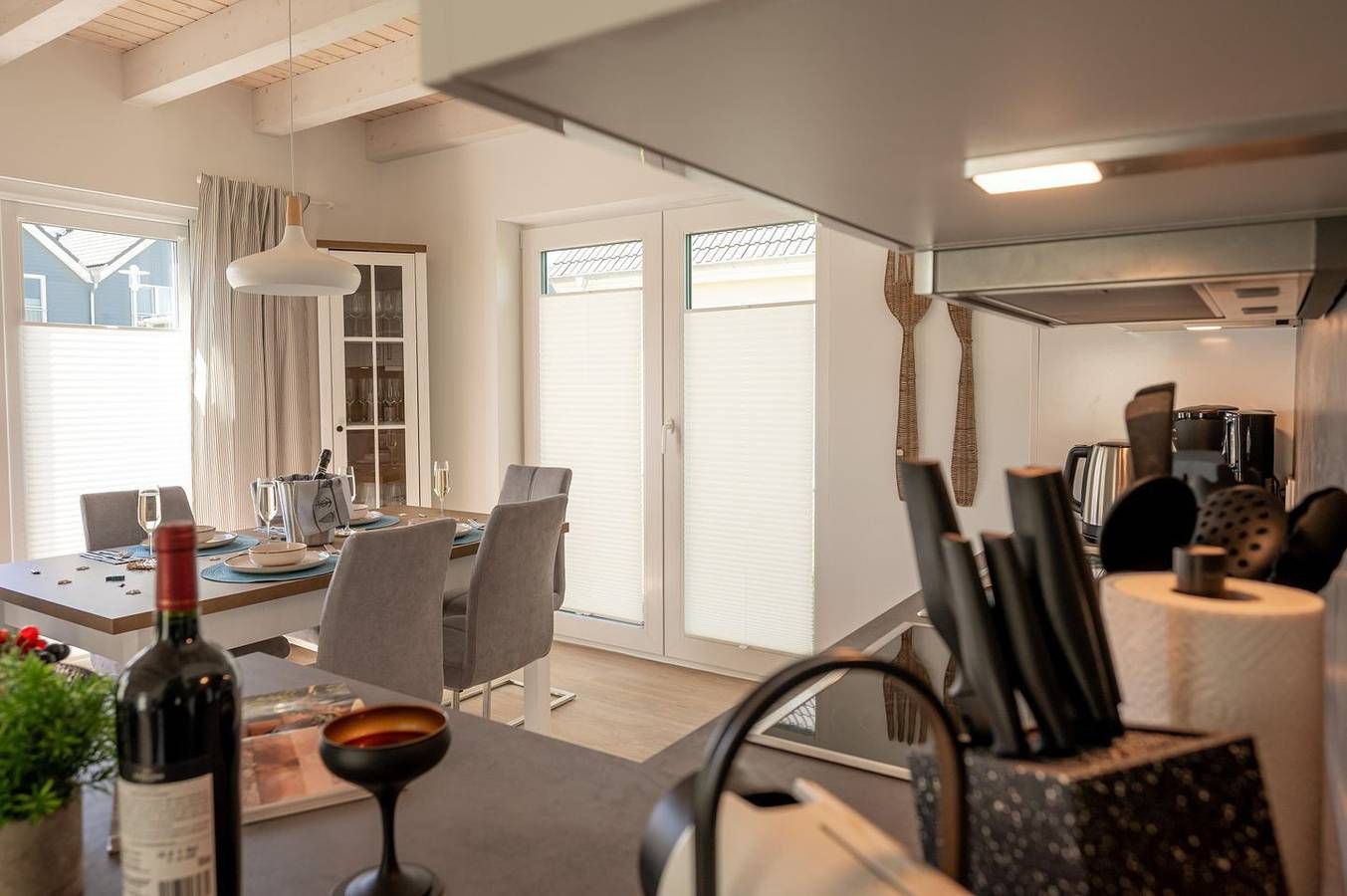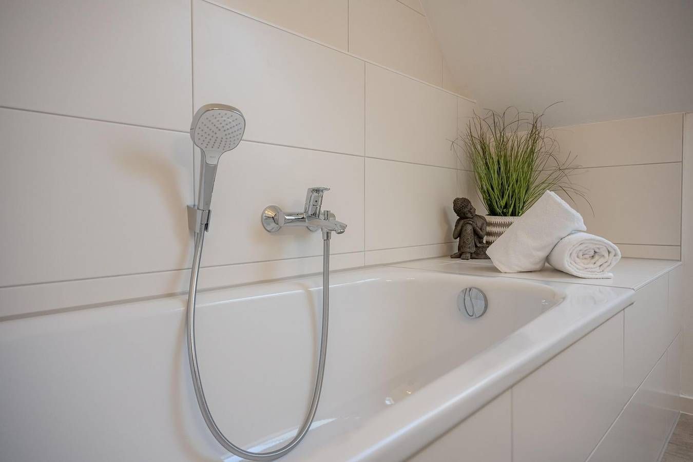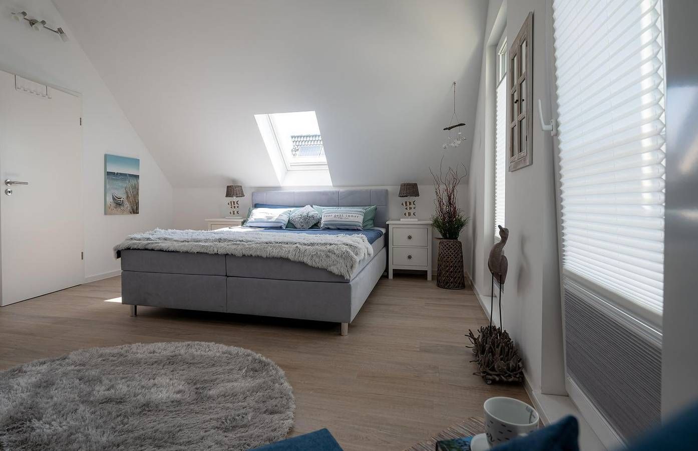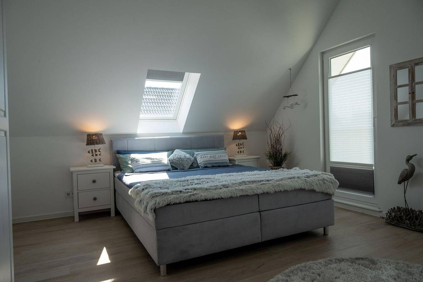 Großzügiges Ferienhaus für bis zu 7 Personen mit Kamin, Infrarot-Sauna, kostenlosem WLAN und 2 PKW-Stellplätzen direkt vor dem Haus. Das freistehende Ferienhaus Havets Lyd bietet auf ca. 107m² den perfekten Start für einen modernen Nordseeurlaub für die ganze Familie. Über zwei Etagen befinden sich insgesamt drei Schlafzimmer, zwei Badezimmer sowie eine offene Küche mit angrenzendem Wohn- und Essbereich. Das im Erdgeschoss gelegene Schlafzimmer lädt in einem Doppel-Boxspringbett (1,80 x 2,00 m ) zu einer angenehmen Nachtruhe ein. Im Obergeschoss finden Sie die zwei weiteren Schlafzimmer. Eins ausgestattet mit einem Doppel-Boxspringbett (1,80 x 2,20 m) und einem zusätzlichen Schlafsessel das Zweite mit zwei Einzel-Boxspringbetten (90 x 2,00 m ). Alle Schlafzimmer sind mit Verdunkelungsplissee's ausgestattet und die beiden Schlafzimmer im OG verfügen noch über einen Flachbild-TV. Für eine kleine Wellness-Auszeit bietet sich die Infrarot-Sauna im Badezimmer im Erdgeschoss, oder die Badewanne im Badezimmer im Obergeschoss an. Nach stürmischen Strandspaziergängen kann es sich die ganze Familie vor dem Kamin auf der großen Couch bequem machen. Die vollmöblierte Terrasse lässt sich nicht nur zum Sonnenbaden oder lieber im Schatten des Sonnenschirms, sondern auch für laue Sommerabende am modernen Elektrogrill perfekt nutzen. Ihre mitgebrachten oder ausgeliehenen Fahrräder können Sie im abschließbaren Fahrradschuppen direkt vor dem Haus unterstellen. Es stehen Ihnen zwei Parkplätze vor dem Haus zur Verfügung. Außerdem gibt es eine E-Ladesäule, die Abrechnung erfolgt direkt an der Ladestation.