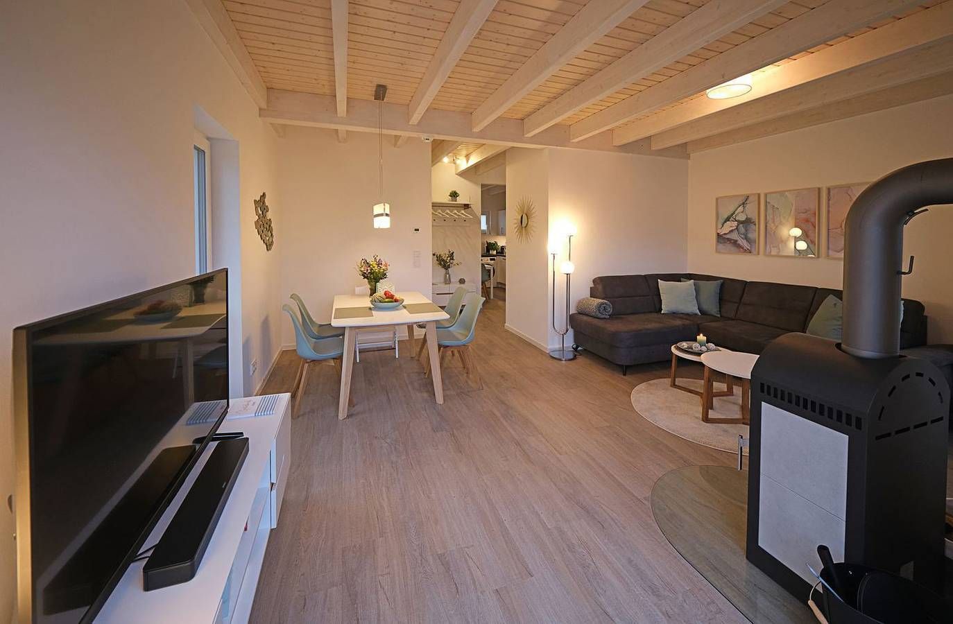 Herzlich Willkommen im Ferienhaus Hyggehus Büsum, einer charmanten Unterkunft, die Ihnen die perfekte Kombination aus Komfort und Erholung bietet. Das „Hyggehus“, mit seinen 88 m² Wohnfläche, begeistert mit einem besonderen, skandinavischen Charme. Mit seiner großzügigen Wohnfläche lädt dieses Ferienhaus dazu ein, den Alltag hinter sich zu lassen und die Seele baumeln zu lassen. Die Einrichtung des Hauses ist in einem modernen, gemütlichen Design gestaltet. Mit den bodentiefen Fenstern wird so eine hyggelige und helle Atmosphäre geschaffen. Das Wohnzimmer ist unterteilt in einen Wohn- und einen Essbereich mit „Hochstuhl“ für unsere kleinen Gäste. Es bietet einen Flatscreen-TV mit Magenta TV und ein Bose Soundsystem. Kostenloses WLAN ist selbstverständlich. Auch Gesellschaftsspiele für Groß und Klein finden Sie hier. Zwischen den Zugängen zur großzügigen Terrasse befindet sich ein Kaminofen für gemütliche Stunden an kühleren Tagen. Die Terrasse bietet mit gemütlichen Gartenmöbeln, Sonnenschirm und einem neuen Strandkorb 2025 alles, was man für die Entspannung im Freien benötigt. Mit dem Weber-Elektrogrill lässt sich schnell ein leckeres BBQ zaubern. Mit seinen Rollen kann der Strandkorb so gestellt werden, dass er auch als Sichtschutz genutzt werden kann. An die Terrasse schließt sich eine große Grünfläche an, die auch zum Spielen genutzt werden darf. Die Küche ist mit allem ausgestattet, was eine moderne Familie erwartet: Kühlschrank, Ceranfeld, Backofen, Spülmaschine, Wasserkocher, Eierkocher, Filterkaffeemaschine und eine Wasch/Trockner-Kombination lassen keine Wünsche offen. Hier können Sie in aller Ruhe Ihre Lieblingsgerichte zubereiten. Für das leibliche Wohl sorgt zudem die Nespresso-Maschine, die Sie mit frisch gebrühtem Espresso oder Kaffee verwöhnt. Ein Esstisch im Essbereich lädt zu geselligen Mahlzeiten oder Spieleabenden ein. Für Erholung und Wellness ist ebenfalls gesorgt: Die Infrarotkabine lädt nach einem erlebnisreichen Tag zum Entspannen ein. Das Hyggehus bietet zwei Bäder, im Erdgeschoss mit fast ebenerdiger Dusche und Infrarot-Wärmekabine und im ersten OG mit Badewanne und einer hochwertigen Duschabtrennung. Im Obergeschoss befinden sich zwei geschmackvoll eingerichtete Schlafzimmer, ausgestattet einmal mit einem Boxspring-Doppelbett und Flatscreen-TV. Das zweite Zimmer bietet neben einem Doppelbett auch einen gemütlichen Sessel, der zu einer Liege umgebaut werden kann. Auch in diesem Zimmer muss man nicht auf den Flatscreen verzichten. Außerdem steht ein Baby-Reisebett mit Matratze für unsere kleinen Gäste bereit. Zum Haus gehören ein kostenloser PKW-Stellplatz und ein abschließbarer Schuppen. Wäscheständer, Grill, Terrassenmöbel, Sonnenschirm und ein Bollerwagen sind hier untergebracht. Für Fahrräder und ähnliche Freizeit-Utensilien bleibt trotzdem genügend Platz. Erleben Sie unvergessliche Momente im Ferienhaus Hyggehus Büsum und gönnen Sie sich die Auszeit, die Sie verdienen. Sichern Sie sich jetzt Ihren Aufenthalt und entdecken Sie die einmalige Atmosphäre und Gastfreundschaft, die unser Ferienhaus zu bieten hat.