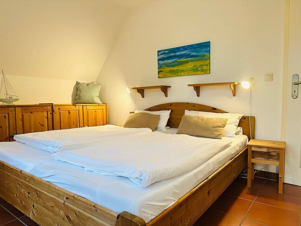 Herzlich willkommen im Ferienhaus "Kiek ut, OG, Whg.2" – einem Haus mit zwei Wohneinheiten im idyllischen Ortsteil Brösum. Der Ordinger Strand liegt in 2,5 km Entfernung, das Badzentrum ca. 3,5 km. Eine Bushaltestelle für den Nahverkehr und Rufbus ist in unmittelbarer Nähe. Die Ferienwohnung erstreckt sich über ca. 60 qm und ist freundlich im Landhausstil eingerichtet. WLAN ist vorhanden. Der Wohnbereich mit Essecke verfügt über einen Flachbildfernseher und eine Stereoanlage – perfekt für gemütliche Abende. Die separate Küche ist umfangreich ausgestattet. Drei Schlafzimmer, ein Duschbad inkl. Badewanne, ein Gäste-WC und ein Waschtrockner stehen Ihnen zur Verfügung. Beachten Sie, dass zwei der Schlafzimmer (Stehhöhe 1,70 m) über eine Raumspartreppe in der Dachspitze erreichbar sind und für Kinder ab dem Grundschulalter geeignet sind. Genießen Sie entspannte Grillabende auf der Terrasse mit Gartenmöbeln. Im Haus "Kiek ut" besteht die Möglichkeit, die Wohnung mit Wohnung 1 zu verbinden, um das gesamte Haus für große Familien zu nutzen.