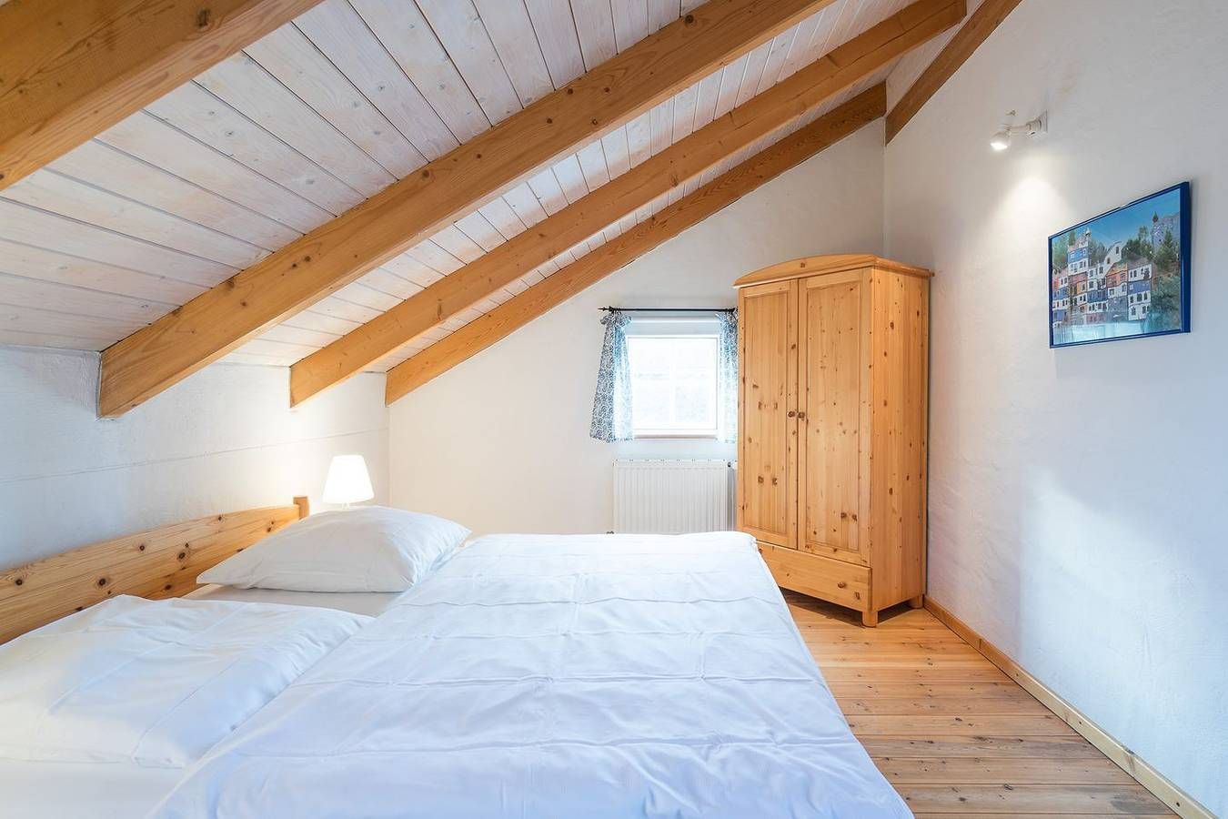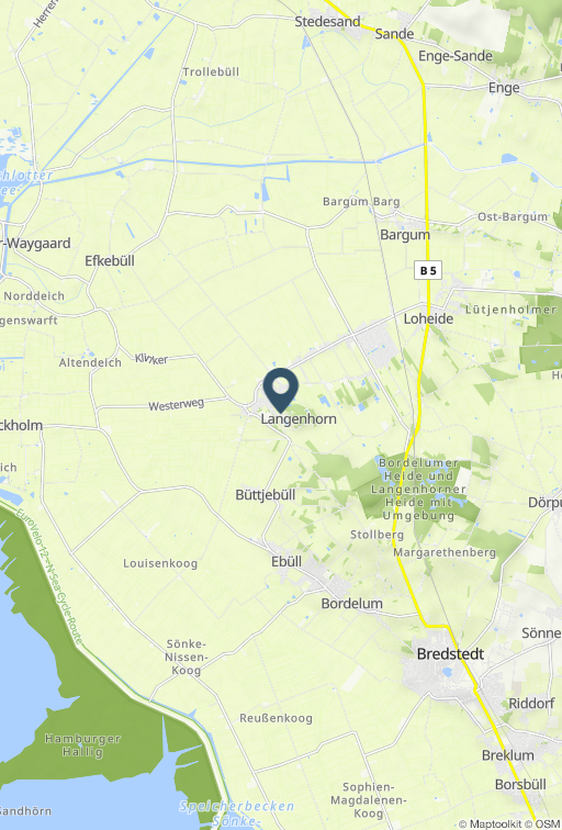 Ankommen und entspannen - erleben und genießen! Das familien- und kinderfreundliche Ferienhaus empfängt Sie mit seinem schönen Naturgarten und seiner ruhigen Lage für erholsame Ferien. Lage Das architektonisch auffällige und beeindruckende Ferienhaus ist umgeben von reizvoller Natur mit Wiesen und Baumbestand und liegt nördlich von Husum, zwischen Bredstedt und Niebüll, in Langenhorn. Langenhorn bietet Ihnen verschiedene Einkaufsmöglichkeiten für Ihre tägliche Versorgung. Auch Restaurants (À là Stazione, Bai Üs) freuen sich auf Ihren Besuch. Der Bahnhof ist ca. 4 km entfernt, von hier aus gelangen Sie bequem per Zug zur Insel Sylt. Die Nordseeküste ist nur ca. 11 km entfernt. Ausstattung Die Ferienunterkunft empfängt Sie mit einem großzügigen Wohnraum mit hohen Decken. Im Wohnzimmer können Sie es sich auch in der kalten Jahreszeit vor dem prasselndem Feuer im Kaminofen oder dem internetfähigen TV gemütlich machen. Am großen Esstisch finden Sie genügend Platz für Essen und Spiele. Die Küche ist mit allem Notwendigen eingerichtet: Herd mit Ceranfeld, Backofen, Geschirrspülmaschine, Kühlschrank mit Gefrierfach, Toaster, Kaffeemaschine (Filter) und Wasserkocher. In dem Duschbad steht eine Waschmaschine für Sie bereit. Über eine Wendeltreppe (Treppensicherung vorhanden) gelangen Sie in die beiden Schlafräume mit einem Doppelbett (180 x 200) und zwei Einzelbetten. Genießen Sie Ihr Frühstück oder Abendessen auf der schönen Terrasse mit den Gartenmöbeln. Ebenfalls stehen Ihnen Gartenliegen und ein Grill zur Verfügung. Der große Garten lädt Groß und Klein zum Spielen ein: auf dem ca. 1.800 qm großen Areal steht für die Kleinen eine Sandkiste und auch eine Schaukel bereit. Die Besonderheiten Der große, eingewachsene Naturgarten umfasst mehr als 1000 qm und bietet viel Platz zum Toben und Relaxen. Die dazugehörige Weide ist noch einmal über 3000 m² groß. Im Garten befinden sich eine Sandkiste und eine Kinderschaukel. Wir bieten unseren Gästen kostenloses W-LAN an. Direkt am Haus stehen Ihnen Parkmöglichkeiten zur Verfügung. Eine Erstausstattung an Bettwäsche und Handtüchern wird bei dieser Unterkunft obligatorisch hinzugebucht und ist bereits im Endpreis enthalten. Zusätzliche Wäschepakete können in den optionalen Leistungen hinzugebucht werden. Für unsere sportlich aktiven Gäste hier noch der Hinweis, dass sich der Golfclub "Hof Berg" im 20 Minuten entfernten Stadum befindet. Tennis können Sie vor Ort auf dem Sandplatz (500 m) spielen. Fahrräder können vor Ort gemietet werden.