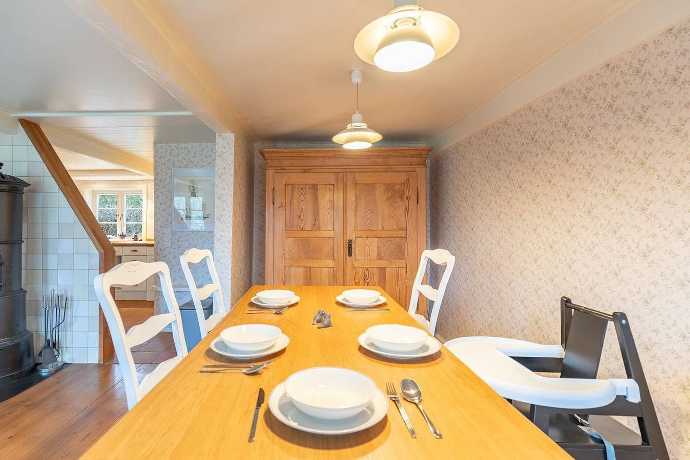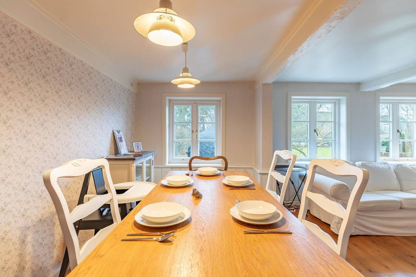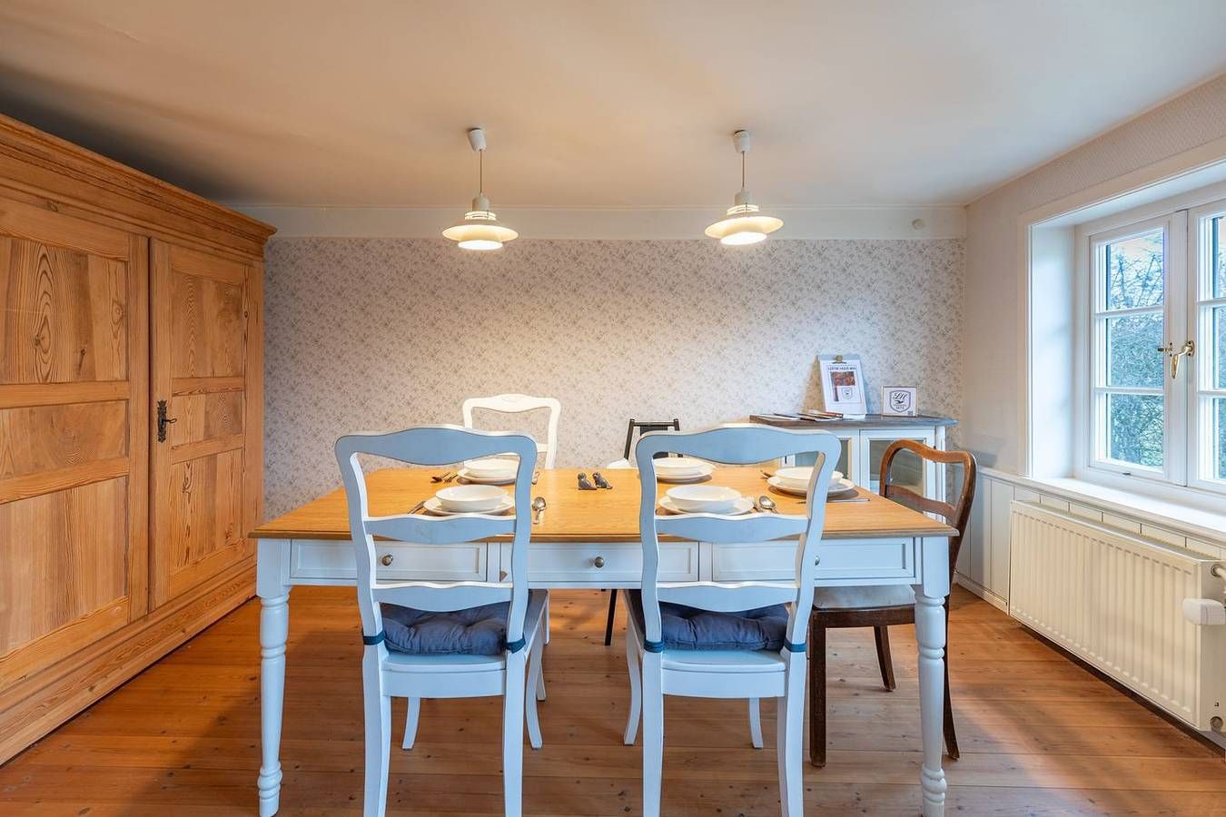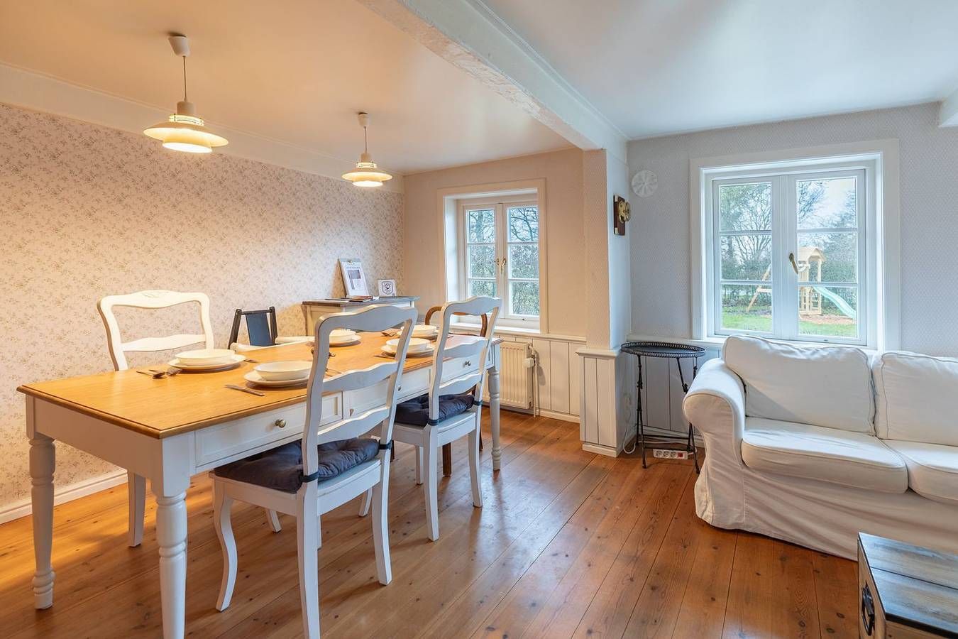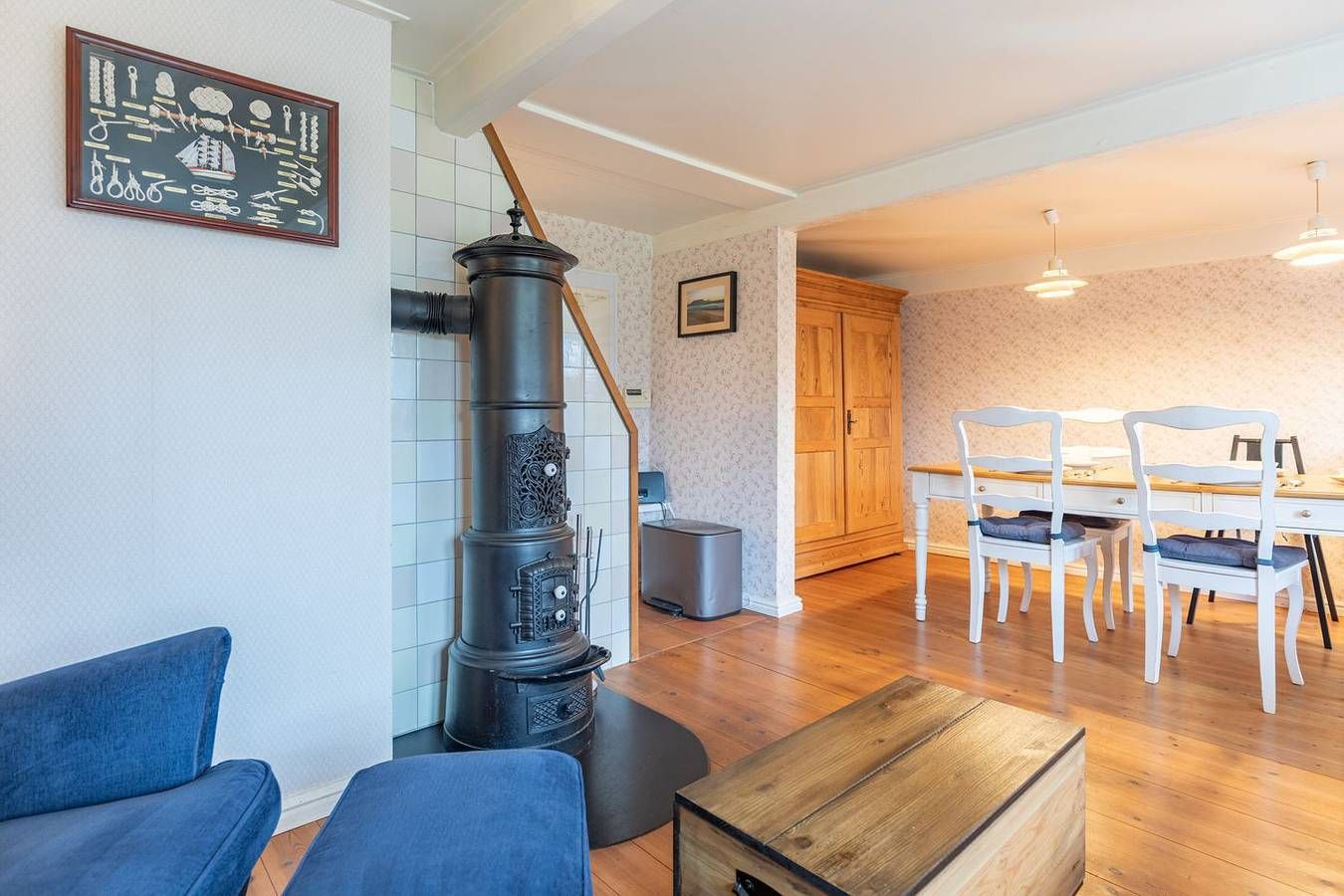 Lüttje Huus 1875 – Historisches Ferienhaus mit großem Garten in ruhiger Lage Das Lüttje Huus 1875 in Struckum ist ein freistehendes, liebevoll renoviertes Ferienhaus auf einem großzügigen, vollständig eingezäunten Grundstück von 914 m². Das ursprünglich im Jahr 1875 errichtete Haus wurde zuletzt 2013 umfassend renoviert und verbindet heute den Charme historischer Bausubstanz mit zeitgemäßem Wohnkomfort. Mit einer Wohnfläche von ca. 84 m², verteilt auf vier Zimmer, bietet das Haus ideale Voraussetzungen für Familien, Paare oder Ruhesuchende, die Privatsphäre und ländliche Idylle schätzen. Lage Das Ferienhaus befindet sich in ruhiger, ländlicher Lage im charmanten Ort Struckum und bietet einen schönen Blick in die umliegende Landschaft. Die Umgebung lädt zum Entspannen und Abschalten vom Alltag ein. Ein Restaurant ist bereits nach ca. 650 m erreichbar, die nächste Einkaufsmöglichkeit liegt etwa 3,1 km entfernt. Der Bahnhof befindet sich in rund 5 km Entfernung. Zahlreiche Ausflugsziele sowie die Badestelle Lüttmoorsiel sind bequem erreichbar. Ein Bäcker ist fußläufig vorhanden, ein Einkaufsmarkt sowie ein großes beheiztes Freibad sind in wenigen Autominuten erreichbar. Ausstattung Das Lüttje Huus 1875 bietet Platz für 4 Erwachsene sowie ein Kind. Das erste Schlafzimmer verfügt über ein ausziehbares Doppelbett (160 x 200), das zweite Schlafzimmer ist mit einem Doppelbett (180 x 200) sowie einem Etagenbett (nur für Kinder geeignet) ausgestattet. Zusätzlich stehen ein Babybett sowie ein Kinderhochstuhl zur Verfügung. Die voll ausgestattete Küche bietet hohen Komfort und umfasst u. a. Ceranfeld, Backofen, Mikrowelle, Kühlschrank mit Gefrierfach, Spülmaschine, Kaffeemaschine, Wasserkocher, Toaster, Mixer, Raclette sowie umfangreiche Küchenutensilien. Der Wohnbereich ist freundlich und gemütlich gestaltet und lädt mit Sofaecke, Sesseln und Kaminofen zu behaglichen Stunden ein. Ein Essbereich sowie ein separates angrenzendes Esszimmer bieten ausreichend Platz für gemeinsame Mahlzeiten. Zur technischen Ausstattung gehören digitaler TV-Anschluss, WLAN (mindestens 25 MBit/s), Radio sowie eine Auswahl an Büchern und Spielen. Das moderne Badezimmer verfügt über eine bodengleiche Dusche, eine Badewanne, Fenster, Waschbecken, Spiegel, WC sowie einen Haartrockner. Zusätzlich steht ein separates Gäste-WC zur Verfügung. Besonderheiten Zwei Privatparkplätze stehen direkt auf dem Grundstück zur Verfügung. Das Haus ist haustierfreundlich; maximal ein Haustier ist erlaubt. Für angenehme Temperaturen sorgt eine moderne Gasheizung mit Fußbodenheizung. Der Garten verfügt über eine Grillmöglichkeit. Eine Erstausstattung an Bettwäsche und Handtüchern wird bei dieser Unterkunft obligatorisch hinzugebucht und ist bereits im Endpreis enthalten. Zusätzliche Wäschepakete können in den optionalen Leistungen hinzugebucht werden.