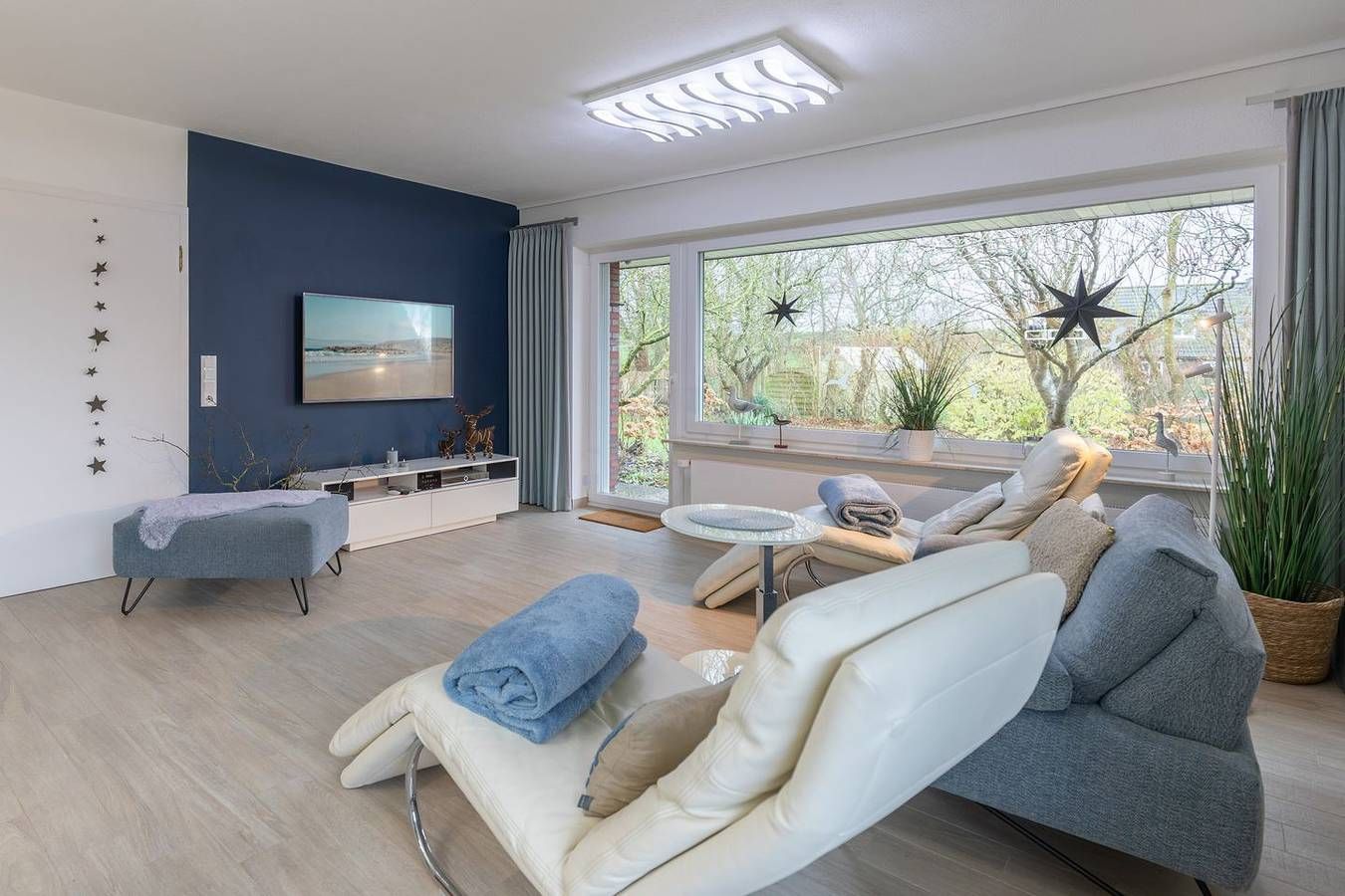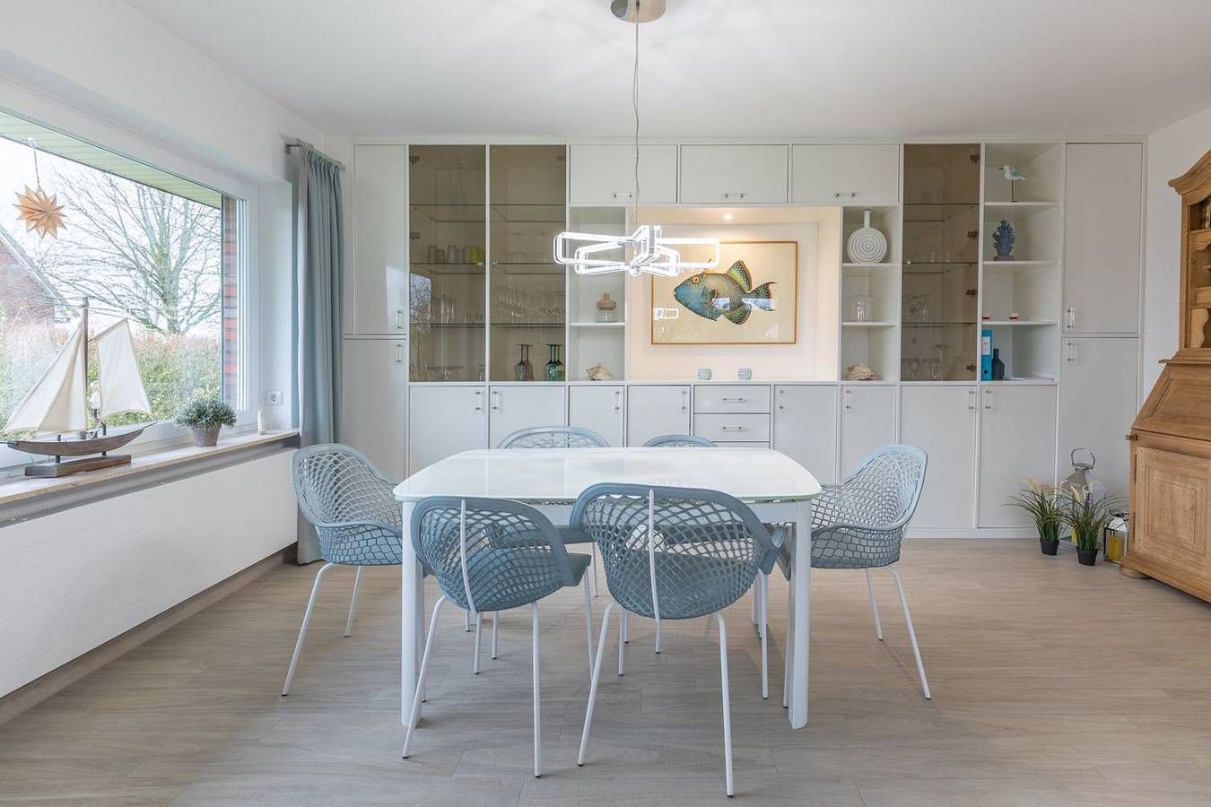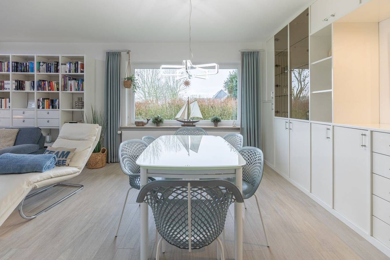 Suchen Sie die Ruhe und lieben Sie die Natur, aber auch den Luxus? Dann haben wir das Richtige für Sie: Im Ferienhaus "Noordhuus" auf Nordstrand können Sie die Seele baumeln lassen. Es bietet Platz für bis zu vier Personen. Die Lage Das modern eingerichtete Ferienhaus "Noordhuus" befindet sich in Süderhafen in zweiter Reihe hinter dem Deich. Die nächsten Einkaufsmöglichkeiten finden Sie in ca. 3 km Entfernung. Bis zum nächsten Badestrand (Fuhlehörn) sind es ca.7 km. Mit den Adler-Schiffen können Sie von Strucklahnungshörn (11 km) Ausflüge zu den Inseln und Halligen unternehmen. Die schöne Stadt Husum mit dem idyllischen Hafen und der Einkaufsmeile ist nur ca. 16 km entfernt. Die Ausflugsziele Flensburg, Schleswig oder Sankt Peter-Ording erreichen sie in knapp einer Stunde. Die Ausstattung Das Ferienhaus empfängt Sie mit einem großen Flur mit Garderobe. Von hier aus gelangen Sie in den Wohn-Essbereich mit Zugang zur geschützten Terrasse. Das Wohnzimmer ist mit einem kleinen Sofa (nicht ausklappbar) und zwei bequemen Liegestühlen ausgestattet, von denen Sie entspannt das Programm auf dem großen internetfähigen Flachbildschirm-TV verfolgen können. Auch ein Blu-ray-Player mit einer Filmauswahl ist vorhanden. Bücherfreunden steht eine große Bibliothek zur Verfügung. Die geschlossene Küche ist sehr komfortabel eingerichtet: Sitzecke, Ceranfeld, Backofen, Geschirrspülmaschine, Mikrowelle, Kühl- und Gefrierschrank, Senseo und Kaffeemaschine (Filtergröße 4). In einem Hauswirtschaftsraum stehen eine Waschmaschine und ein Trockner für Sie bereit. Das Ferienhaus verfügt über 2 Schlafzimmer, beide mit je einem Doppelbett (180 x 200 mit elektrisch verstellbaren Lattenrosten und 160 x 200) ausgestattet. Das moderne Badezimmer ist mit einer ebenerdigen Dusche, einer Sitzbadewanne, WC und Waschbecken eingerichtet. In dem großen eingewachsenen Garten (nicht eingezäunt) können Sie sich entspannen und Ihren Lieblingsplatz suchen. Vom Frühjahr bis zum Herbst stehen Ihnen Gartenmöbel und ein Grill zur Verfügung. Die Besonderheiten In unserem Nichtraucher-Haus ist Ihr Vierbeiner willkommen. Auf der großen Einfahrt können Sie bequem Ihr Auto abstellen. Die Fenster können Sie mit elektrischen Rollläden verdunkeln. Eine Erstausstattung an Bettwäsche und Handtüchern wird bei dieser Unterkunft obligatorisch hinzugebucht und ist bereits im Endpreis enthalten. Zusätzliche Wäschepakete können in den optionalen Leistungen hinzugebucht werden.