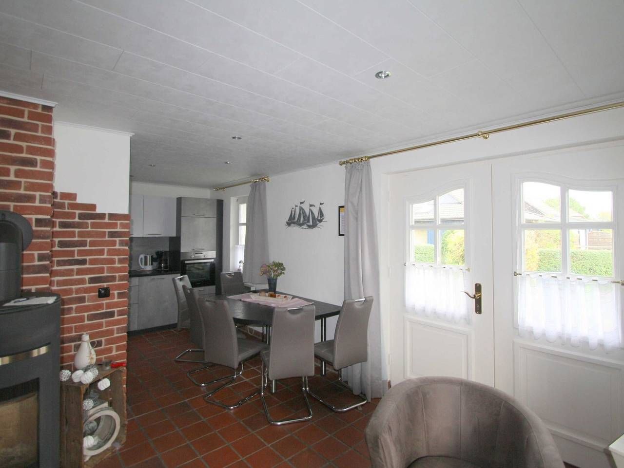 Das Grundstück des Hauses ist komplett mit einem schönen Sichtzaun umsäumt. Direkt am Haus sind zwei Stellplätze für Ihren PKW vorhanden. Aussensauna kann gegen Gebühr genutzt werden. Das Haus selber bietet Ihnen auf 90 qm ausreichend Platz für 6 Personen. Im Erdgeschoss befindet sich... ein gemütliches Einzelzimmer mit einem Einzelbett (0,9m x 2,0m), Ein Bad mit einer begehbaren Dusche und abgetrenntem WC. Küche mit gemütlicher Essecke und einem Kühlschrank . Wohnzimmer mit Sat/TV-digital und einem Kaminofen zum Wohlfühlen. Weitere Ausstattung des Hauses sind: Kühlschrank mit Gefrierschrank Geschirrspüler, Mikrowelle, Toaster, Kaffeemaschine, 4-Platten Herd mit Backofen, Wasserkocher, komplettes Koch- und Essgeschirr, Stereoanlage, elektrische Heizung, Waschmaschine und Bügeleisen mit Bügelbrett. Obergeschoss: 1 Schlafraum mit Doppelbett. ( 180 X 200cm. 1 Schlafraum mit Doppelbett mit (1,8m x 2,0m) + 1 Einzelbett 90 x 200cm . Kurtaxe ist vor Ort zu bezahlen. Je Hund einmalig 40 Euro. 2 Hunde erlaubt. Sauna gegen Gebühr.6 Euro pro Stunde Keine Vermietung an Monteure!!! Das Nordseeheilbad Friedrichskoog-Spitze im Urlaubsland Dithmarschen liegt direkt im Nationalpark Schleswig-Holsteinisches Wattenmeer. Diese wohl einzigartige Meerlandschaft wird von Ebbe und Flut bestimmt, ein faszinierendes immer wiederkehrendes Naturschauspiel, welches uns ermöglicht, ein erfrischendes Bad im Meer zu genießen und uns dann wiederum im „Wattlaufen“ zu üben. Der Badestrand direkt am Deich trägt ein grünes Kleid, geschmückt mit Strandkörben. Auch Hundefreunde finden hier einen Strandabschnitt! Vor Ort findet man von Fahrradverleih, Minigolfplatz, Kinderspielplätzen, Eisdielen, kleinen Stöber-Lädchen, Kur- und Thalassozentrum bis hin zur Gastronomie eigentlich alles, was man für einen gelungenen Urlaub noch so braucht … Die Seehundstation ist einen Besuch wert! Dort werden u. a. die sog. Heuler - kleine, von der Mutter verlassene Seehundbabys - aufgezogen. Erdgeschoß: 1 Schlafraum Einzelbett ( 90 x 200cm) Obergeschoß: 1 Schlafraum mit Doppelbett (180 x 200cm) + 1 Einzelbett (90 x 200cm)