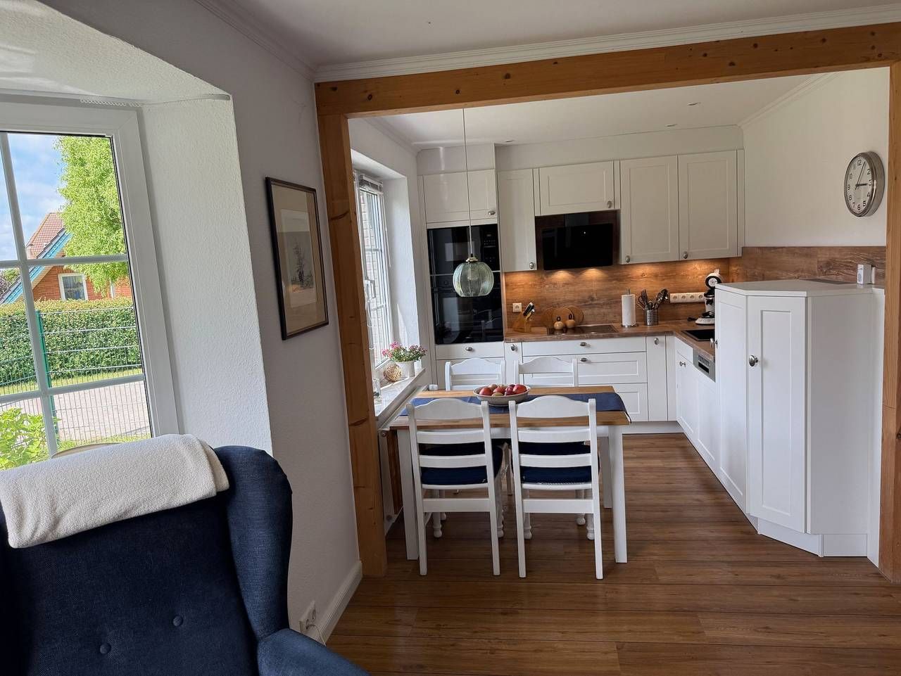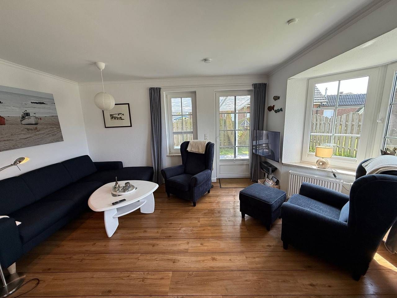 Willkommen in der Friesenkate Queller 14 – deinem gemütlichen Urlaubsdomizil mit ca. 85 m² Wohn- und Nutzfläche und Platz für die ganze Familie. Im Erdgeschoss erwartet dich ein freundliches Wohnzimmer mit Flachbild-TV und Stereoanlage, dazu ein separater Essbereich und eine bestens ausgestattete Küche mit Geschirrspüler, Backofen, Cerankochfeld, Mikrowelle sowie Kaffeemaschine, Senseo-Padmaschine, Wasserkocher und Toaster. Hier ist wirklich an alles gedacht! Außerdem findest du im Erdgeschoss ein Schlafzimmer mit Doppelbett, ein modernes Duschbad mit WC sowie eine Waschmaschine. Im Obergeschoss stehen dir ein Schlafzimmer mit zwei Einzelbetten und ein kleineres Zimmer mit einem Einzelbett zur Verfügung. Ein zusätzliches WC mit Waschbecken sorgt für extra Komfort.