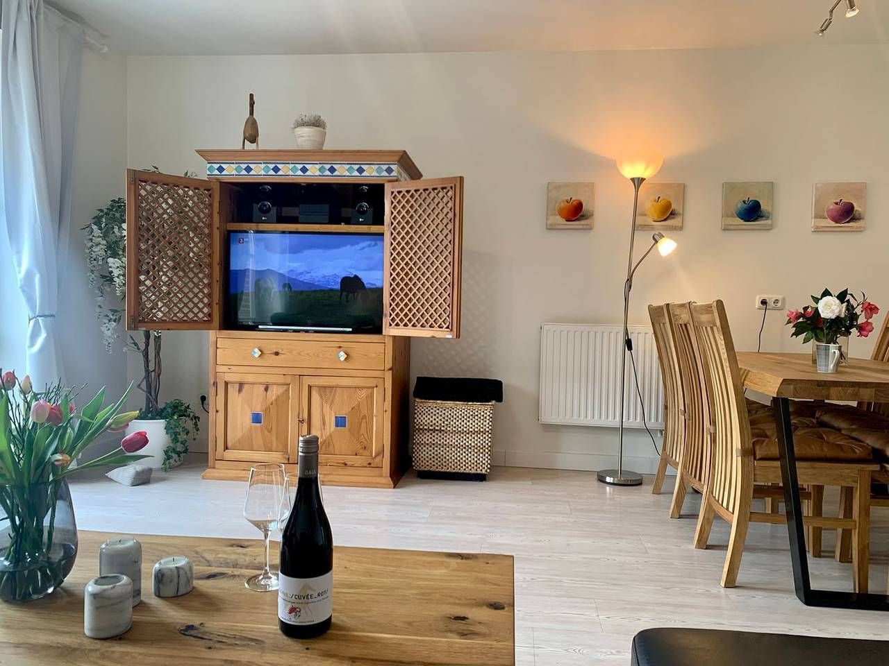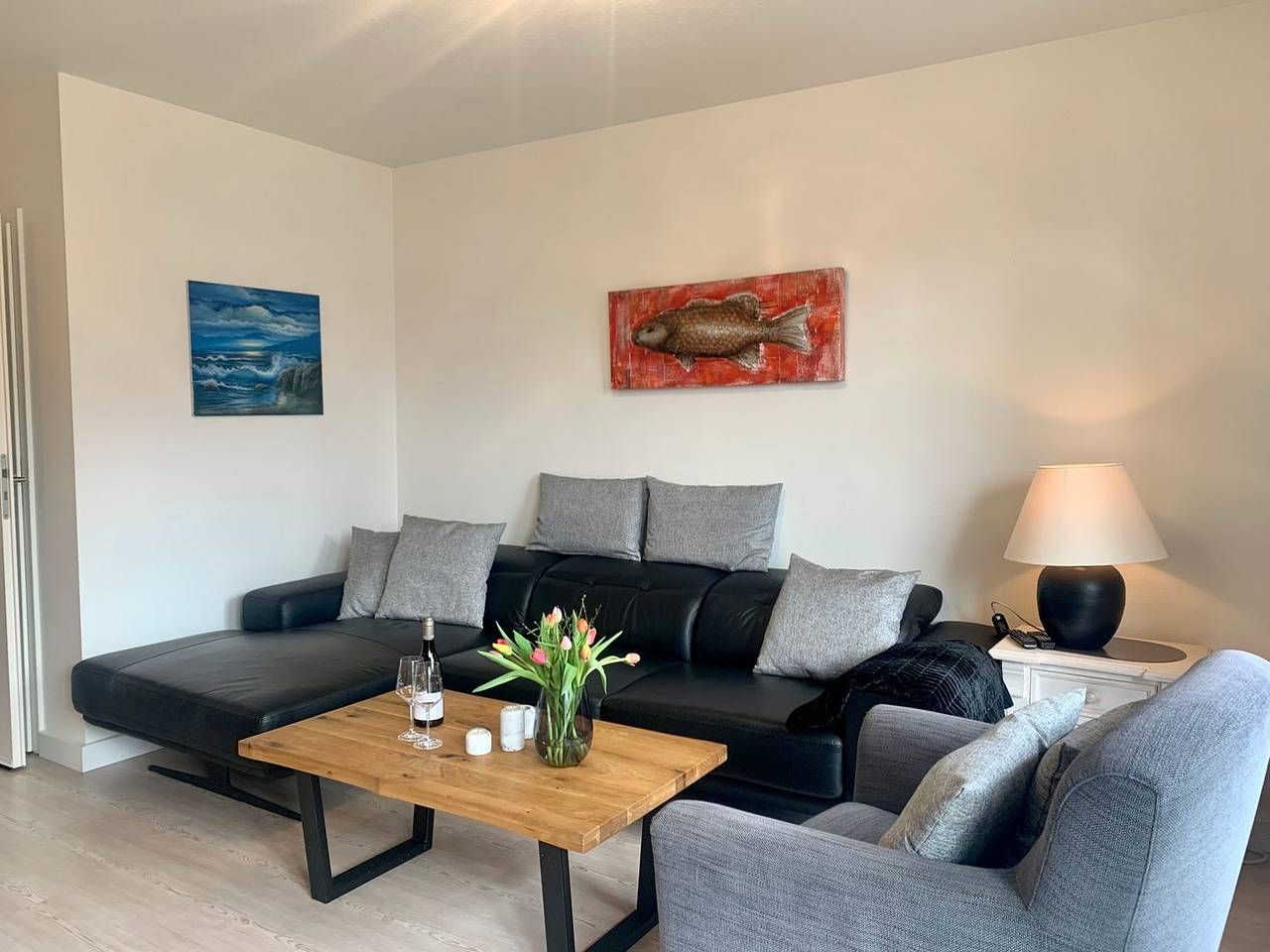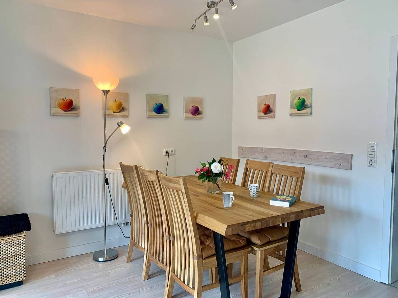 Ferienhaus "Strandkieker" in St. Peter Ording Das Haus Strandkieker (Plattdeutsch für „Strandgucker“) liegt dem Namen getreu direkt hinter dem Ordinger Seedeich - und damit in unmittelbarer Strandnähe. Drei Hausscheiben mit Terrasse, Garten und Seeblick aus der Dachloggia laden herzlich zum Urlaub in St. Peter Ording ein. Mittelhaus „Middenmang“ Bis zu 5 Personen erleben im Middenmang und der traumhaften Umgebung St. Peter Ordings einen unvergesslichen Urlaub. Perfekt auch für den Familienurlaub, Kinder sind herzlich willkommen. Auch Urlaub mit Hund in St. Peter Ording ist hier möglich. Modern, hell und offen präsentiert sich das große, ansprechend ausgestattete Wohnzimmer. Ein großer hölzerner Esstisch, die sehr komfortable Couch und ein charmanter Sessel laden zum gemeinsamen Essen, Verweilen und Genießen ein. Hier finden Smart-TV mit DVD und Blue-Ray-Player Platz. Das W-LAN steht in der strandnahen Ferienwohnung ebenfalls kostenfrei zur Verfügung. Die angrenzende, separate Küche verfügt über hochwertige Ausstattung und bietet Ceranfeld sowie Backofen und Geschirrspüler. Die Terrasse ist mit hochwertigen Holzmöbeln ausgestattet, ein Strandkorb steht in der Saison zur Nutzung bereit. Im ersten OG finden befinden sich zwei Schlafzimmer: eines mit 2 Einzelbetten, ein weiteres mit einem Einzelbett. Das Badezimmer mit Dusche sowie Waschtrockner ist ebenfalls auf der Etage. Das Dachgeschoss bietet vom dritten Schlafzimmer, ausgestattet mit Doppelbett und hochwertigen Matratzen (August 2025) auf offener Galerie, eine Dachloggia mit traumhaftem Blick auf den Ordinger Strand. Willkommen im Urlaub, willkommen in St. Peter Ording! Wichtige Informationen: Nichtraucher, 1 kleiner Hund auf Anfrage, kein Freilauf auf dem Grundstück, Parkplatz am Haus, Bügelbrett, Bügeleisen, Babyreisebett und Hochstuhl vorhanden.