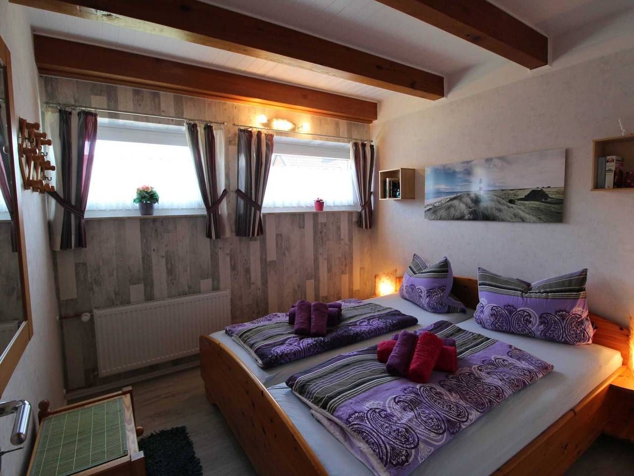 Das Ferienhaus Sandfoort besticht durch seine offene Bauweise mit Galerie im Wohnbereich. Im Erdgeschoß befindet sich der Wohnbereich mit Essecke, offener Küche (4er Ceranfeld, Backofen, Kühlschrank mit Eisfach) und Kamin. Vom Wohnbereich erfolgt der Zugang zur Terrasse. Ebenfalls im Erdgeschoß befindet sich ein Schlafzimmer sowie das Badezimmer. Der zweite Schlafraum befindet sich im Obergeschoß. Die Schlafräume sind mit einem Doppelbett, der andere mit zwei Einzelbetten ausgestattet. Bei Bedarf wird ein Kinderbett und ein Hochstuhl gestellt. Eine Waschmaschine ist ebenfalls vorhanden (ohne Gebühr). Ein Holzhaus im Garten dient als Abstellraum für mitgebrachte Fahrräder. Direkt am Nationalpark schleswig-holsteinisches Wattenmeer liegt auf einer Halbinsel Friedrichskoog nur circa 1 Autostunde nordwestlich von Hamburg entfernt. Das Nordseeheilbad Friedrichskoog liegt in ländlicher Lage zwischen Kohl- und Getreidefeldern im südlichen Teil des Kreises Dithmarschen. Im Feriengebiet Friedrichskoog-Spitze befindet sich der grüne Strand. Hier finden ganzjährig geführte Wattwanderungen und Veranstaltungen statt. Im circa 4 km entferntem Ort Friedrichskoog befinden sich die Seehundstation Friedrichskoog. Hier finden Sie auch Einkaufsmöglichkeiten und Gastronomie. Kleinere Geschäfte und Restaurants befinden sich auch in Friedrichskoog-Spitze. Das Gesundheits- und Therapiezentrum Friedrichskoog mit Thermalbad und Badearzt liegt zwischen den Ortsteilen Friedrichskoog und Friedrichskoog-Spitze. Der nächste Bahnhof befindet sich circa 23 km entfernt in Sankt Michaelisdonn und ist mit dem ÖPNV erreichbar. • Ferienhaus, Größe ca. 70qm • kombi. Wohn-/Esszimmer mit Kamin und Küchenzeile • 1 Schlafzimmer mit Doppelbett im Erdgeschoß • 1 Schlafzimmer mit getrennt stehenden Betten und Flachbild-TV im 1.OG • Bett in der Galerie im 1. OG • Dusche/WC im Erdgeschoß • Carport • überdachte Terrasse, Gartenmöbel, Strandkorb, Hängematte und Spielplatz • Holzhaus im Garten (Abstellraum) • inklusive Bettwäsche und Handtücher • Haustiere sind nicht erlaubt! • Kaution von 50€, fällig bei Anreise Kurabgabe erfolgt bei Anreise, es wird eine Kaution von 50Euro bei Anreise fällig!