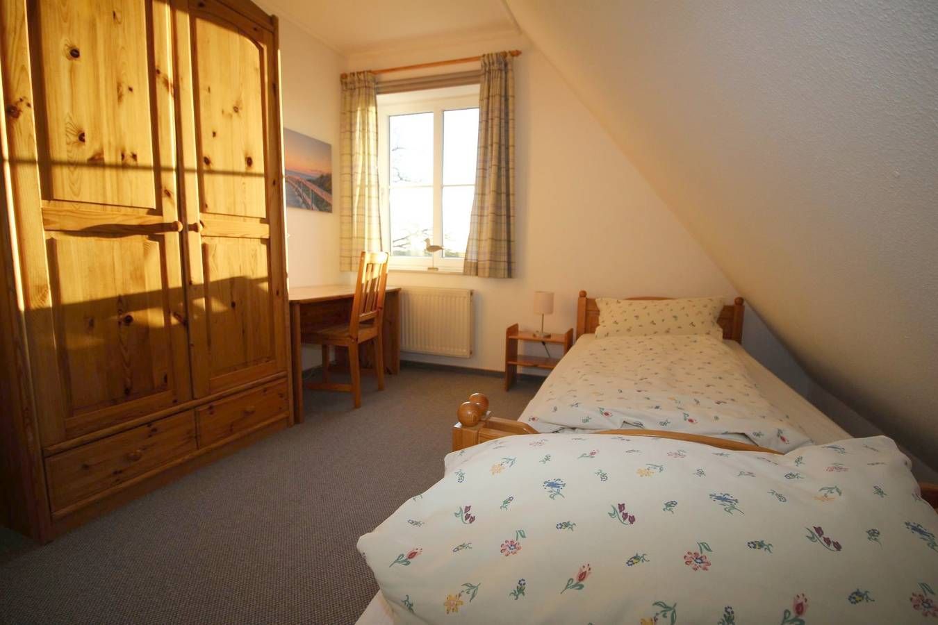Die Ferienwohnung ist 72 qm groß. Der großzügige Wohn/Essbereich mit Kaminofen ist gemütlich eingerichtet und verfügt über eine Holzbalkendecke. Sie haben aus der Ferienwohnung einen schönen Blick nach Süden und Westen. Die separate Küche mit Geschirrspüler ist komplett ausgestattet. Es befindet sich neben dem Flur ein WC/Waschbecken. Im 1. Stock liegen ein Schlafzimmer mit nebeneinander stehenden Betten und 1 Schlafzimmer mit hintereinander stehenden Betten, jeweils unter einer Dachschräge. Ebenso liegt das Badezimmer mit Dusche/WC und einer Waschmaschine im Obergeschoss. Die Ferienwohnung in einer Doppelhaushälfte befindet sich in idyllischer Einzelhoflage neben einem alten reetgedeckten Bauernhaus mit schönem Garten am Rande von Friedrichstadt. Schöner Blick bis zum Eiderdeich über Wiesen mit Rindern und Schafen. -Nebenerwerbslandwirtschaft- Kurze Wege zum Bahnhof, Bäcker und Supermarkt. Entfernung Friedrichstadt Zentrum: ca. 1 km. Bettwäsche und Handtücher inclusive. Haustiere gegen Gebühr willkommen. Check In: 15:00 Uhr Check Out: 10:00 Uhr