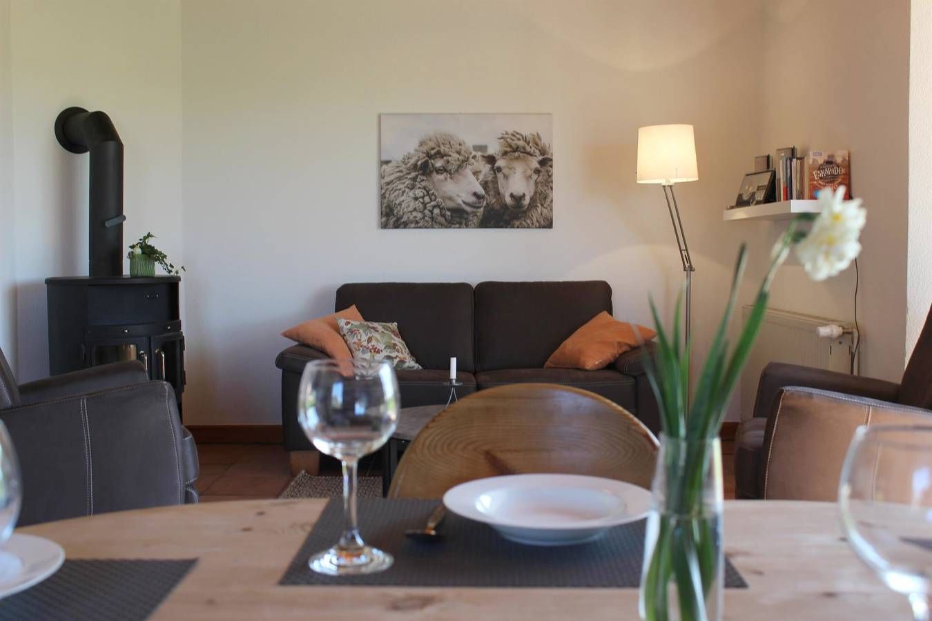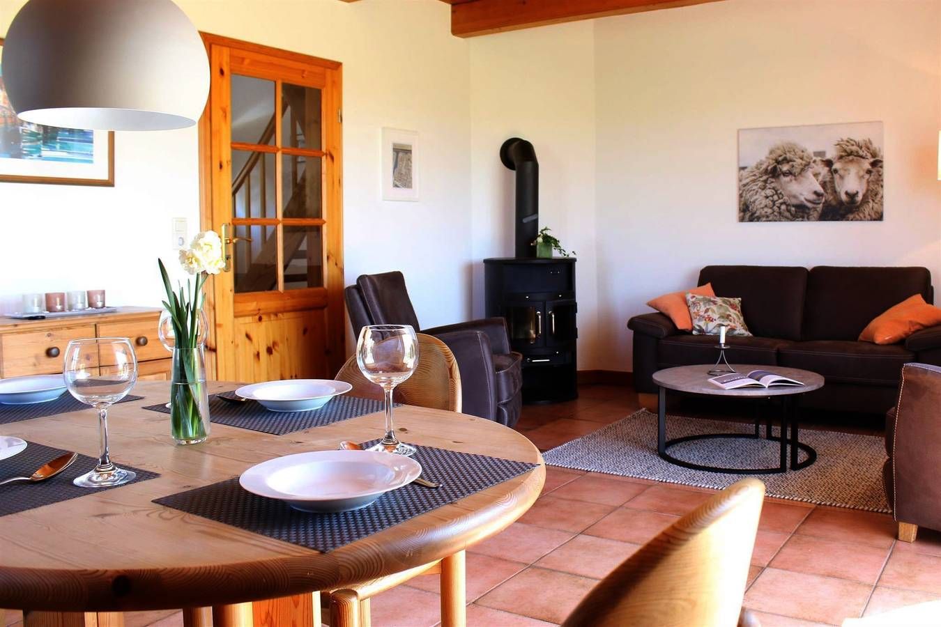 Die Ferienwohnung ist 72 qm groß. Der großzügige Wohn/Essbereich mit Kaminofen ist gemütlich eingerichtet und verfügt über eine Holzbalkendecke. Sie haben aus der Ferienwohnung einen schönen Blick nach Süden und Westen....