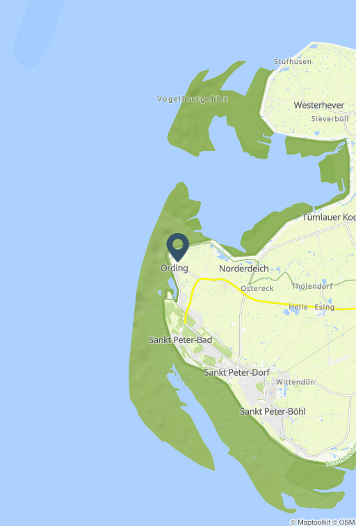 Das luxuriöse Ferienhaus mit Garten und gemütlicher Terrasse und traumhaften Blick über die Wiesen befindet sich in einer ruhigen Parallelstraße zum Strand im Ortsteil Ording. Die Lage Das luxuriöse Ferienhaus mit Garten und gemütlicher Terrasse und traumhaften Blick über die Wiesen befindet sich in einer ruhigen Parallelstraße zum Strand im Ortsteil Ording. Den riesigen Hauptstrand in Ording-Nord erreichen Sie in wenigen Minuten zu Fuß. Die Promenade von St. Peter-Ording mit seiner neuen Dünen-Therme und der Seebrücke erreichen Sie in ca. 20 Minuten oder 5 Minuten mit dem Auto. Das Haus verfügt über ca. 100m² Wohnfläche und teilt sich wie folgt auf: Im Erdgeschoss befindet sich der Wohnraum mit einer großzügigen offenen Wohnküche und einem gemütlichen Essbereich. Die Küche ist voll ausgestattet mit hochwertigen Geräten und edlem Geschirr von Villeroy & Boch. Im Erdgeschoss ist ebenso ein großer Flur mit eingebauter Garderobe, ein Hauswirtschaftsraum und ein Duschbad. Über eine Holztreppe gelangt man in das Obergeschoss mit zwei großzügigen Schlafzimmern, einem Vollbad mit Dusche und Badewanne. Über eine weitere Holztreppe geht es vom Flur ins Dachgeschoss mit gemütlichen 2 Einzelbetten. Mit viel Liebe zum Detail wurde großen Wert auf die Inneneinrichtung gelegt. Das ganze Haus verfügt über große Fenster und somit ist jeder Raum herrlich lichtdurchflutet.