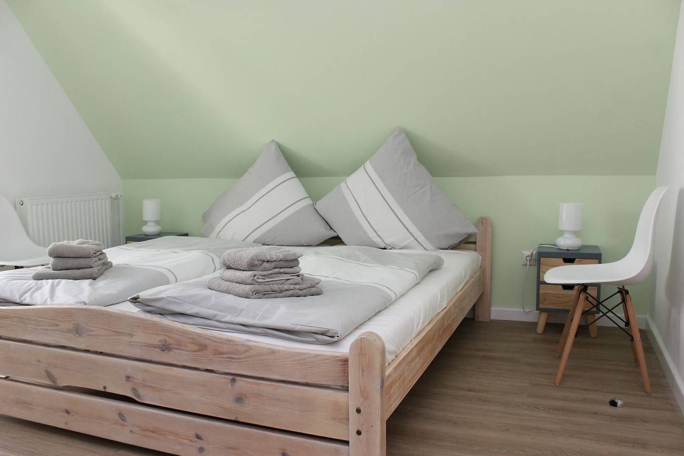 Ferienwohnung 2 Die 45m² große 2-Zimmer Ferienwohnung liegt im ersten OG und bietet 2 Personen Platz für einen wunderbaren Urlaub in St. Peter Ording. Auch Urlaub mit Hund in St. Peter Ording ist hier möglich, bis zu 2 Hunde begleiten die Familie in den Urlaub an der Nordsee. Zur Ferienwohnung gehört ein großer, lichtdurchfluteter Wintergarten. 2024 wurde das Haus energetisch umgerüstet. Zahlreiche Fenster wurden ausgetauscht, eine neue Wärmepumnpe eingebaut und Solarpaneele auf dem neuen Dach platziert. Der Wohnraum ist modern und hell gestaltet, er ist ausgestattet mit gemütlicher 120x200cm Schlafcouch, einer kleinen Essecke sowie einem Flachbild-TV. Kostenfreies W-LAN ist vorhanden. Die anliegende Küchenzeile ist gut ausgestattet und verfügt über ein kompaktes Cerankochfeld, Kühlschrank, Geschirrspüler und Kaffeemaschine. Das separate Schlafzimmer verfügt über ein großzügiges 180x200cm Doppelbett. Die Ferienwohnung ist ausgestattet mit Duschbad und WC. Willkommen im Urlaub, willkommen in St. Peter Ording! Wichtige Informationen: Nichtraucher, bis zu zwei Hunde willkommen, Gemeinschaftsgarten, familienfreundlich, kinderfreundlich, hundefreundlich. Parkplatz auf dem Gelände.