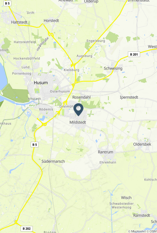 Informationen zum Gastgeber Willkommen in der Ferienwohnung "Ferienhus #2 Nordfriesland". Die Ferienwohnung liegt mit dem Objekt "Ferienhus #1 in Nordfriesland" im gleichen Haus in einem mehr als 100 Jahren alten Häuschen. Die beiden kleinen und modernen Ferienwohnungen liegen in einer sehr ruhigen Seitenstraße in Mildstedt. Eine Einkaufsmöglichkeit und eine Bäckerei sind ca. 350 m entfernt. Die Badestelle Husumer Dockkoog mit Strandkörben ist in ca. 7 km erreichbar. Die Messe Husum & Congress ist in ca. 10 Fahrminuten erreichbar. Weitere Angaben: PKW-Stellplatz für jede Ferienwohnung, Fahrradabstellplatz abschließbar, keine Haustiere, W-LAN. DTV-Klassifizierung nicht teilgenommen. Anreisebeschreibung Das Ferienhus #2 Nordfriesland erreichen Sie mit dem HusumBus - Linie 5 ab dem zentralen Busbahnhof (ZOB). Die nächste Bushaltestelle "Mildstedt, Am Ehrenhain" befindet sich ca. 350 m von der Unterkunft entfernt. Beschreibung. Die Ferienwohnung "Ferienhus #2 Nordfriesland" liegt im 1. Obergeschoß des Hauses ist ca. 30 m2 groß und bietet Platz für 2 Personen. Der Eingangsbereich und die Garderobe werden gemeinschaftlich mit der Ferienwohnung im Erdgeschoß genutzt. Über eine schmale steile Treppe gelangen Sie direkt in den offenen Küchenbereich. Der Küchenbereich ist mit 2-Induktionsherdplatten, einem Kühlschrank, einem Toaster, einem Wasserkocher, einer French-Press-Kaffeemaschine sowie einem Esstisch ausgestattet. Von diesem Raum geht es weiter in das Schlafzimmer mit einem Doppelbett (1,60 x 2,00 m - ohne Fußende) und TV-Gerät (Smart-TV mit Netflix-Account und ohne Privatsender). Das Badezimmer verfügt über eine Dusche und ein WC. Auf Anfrage wird ein Kinderreisebett, ein Hochstuhl sowie Kinderspielzeug bereitgestellt werden. Hinweis: Die Treppe ist nicht durch ein Schutzgitter gesichert. Weitere Angaben: Bettwäsche, Handtücher, Endreinigung und W-LAN sind im Preis inklusive.