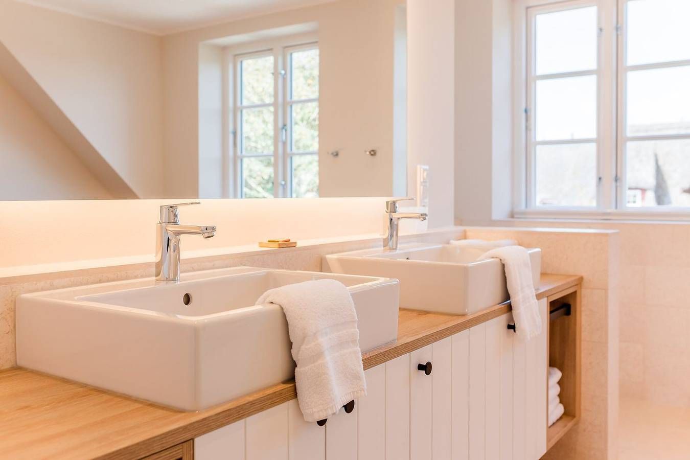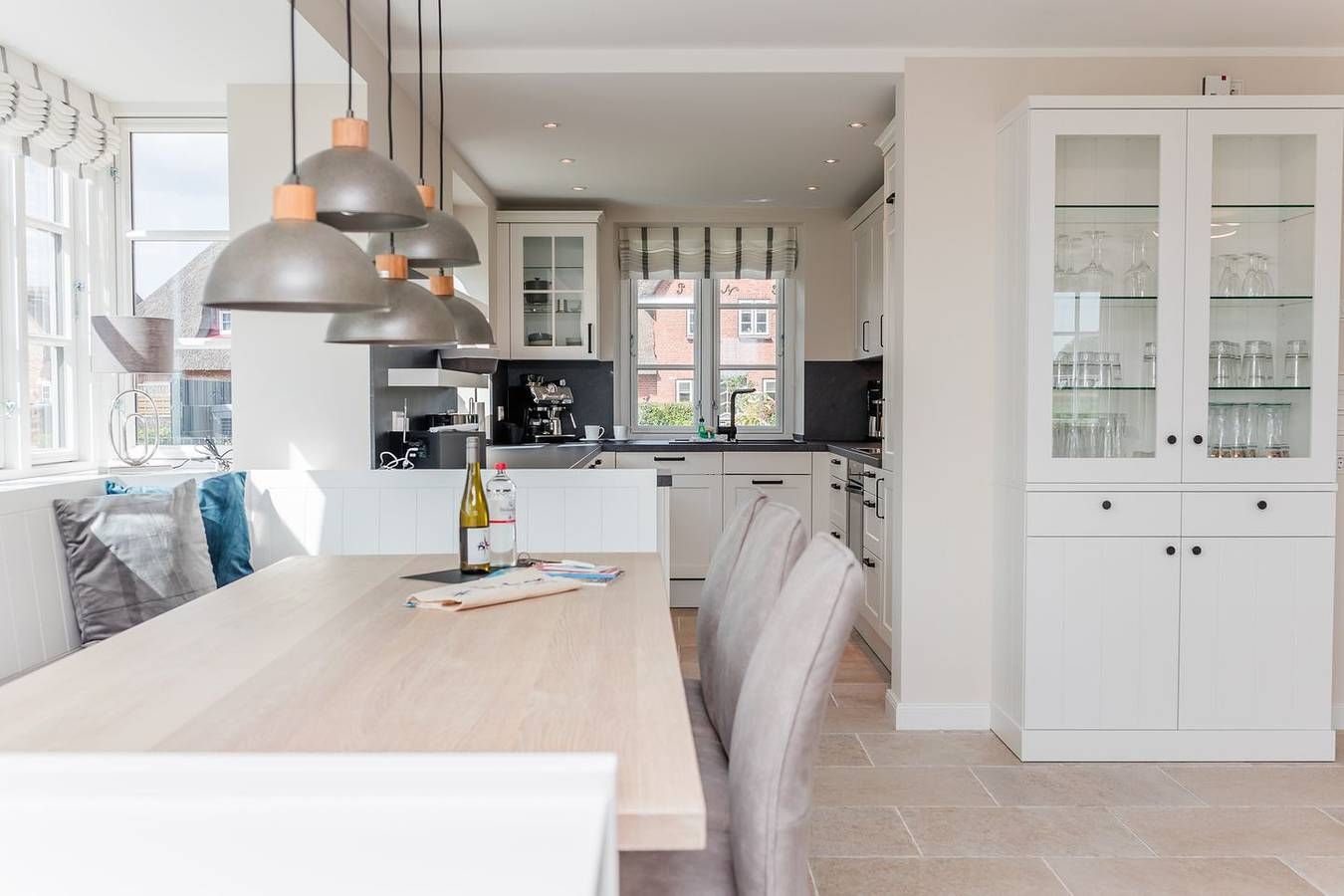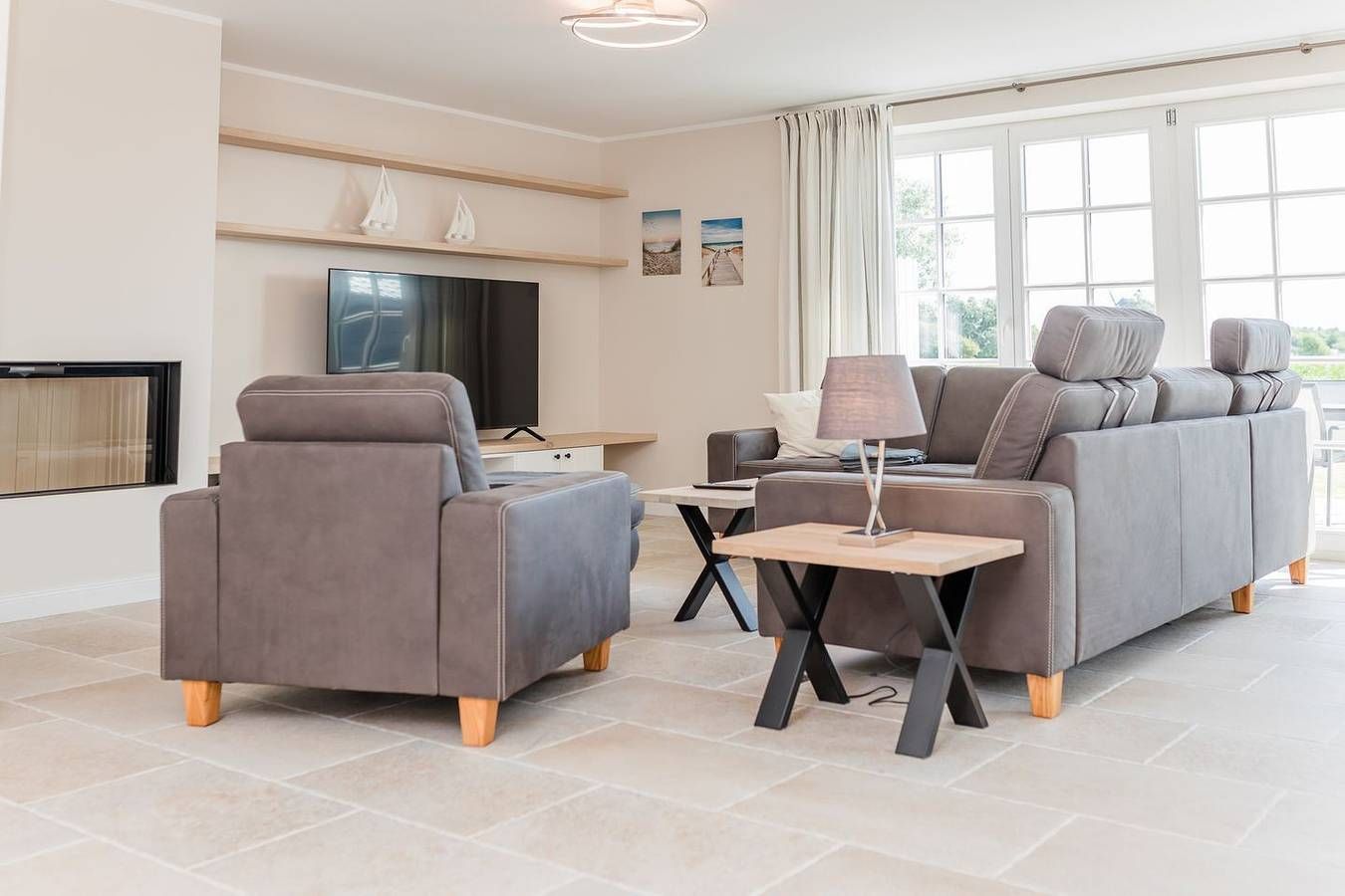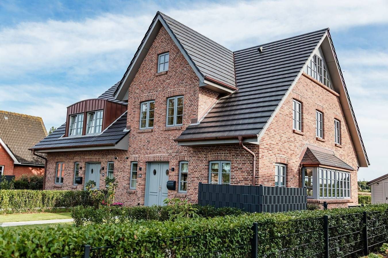 Die Doppelhaushälfte Utblick verfügt über 3 Schlafzimmer, 2 Bäder und 1 Gäste-WC und bietet somit komfortabel Platz für bis zu 6 Personen zuzüglich einer Kleinkinderaufbettung. Zu den Highlights der Ferienunterkunft zählen wir u. a. den Kamin, den weitläufigen Blick sowie die südwestlich ausgerichtete Terrasse im eigenen Garten. Im Erdgeschoss befinden sich der großzügige Wohn und Essbereich mit offener Küche sowie ein Gäste-WC. Über den Wohnbereich gelangen Sie direkt auf die eigene Terrasse und in den Garten. Der Kamin sorgt auch an kühleren Abenden für eine angenehme Atmosphäre. Im Obergeschoss sind zwei Schlafzimmer - beide mit je einem Doppelbett und einem Smart-TV ausgestattet -, sowie zwei Duschbäder. In einem der Bäder stehen Ihnen eine Waschmaschine und ein Trockner zur Verfügung. Das Dachgeschoss stellt ein Highlight der Unterkunft dar. Es ist als großzügiges drittes Schlafzimmer eingerichtet und bietet über die große Fensterfront einen herrlichen Blick über Felder bis zur Nordsee. Genießen Sie ein paar schöne Sonnenstunden auf der Südwestterrasse oder im großen Garten! Der Garten ist zu 3 Seiten mit einer Hecke bepflanzt. Ein eigener Stellplatz für einen großen oder zwei kleine PKW sowie eine E-Auto-Ladestation runden das Angebot ab. Die Ferienunterkunft liegt unweit der Borgsumer Mühle; Bäcker, Restaurant und Café sind fußläufig erreichbar. Die Freizeitangebote befinden sich alle in unmittelbarer Umgebung des Objektes. Ein äußerst angenehmer Aufenthalt für unsere Gäste und somit die sorgfältige Reinigung der uns anvertrauten Ferienunterkünfte ist unser höchstes Gebot. Damit wir diesem gerecht werden, weist jede unserer Ferienimmobilien in den Monaten Mai bis einschließlich Oktober einen festgelegten An- und Abreisetag auf. Weitere Infos finden Sie auf unserer Homepage! Für das Jahr 2025 gilt: Mind. 7 Übernachtungstage: Juli - August, Weihnachten und Jahreswechsel Mind. 5 Übernachtungstage: September - Juni Mind. 2 Übernachtungstage: November - März Ab 2026 gilt: Fester An- und Abreisetag Juli - August: Dienstag Feste An- und Abreisetage Mai - Oktober: Montag - Freitag Mind. 7 Übernachtungstage: April - Oktober, Weihnachten und Jahreswechsel Mind. 2 Übernachtungstage: November - März