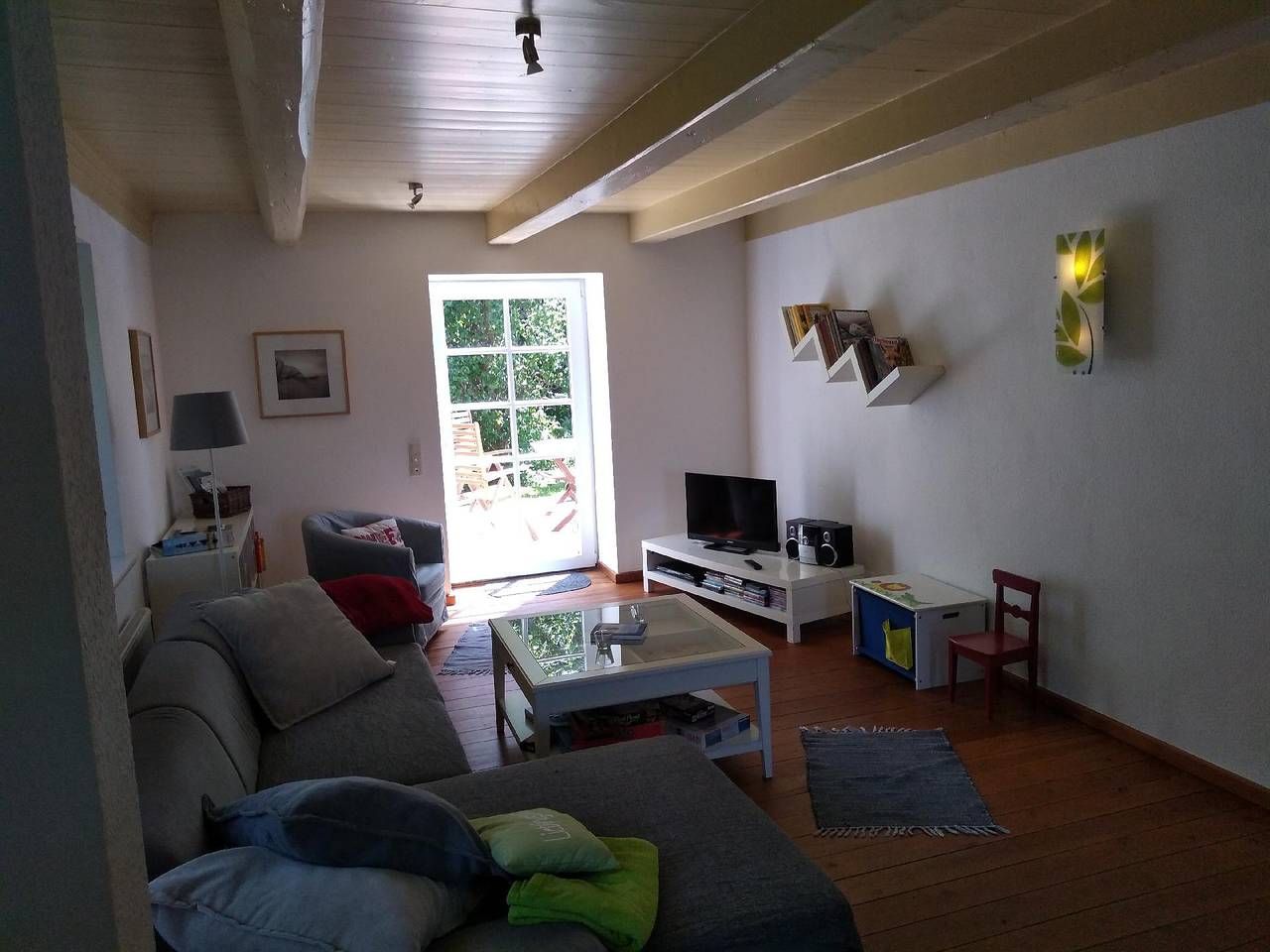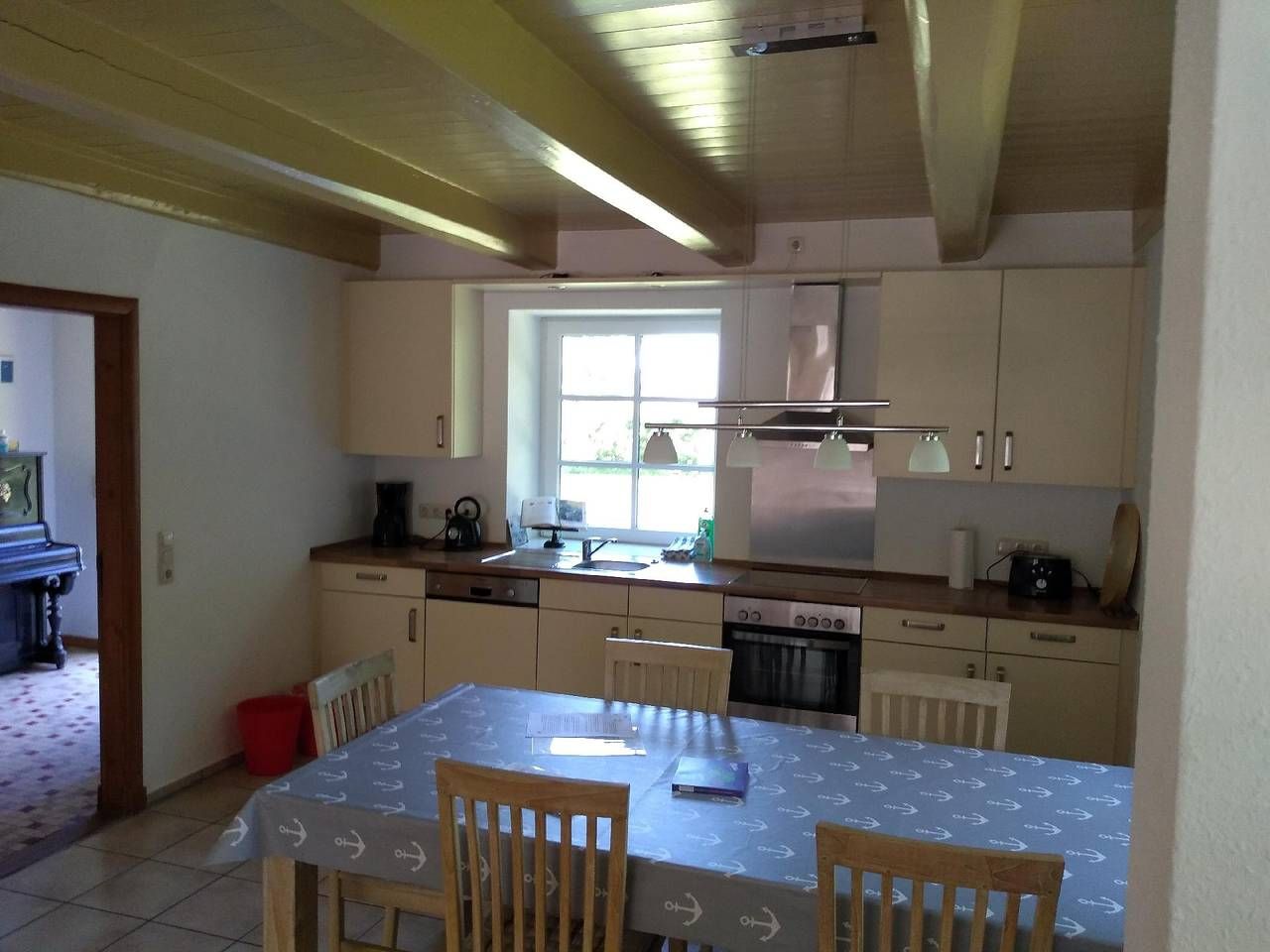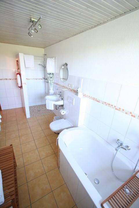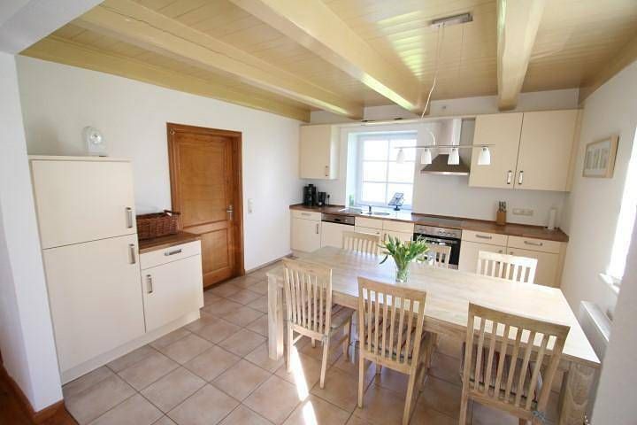 Wo Urlaub das ganze Jahr Freude und Erholung bringt! Erdgeschosswohnung (120m²): Auf unserem Resthof in absoluter Alleinlage haben wir 2009 unsere beiden Ferienwohnungen (Objekt Nr. 434267 im Erdgeschoss sowie Objekt Nr. 438640 im Obergeschoss) komplett neu ausgebaut. Beide Wohnungen wurden vom Deutschen Tourismusverband mit 4**** ausgezeichnet. Sie bieten ausreichend Platz für je bis zu 6 Erwachsene und 2 Kinder und können für gemeinsamen Urlaub mit Freunden oder der ganzen Familie zusammen gemietet werden. Die Wohnküche ist mit einem Geschirrspüler, Kühlschrank mit Gefrierfach, Toaster, Kaffeemaschine, Herd mit Ceranfeld, Umluftbackofen und Wasserkocher ausgestattet und bietet genügend Platz zum Sitzen und Klönen.Der Wohnraum verfügt über ein ausziehbares großes Sofa, Sessel, HiFi Anlage, SAT-TV, DVD-Player sowie eine große Auswahl an Spielen und Büchern für alle Altersklassen.Die drei Schlafzimmer verfügen über je ein Doppelbett (1,80m x 2m), Kleiderschränke und Radiowecker. Auf Anfrage können wir ein zusätzliches Bett bereit stellen, sowie bis zu zwei Gitterbetten. Wir bieten Ihnen kostenfreie Babybetten und Hochstühle.Beide Bäder verfügen über Dusche und Badewanne.Gartenmöbel sind für beide Wohnungen in ausreichender Zahl vorhanden. Außerdem bieten wir Ihnen ohne Gebühr einen Grill, Sandkisten, Schaukel, Rutsche, Fußballtor, Basketballkorb. In unserer Spielscheune finden Sie eine Sandkiste, Tischtennisplatte, Tischfußball, Dart. Waschmaschine und Trockner können gegen eine geringe Gebühr genutzt werden. Die hochwertige Ausstattung lässt keine Wünsche übrig: Allgemein: Badezimmer: 2; Baujahr: 1940; Freistehendes Gebäude; Grundstücksfläche: 3000 qm; Renovierungsjahr: 2009; Schlafzimmer: 3 Schlafmöglichkeiten: Anzahl Doppelbetten (1,80m Breite): 3 Wohnen: Bügeleisen; CD-Player; DVD-Player; Musikanlage; Radio; Satelliten-TV Bad/WC: Badewanne; Badewanne; Badewanne; Dusche; Dusche; Dusche; Föhn; Föhn; Toilette; Toilette; Toilette; Waschbecken; Waschbecken Kochen: Backofen; Gefrierfach; Herd; Kaffeemaschine; Kühlschrank; Spülmaschine; Toaster; Wasserkocher Sonstiges: Haustier erlaubt: max. 1; Kinder-/ Babybett; Kinderstuhl; Staubsauger; Wäschetrockner gemeinschaftliche Nutzung; Waschmaschine; W-Lan