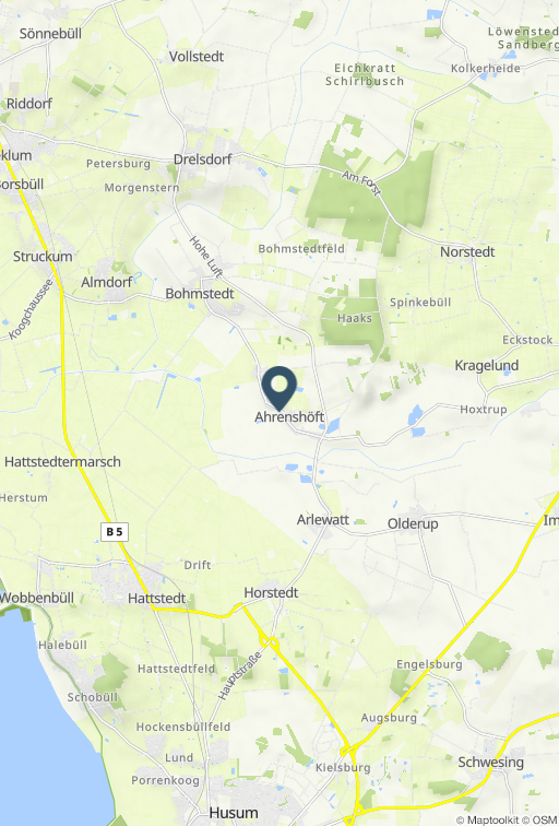 Informationen zum Gastgeber Die Ferienwohnung Wischnewski mit freiem Blick über die Landschaft liegt in einem alleinstehenden Einfamilienhaus in in ruhiger und ländlicher Umgebung nordöstlich von Husum im Ort Ahrenshöft. Die Husumer Innenstadt mit Hafen, Markt, Einkaufsmöglichkeiten und Bahnhof ist ca. 10 km entfernt. In Ahrenshöft finden Sie Ruhe und Erholung und ist ein guter Ausgangspunktl für Fahrradtouren. Das nächste Restaurant erreichen Sie nach ca. 200 m. Es gibt Schafe, Galloways und Rinder. Weitere Angaben: DTV-Klassifizierung nicht teilgenommen. PKW-Stellplatz, Kinderspielplatz, Möglichkeiten für Moped- und Motorradfahren/touren, Liegewiese und Terrasse mit Grillplatz, Abstellmöglichkeiten für Fahrräder, keine Haustiere, Nichtraucher. Bitte keine Buchungen von Firmen, sondern nur von Urlaubsgästen. Konditionen/Extras Bitte keine Buchungen von Firmen, sondern nur von Urlaubsgästen. Anreisebeschreibung Die Ferienwohnung Wischnewski erreichen Sie mit dem regionalen Busverkehr - Linie 1031 ab dem zentralen Busbahnhof (ZOB). Die nächste Bushaltestelle "Ahrenshöft Groß Ahrenshöft" ist ca. 300 m von der Ferienwohnung entfernt. Beschreibung. Die gemütlich eingerichtete Ferienwohnung ist ca. 43 m2, liegt im 1. Obergeschoß des Einfamilienhauses und bietet Platz für 2 Personen. Die Wohnung ist aufgeteilt in einen kombinierten Wohn-/Schlafraum mit kleiner Küchenzeile, einem Schlafraum und Badezimmer. Der kombinierte Wohn-/Schlafbereich ist eingerichtet mit einer Couchgarnitur, einem TV-Gerät und einer Stereo-Anlage. Der Schlafbereich ist mit einem Doppelbett (1,80 m x 2,00 m) eingerichtet. Die offene Küchenzeile hat 2-Cerankochfelder, einen Backofen, Mikrowelle, Kühlschrank mit Gefrierfach, Kaffeemaschine, Wasserkocher und Toaster. Das Badezimmer ist mit Dusche und WC ausgestattet. Der Balkon mit Terrassenmöbeln lädt zum Erholen und Entspannen ein. Weitere Angaben: Kinderbett und Hochstuhl, Keine Haustiere, Nichtraucher. Bettwäsche, Handtücher und Endreinigung im Preis inklusive. Bitte keine Buchungen von Firmen, sondern nur von Urlaubsgästen. Konditionen/Extras Bitte keine Buchungen von Firmen, sondern nur von Urlaubsgästen.