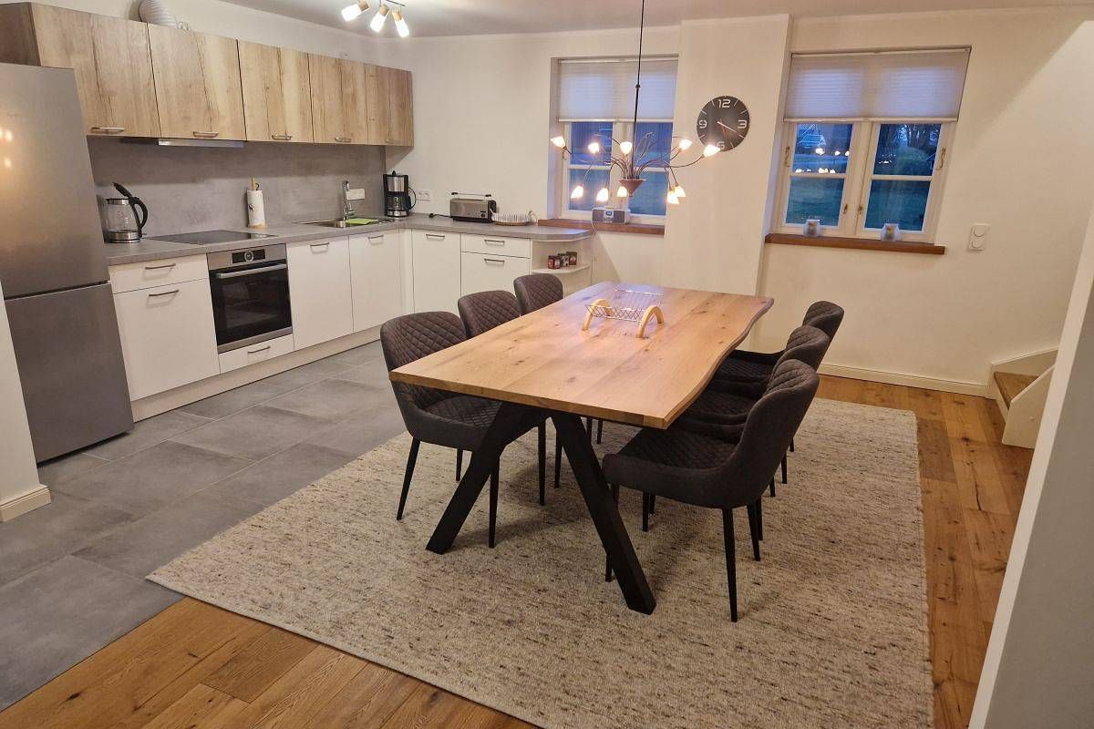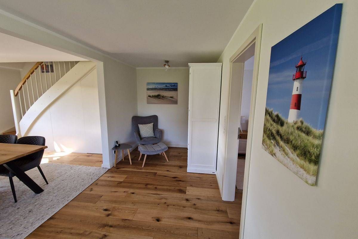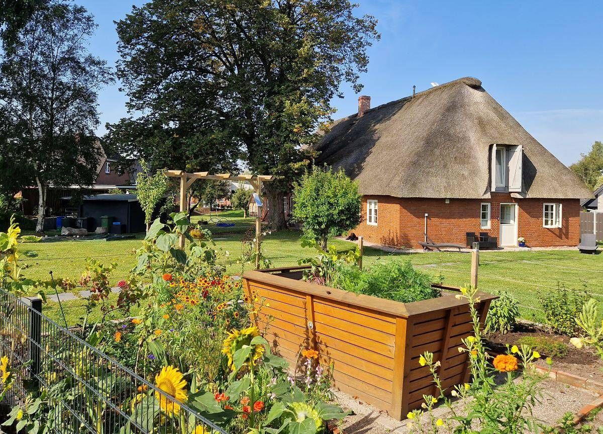 Informationen zum Gastgeber Die Ferienwohnung "Friesenwind" liegt in einem typisch friesischen Reetdachhaus im den gemütlichen Örtchen Rantrum. Das Haus auf einem 2.000 qm Grundstück besteht aus zwei Wohnparteien. Die Süd/West-Seite mit Eingang auf der Nord-Seite wird von uns bewohnt und die Süd/Ost-Seite mit Eingang auf der Ost-Seite stellt die FeWo dar). Die Husumer Innenstadt mit Markplatz, Hafen, vielfältigen Einkaufsmöglichkeiten und Bahnhof erreichen Sie in ca. 15 Autominuten. Die Nordsee und den Badestrand an der Dockkoogspitze erreichen Sie nach ca. 10 km. Die nächste Einkaufsmöglichkeit, ein Bäcker sowie ein Freibad sind direkt im Ort vorhanden und fußläufig erreichbar. Für die kleinen Gäste gibt es verschiedene Spielgeräte und eine Sandkiste. Für Familien mit kleinen Kindern werden ein Kinderhochstuhl und ein Kinderreisebett gestellt. Weitere Angaben: PKW-Stellplatz, Fahrradabstellplatz, Nichtraucher, Keine Haustiere. Anreisebeschreibung Die Ferienwohnung "Friesenwind" erreichen Sie mit dem regionalen Busverkehr - Linien R149, 1063, 1062 und 1068 ab dem zentralen Busbahnhof (ZOB). Die nächste Bushaltestelle "Rantrum Gasthof" ist ca. 400 m von der Ferienwohnung entfernt. Beschreibung. Die gemütlich und modern eingerichtete Ferienwohnung "Friesenwind" ist ca. 90 m2 groß, erstreckt sich über 2 Etagen (EG und 1. OG) und bietet Platz für 3 Personen. Im Erdgeschoß der Ferienwohnung befindet sich der offene Küchen- und Essbereich, ein Schlafzimmer sowie das Badezimmer. Im Obergeschoß ist der Wohnbereich der auch als zweiter Schlafraum dient und ein zusätzliches Gäste-WC. Der offene Küchen- und Essbereich ist mit einem Herd mit Induktionsfeld und Backofen, Kühlschrank, Gefrierschrank, Geschirrspülmaschine, Wasserkocher, Toaster und Kaffeemaschine sowie einem großen Esstisch eingerichtet. Das Schlafzimmer ist mit einem Doppelbett (1,80 m x 2,00 m - ohne Fußende) und einem Kleiderschrank eingerichtet. Über eine Treppe gelangen Sie ins Obergeschoß mit dem Wohnbereich. Der Wohnbereich ist mit einem großen Ecksofa (umwandelbar zur Schlafcouch ca. 1,50 m x 2,00 m) und einem TV-Gerät (inkl. Magenta-TV) eingerichtet. In einer Nische befindet sich ein Einzelbett (0,90 m x 2,00 m - ohne Fußende). Das Badezimmer im Erdgeschoß ist mit einer bodentiefen Dusche, WC, Handtuchwärmer und Waschmaschine ausgestattet. Alle Räume der Ferienwohnung verfügen über eine Fußbodenheizung. Im zur Ferienwohnung gehörenden Gartenanteil (ca. 350 qm), welcher nicht separat baulich abgegrenzt ist, haben Sie eine Terrasse mit Sitzgelegenheiten und zwei Gartenliegen zum Erholen und Entspannen. Der Gartenanteil gehört mit zur Gesamtfläche des Hauses. Für Familien mit kleinen Kindern werden ein Kinderhochstuhl oder Kinderreisebett für 10 EUR pro Aufenthalt gerne gestellt. Weitere Angaben: Bettwäsche, Handtücher, Endreinigung und W-LAN sind im Preis inklusive. Sollten Sie Ihren Vierbeiner mitnehmen wollen, dann lassen Sie uns dazu sprechen, dies wäre gegen eine Gebühr von 10 EUR pro Nacht nach Absprache möglich. Wir möchten in diesem Zusammenhang darauf hinweisen, dass wir selbst einen sehr lieben und familienfreundlichen 10jährigen Labrador haben.