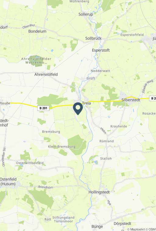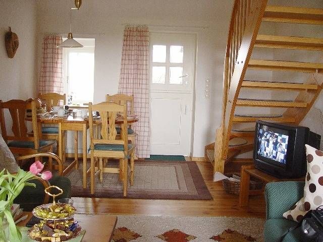 Informationen zum Gastgeber Die Ferienwohnung ist ruhig gelegen in einem Reetdachhaus in Treia. Die Entfernungen zur Nordsee, zum Kino und zum Bahnhof in Husum betragen ca. 22 km, zum Badestrand ca. 25 km und zur nächsten Einkaufsmöglichkeit ca. 2,5km. Weitere Angaben: Fahrradabstellplatz, Liegewiese, Garten, PKW-Stellplatz, Reitplatz, Waschmaschine kostenfrei, W-LAN kostenfrei. Haustiere auf Anfrage. Nach Absprache können Sie auch Pferde mitbringen, die auf der Weide untergebracht werden können. Bettwäsche, Handtücher und Endreinigung im Preis inklusive. Beschreibung. Die ca. 52 m2 große Ferienwohnung befindet sich im Erdgeschoss und in der 1.Etage und bietet Platz für 2 Personen. Vom Eingang gelangen Sie direkt in das Wohnzimmer mit Couchgarnitur, Fernseher, Radio mit CD-Player und Essplatz. Die Küche ist komplett eingerichtet mit einem 4-Platten-Herd, Backofen und Kühlschrank mit Gefrierfach. Das Badezimmer ist mit einer Badewanne mit Duschvorrichtung und einer Waschmaschine ausgestattet. Das WC ist seperat. Über eine Treppe gelangen Sie in den offenen Schlafraum mit einem Doppelbett (1,60 m x 2,00 m) und einem Kleiderschrank. Vom Wohnzimmer haben sie Zugang zu der Terrasse mit Gartenmöbeln. Die Wohnung ist teilweise mit einem Holzfußboden ausgestattet. Bettwäsche, Handtücher und Endreinigung im Preis inklusive.