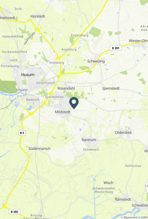 Informationen zum Gastgeber Der Ferienhof Schwarten mit großem Garten ist ruhig gelegen in Mildstedt. Auf dem Hof wird Mutterkuhhaltung und Ackerbau betrieben. Weiterhin leben auf dem Hof Kühe, Pferde und Ponys. Den Kindern stehen auf dem Hof verschiedene Spielmöglichkeiten zur Verfügung. Die Entfernung zur Husumer Innenstadt mit Marktplatz, Hafen, Bahnhof und vielfältigen Einkaufsmöglichkeiten beträgt ca. 6 km. Die nächste Einkaufsmöglichkeit ist vom Ferienhof ca. 1 km entfernt. Die Nordsee und nächste Badestelle erreichen Sie nach ca. 9 km. Die Fahrzeit zur Husumer Messe & Congress beträgt ca. 15 Fahrminuten. Weitere Angaben: PKW-Stellplatz, Fahrradabstellplatz, Nichtraucher, W-LAN, Haustiere gegen eine Gebühr von zzgl. 7,00 EUR pro Nacht/ Tier erlaubt., Waschmaschine und Wäschetrockner zur Mitnutzung nach Absprache. Beschreibung. Die zweckmäßig eingerichtete Ferienwohnung ist ca. 55 m2 groß,liegt im Obergeschoß des Ferienhofes und bietet Platz für 4 Personen. Die Ferienwohnung ist aufgeteilt in einen Flur mit Gardrobe, einen kombinierten Wohn-/Schlafraum, einen Schlafraum, eine Küche und ein Badezimmer. Der kombinierte Wohn-/Schlafraum ist mit einem Doppelbett (1,80 m x 2,00 m), Kommode, eine Couchgarnitur, TV-Gerät und DVD-Player eingerichtet. Von diesem Raum haben Sie Zugang zum Balkon mit Terrassenmöbeln. Der Schlafraum ist mit 2 Einzelbetten (0,90 m x 2,00 m), Kleiderschrank und einem Essplatz ausgestattet. Die separete Küche verfügt über einen Ceranherd und Backofen, Geschirrspüler, Kühlschrank, Wasserkocher, Toaster, Kaffeemaschine und Essplatz. Das Badezimmer ist mit Dusche und WC ausgestattet. Die Räume der Ferienwohnung haben Nachtspeicheröfen. Weitere Angaben: Bettwäsche, Handtücher und Endreinigung im Preis inklusive. W-LAN, Nichtraucherwohnung, Haustiere gegen eine Gebühr von zzgl. 7,00 EUR pro Nacht/ Tier erlaubt, Babyhochstuhl.
