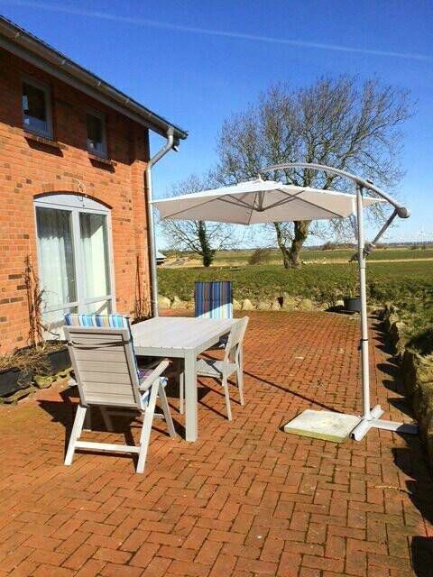 Informationen zum Gastgeber Die Ferienwarft Großellerbüll ist idyllisch gelegen in der Hattstedtermarsch im Beltringharder Koog. Die Husumer Innenstadt mit Hafen, Marktplatz, vielfältigen Einkaufsmöglichkeiten und Bahnhof erreichen sie nach ca. 11 km. Die Messe Husum & Congress ist ca. 20 Fahrminuten entfernt. Die nächste Einkaufsmöglichkeit befindet sich ca. 4,5 km entfernt im kleinen Ort Hattstedt. Die nächste Badestelle ist Lüttmoorsiel/Nordsee erreichen Sie nach ca. 8 km. Auf der Ferienwarft lebt ein Hund, eine Katze und Skudden (alte Schafrasse). Weitere Angaben: PKW-Stellplatz, Nichtraucher, bis zu 2 Hund erlaubt - der 1. Hund ist kostenfrei - für den 2. Hund wird eine Gebühr von 5,00 EUR pro Tag berechnet. W-LAN. DTV-Klassifizierung nicht teilgenommen. Beschreibung. Die gemütliche und moderne Ferienwohnung ist ca. 76 m2 groß, liegt im Erdgeschoß einer ehemaligen Remise und bietet Platz für 4 Personen. Die Ferienwohnung ist aufgeteilt in einen Wohnraum, eine separate Küche, 2 Schlafräume und ein Badezimmer. Der Wohnraum ist mit einer Ledercouch, TV-Gerät (Flachbildschirm), DVD-Player, Stereo-Anlage und großem Esstisch eingerichtet. Die separate Küche ist mit einem Herd mit Cerankochfeld und Backofen, Kühlschrank mit Gefrierfach, Geschirrspülmaschine, Mikrowelle, Wasserkocher, Toaster und Kaffeemaschine ausgestattet. Ein kleiner Esstisch lädt zum Essen ein. Die zwei Schlafzimmer sind wie folgt ausgestattet und eingerichtet: Ein Schlafzimmer ist mit einem französischen Bett (1,40 m x 2,00 m - mit Fußende) und Kleiderschrank und ein Schlafzimmer mit einem französischen Bett (1,40 m x 2,00 m - ohne Fußende). Das Badezimmer ist mit einer ebenerdigen Dusche, WC und Waschmaschine ausgestattet. Des Weiteren gibt es ein zusätzliches Gäste WC. Alle Zimmer sind mit Fußbodenheizung ausgestattet. Vor dem Eingangsbereich steht Ihnen eine große abgeschlossene Sonnenterrasse mit Gartenmöbeln zur Verfügung. Weitere Angaben: Bettwäsche, Handtücher und Endreinigung sind im Preis inklusive. W-LAN, Nichtraucher, bis zu 2 Hund erlaubt - der 1. Hund ist kostenfrei - für den 2. Hund wird eine Gebühr von 5,00 EUR pro Tag berechnet.