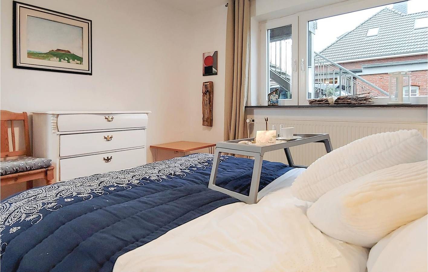 Diese liebevoll eingerichtete Ferienwohnung befindet sich in bester Lage in Dagebüll – direkt am malerischen Deich und nur etwa 50 Meter vom Meer entfernt. Genießen Sie Ruhe, Weitblick und Nordseefrische direkt vor der Tür. Die vielen Details der Wohnung zu Dagebüll und der Geschichte des Hauses machen den Aufenthalt zu einem ganz besonderen Erlebnis. Die moderne, helle Einrichtung im skandinavischen Stil ist immer wieder gespickt mit alten Erbstücken und Fotos aus alten Zeiten. Im Sommer können Sie im Garten entspannen und bei frischer Nordseeluft einen Kaffee trinken. Im Winter sorgt der urige Kaminofen für wohlige Wärme. Hier können Sie sich das ganze Jahr über wohlfühlen. Das Sofa im Wohnzimmer lässt sich auch als bequemer Schlafplatz nutzen. Die vielen Deiche rund herum bieten ein perfektes Revier für Radler - einen Fahrradverleih finden Sie praktischerweise direkt im Ort. Im Ortszentrum von Dagebüll, finden Sie kleine Läden, Restaurants und einen Kaufmann. Am Hafen legen die Fähren auf die Nordseeinseln Amrum und Föhr ab - perfekt für einen Tagesausflug! Vom nahen Hafen in Schlüttsiel aus (ca. 8km) erreicht man auch die kleinen Halligen Hooge und Langeneß schnell und entspannt per Schiff. Auch für eine Tagestour nach Sylt liegt Dagebüll ideal, denn vom benachbarten Niebüll aus (ca. 12 km) können Sie in nur einer halben Stunde ganz bequem mit der Bahn direkt bis Westerland durchfahren. Die Stadt Niebüll bietet außerdem ein tolles Kultur- und Freizeitangebot für Jung und Alt mit diversen Museen, einem Hallenbad im Ganzjahresbetrieb sowie einer schönen Naturbadestelle. Auch Sport- und Einkaufsmöglichkeiten sind hier vorhanden.